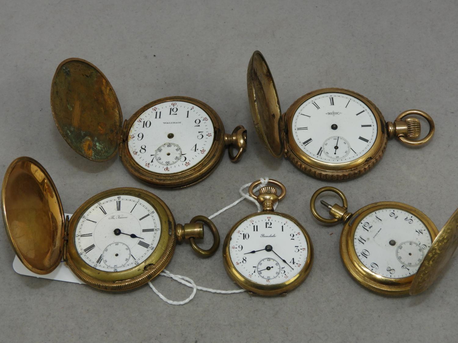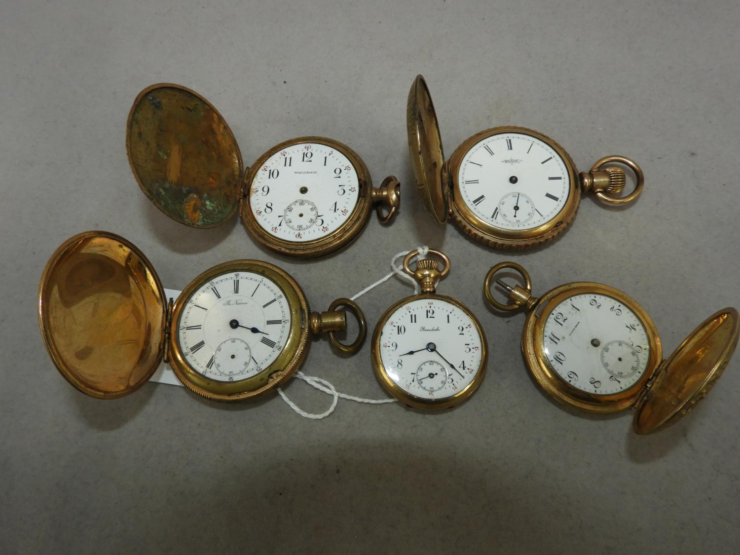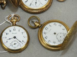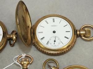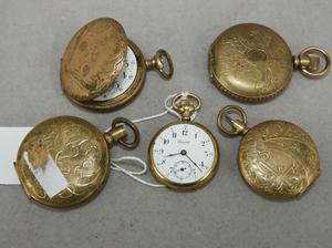 four gold filled hunter case pocket watches with a ladies gold filled watch