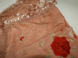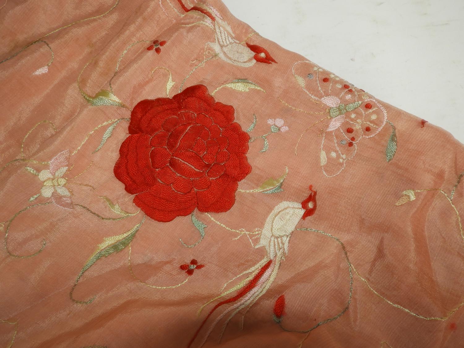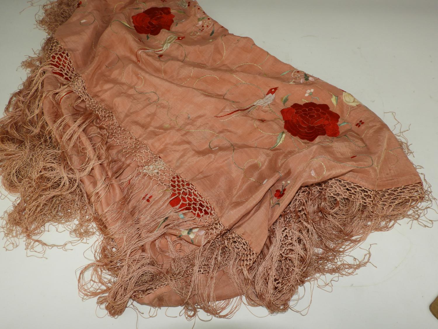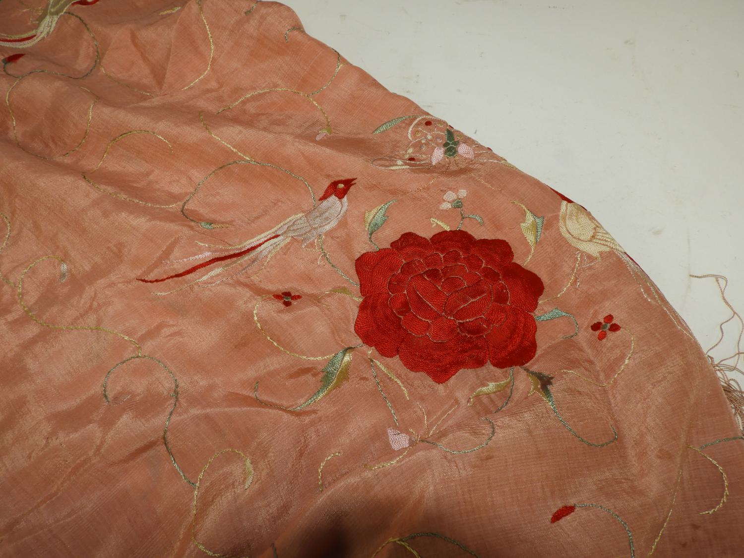 birds of paradise silk embroidered shawl, 37" x 37" with 15" fringe