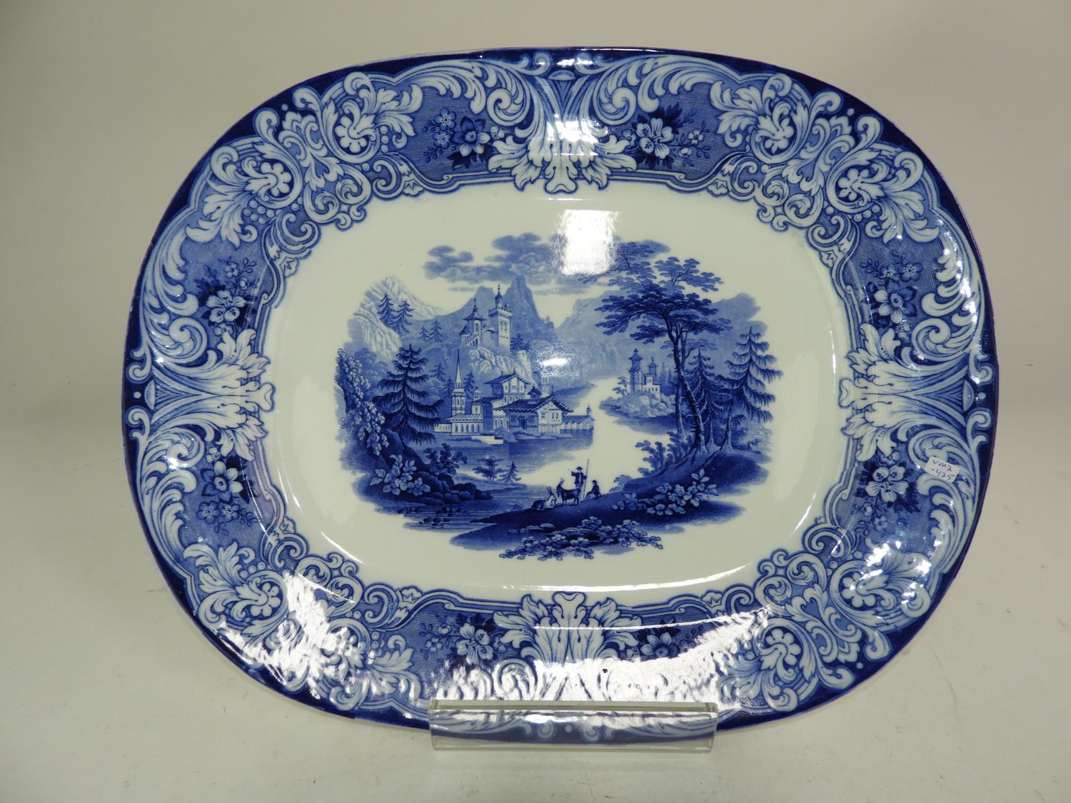 royal doulton "geneva" pattern blue and white platter, 19 1/4" x 15 1/4"