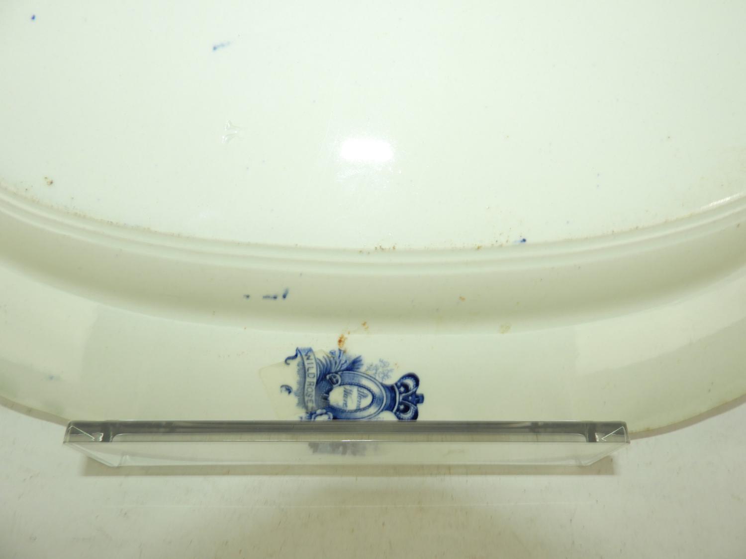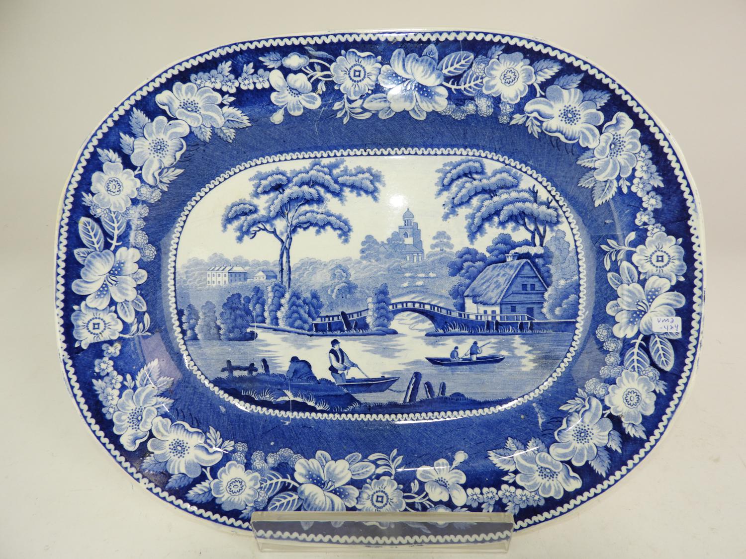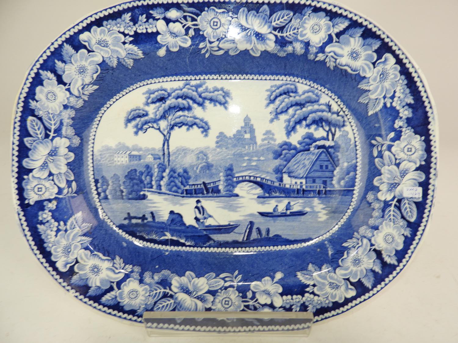 19th century blue and white ironstone "wild roses" pattern platter, 12 1/2" x 15 1/2"