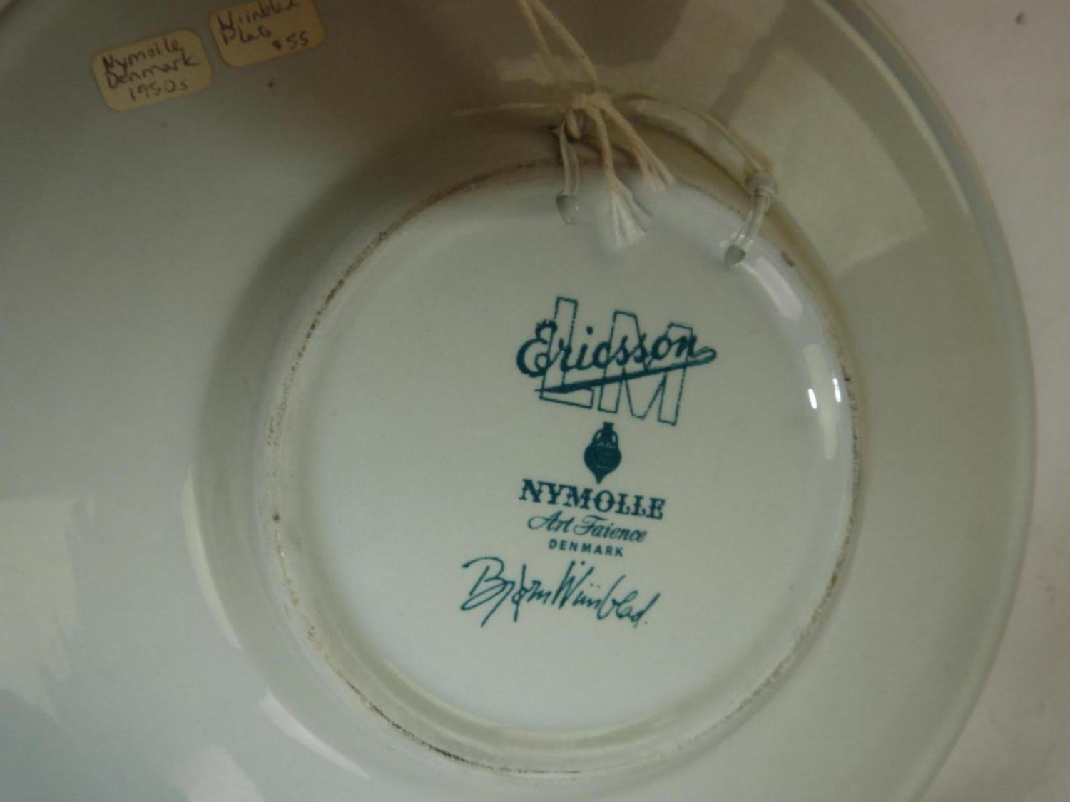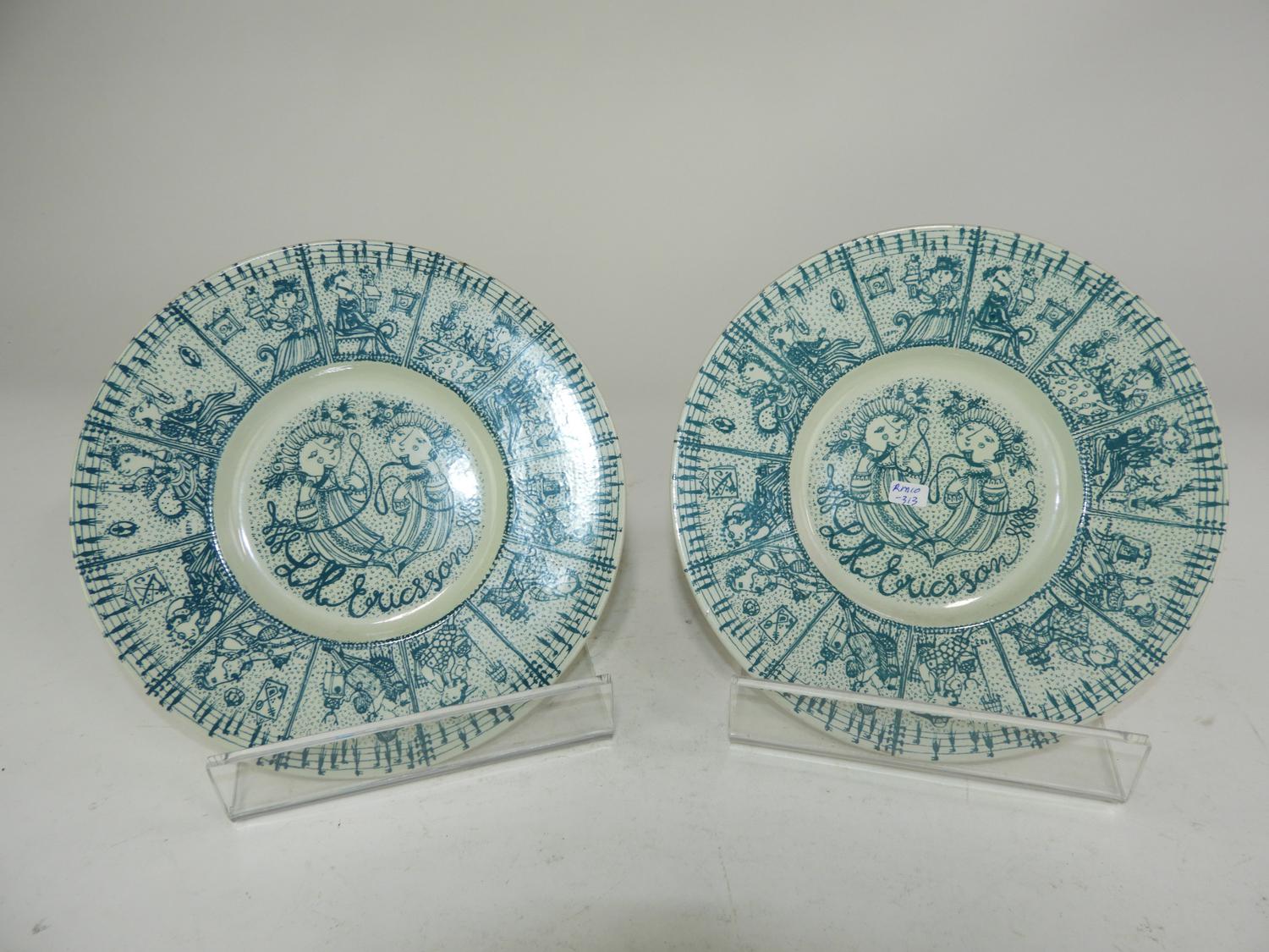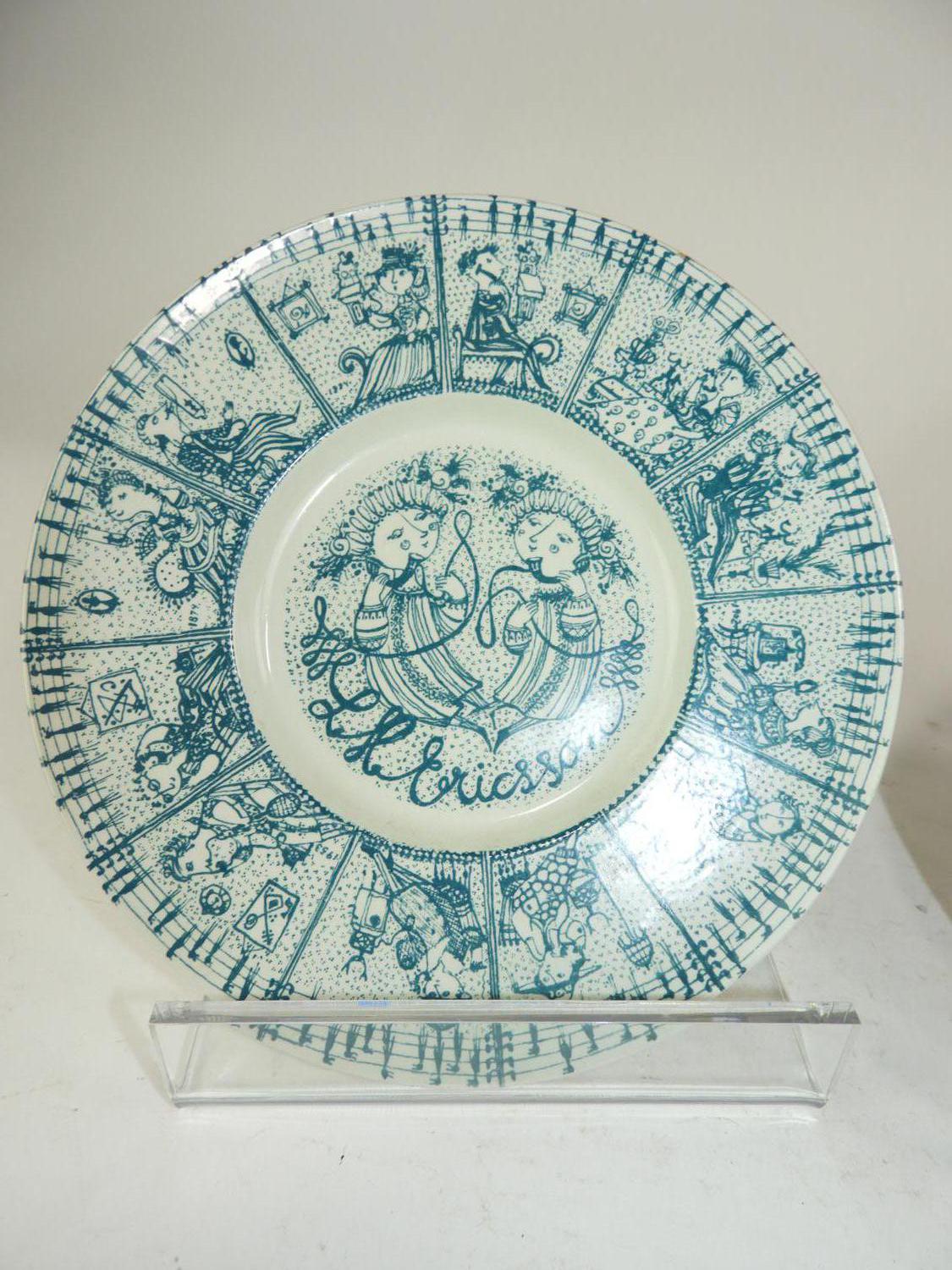 two bjorn wiinblad turquoise and white plates, dia. 8 1/2"