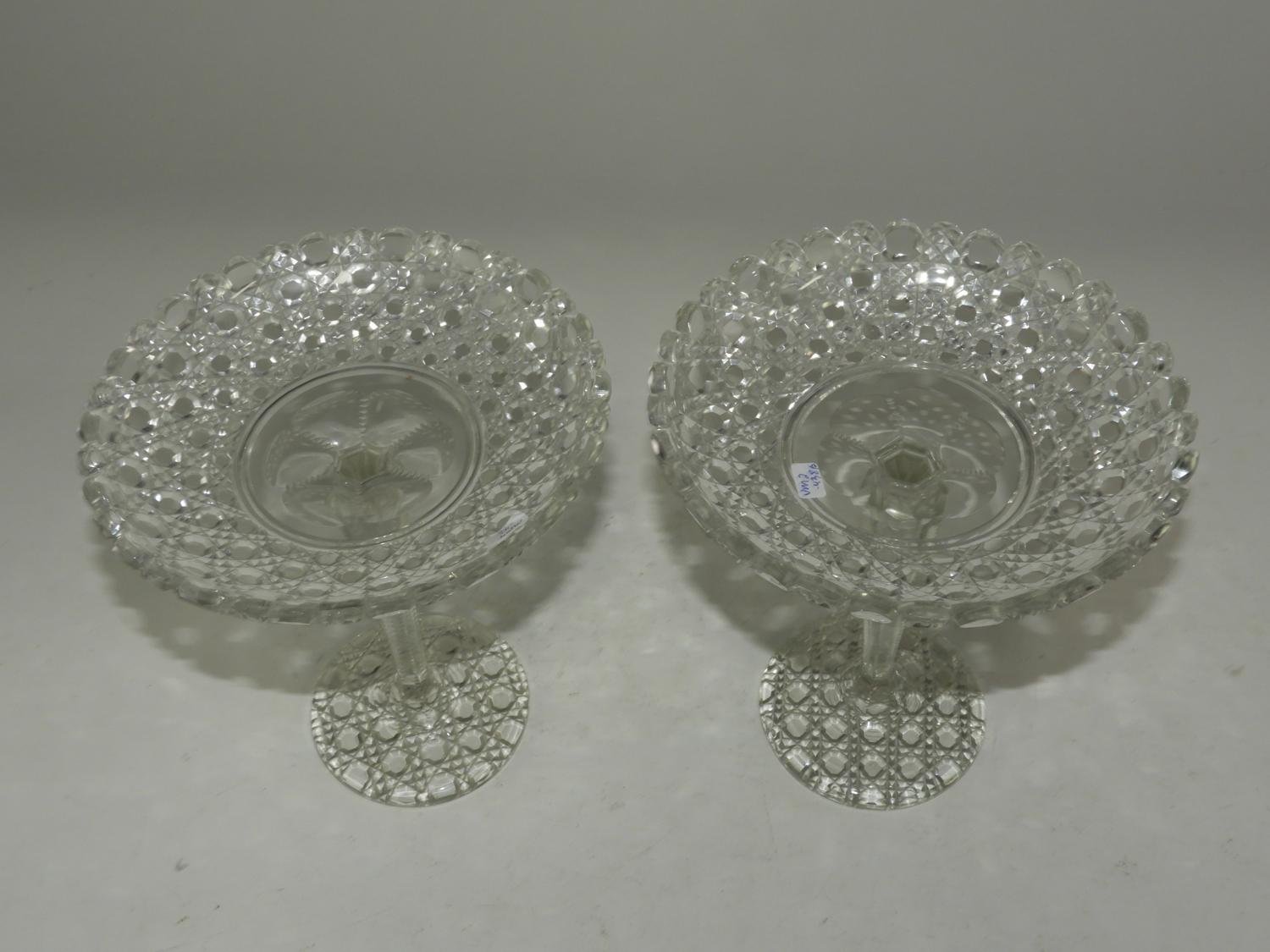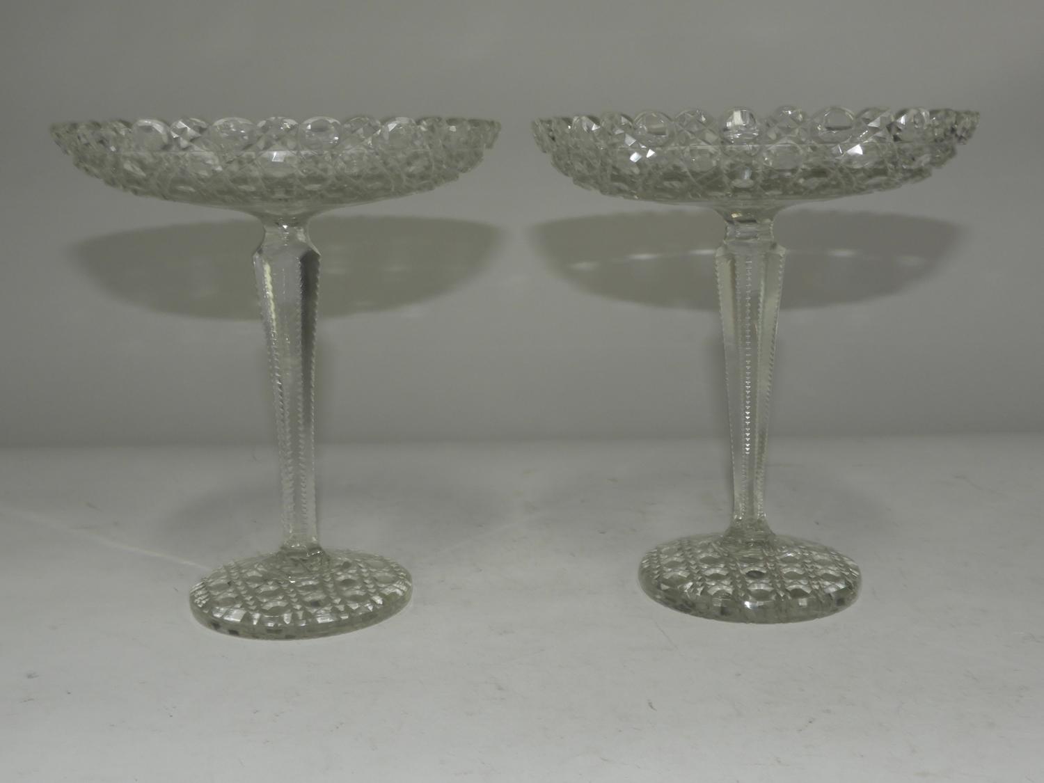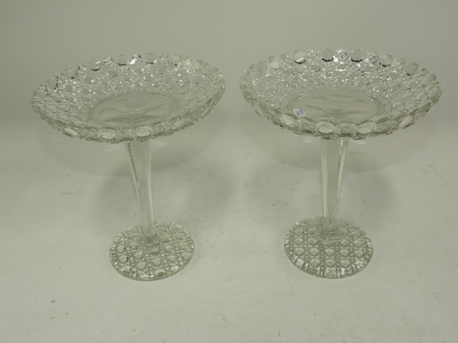 pair of cut crystal tazza, early 20th century, 8" x 7"