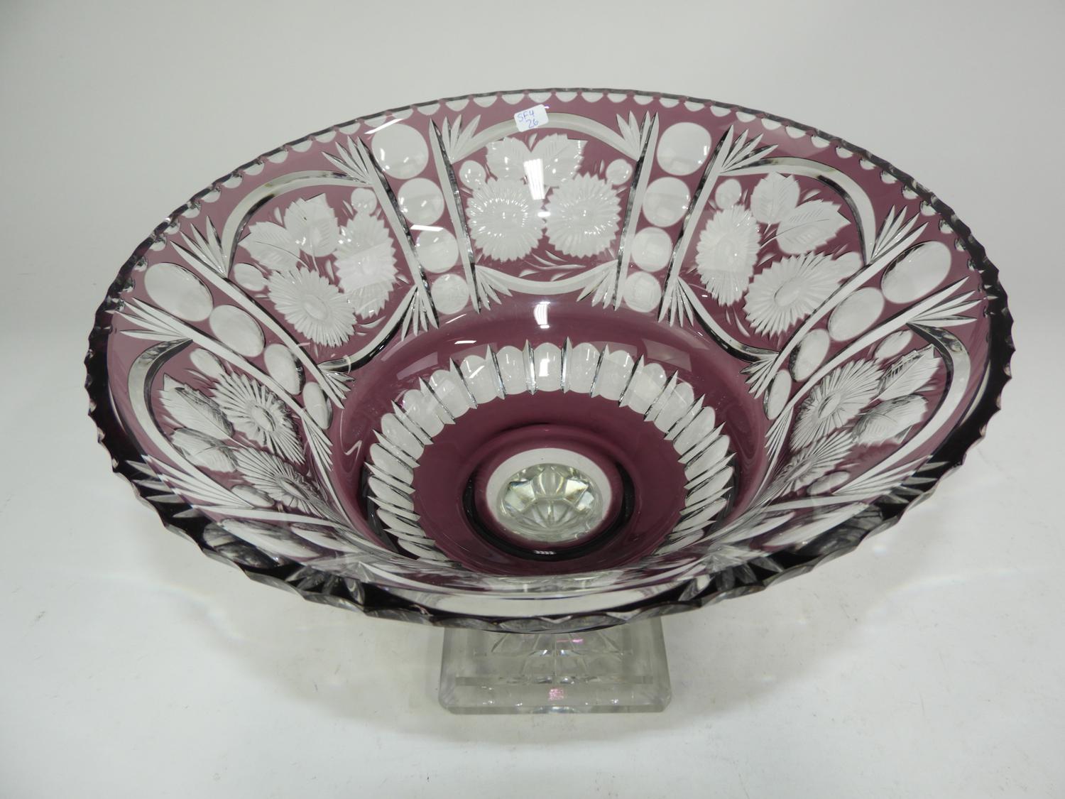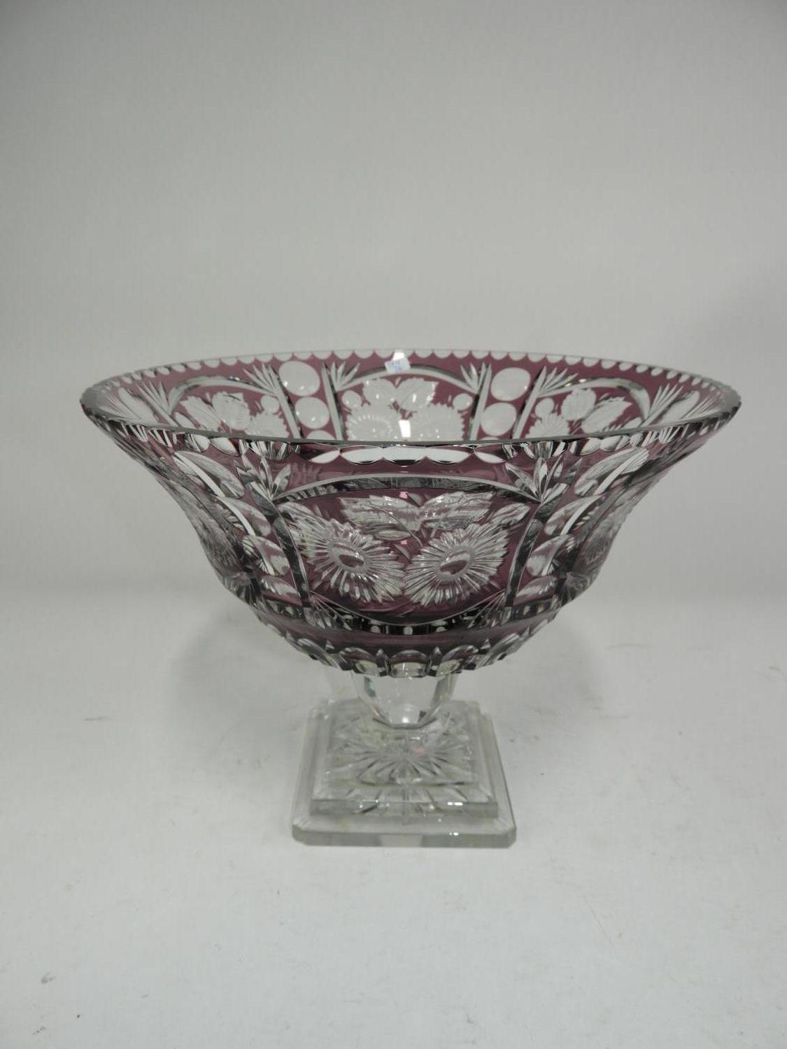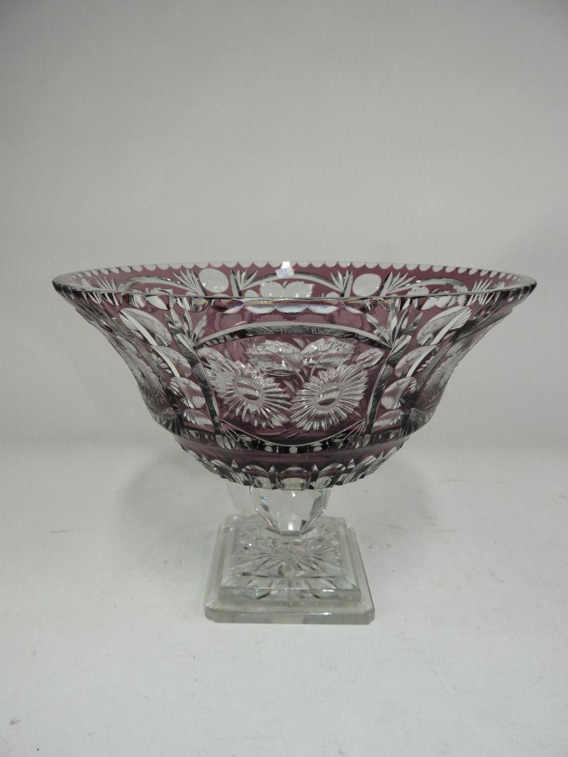 colored cut crystal bowl on pedestal, ht 9 1/4" diam 12"