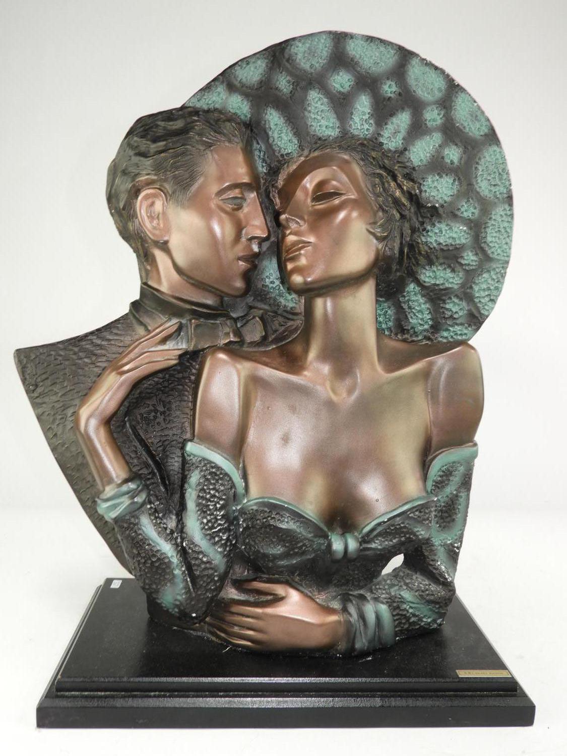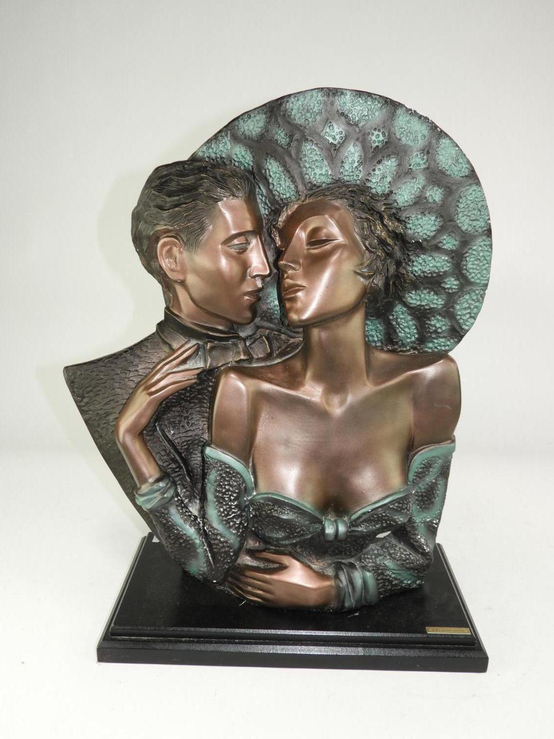 art deco style figural group bust labelled t. kaaran gal 1993, ht. 24"