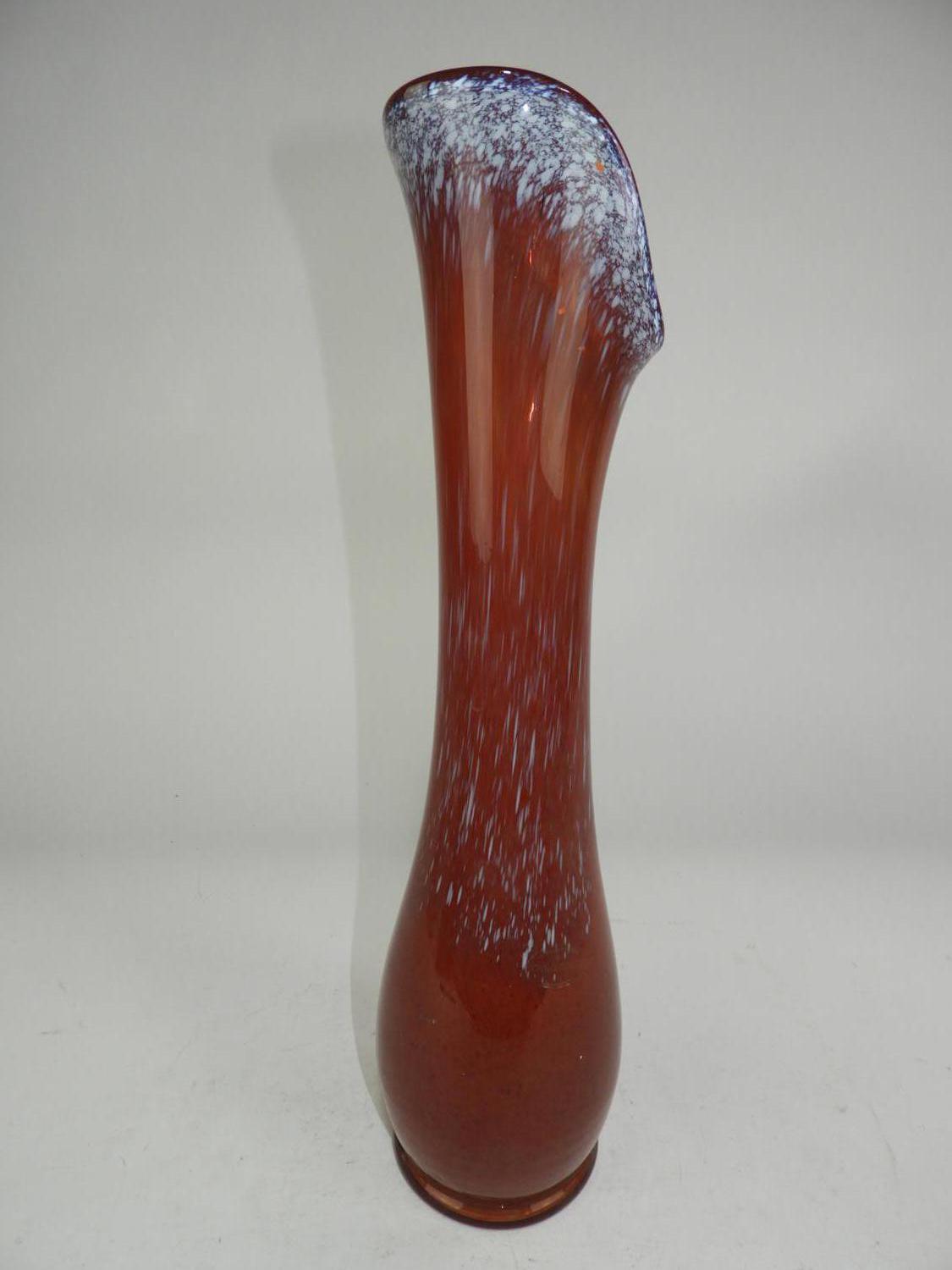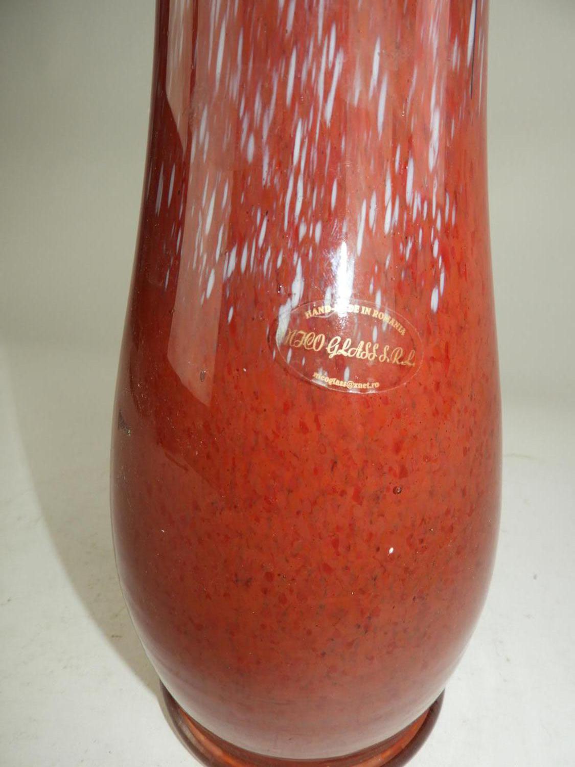 red art glass vase, 21 1/2"