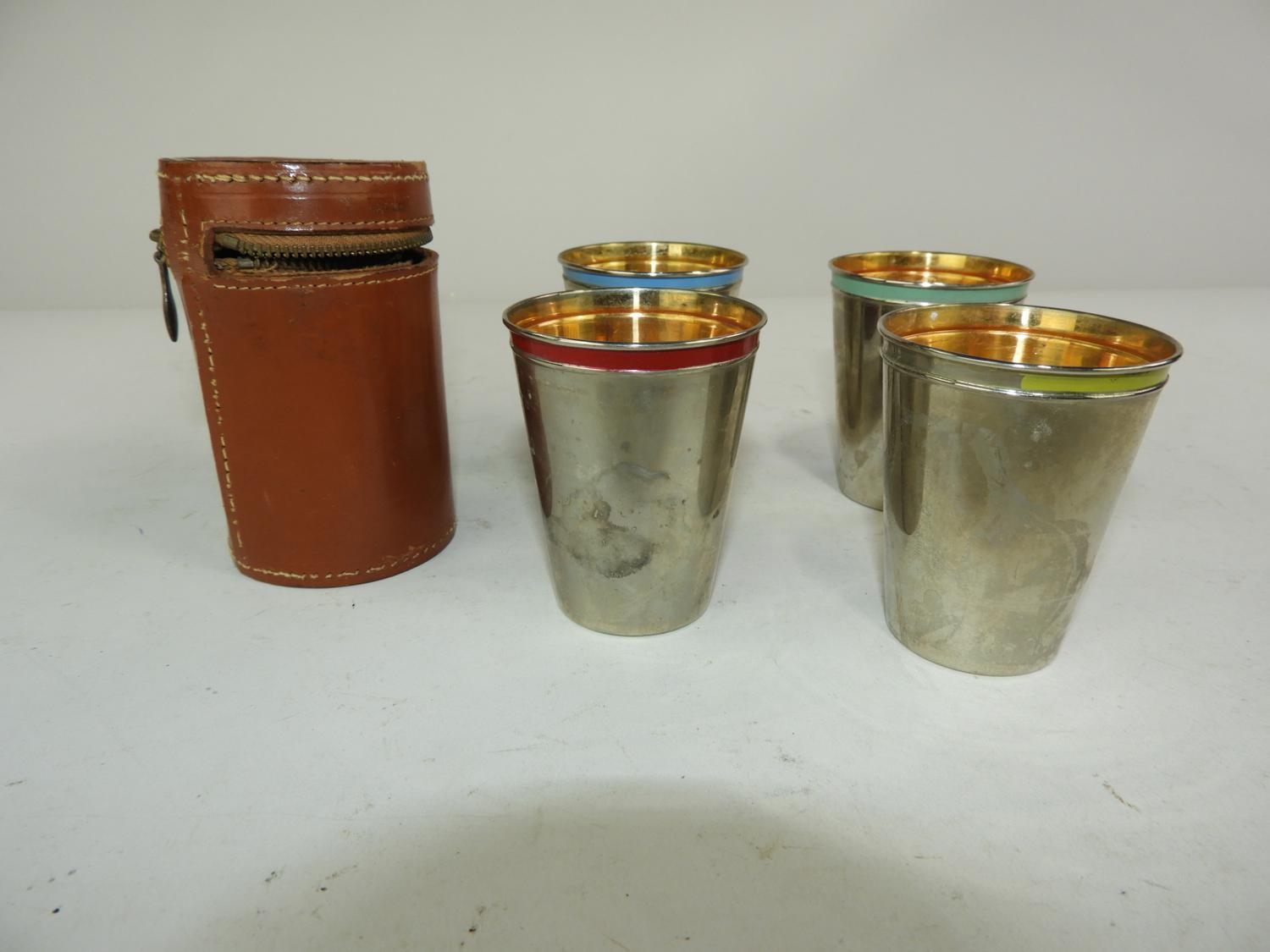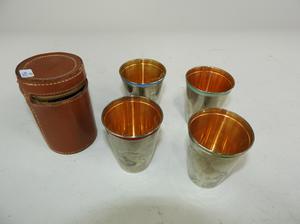 german leather cased set of drinking cups