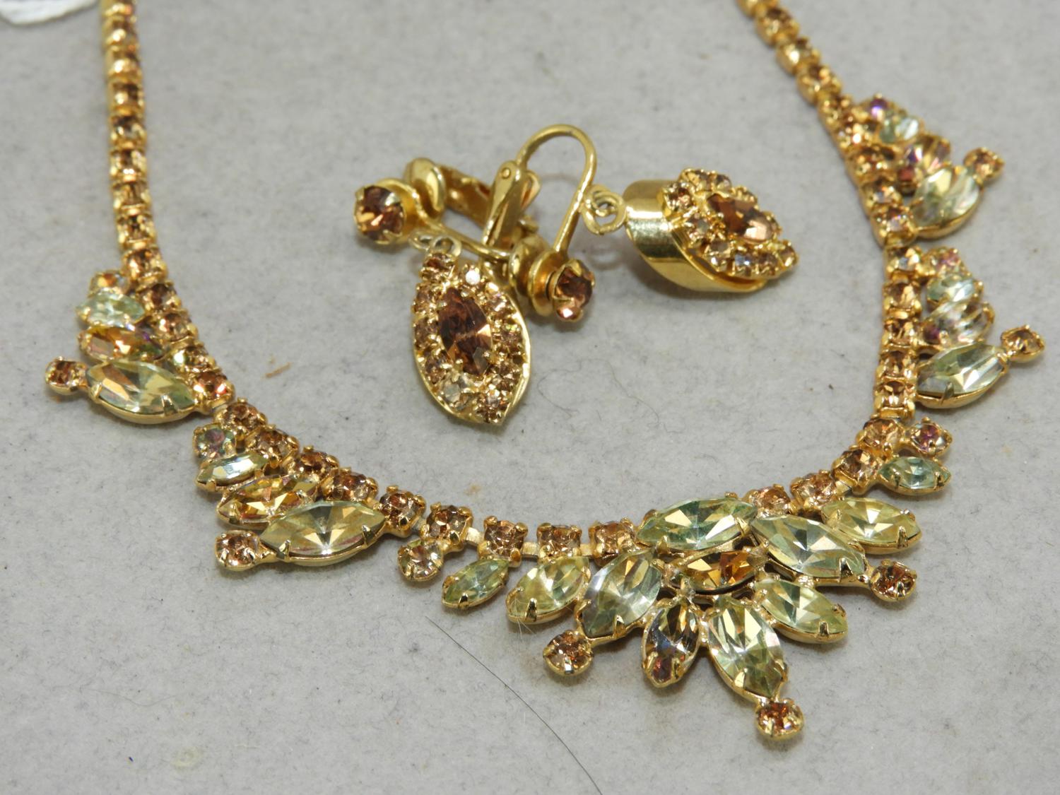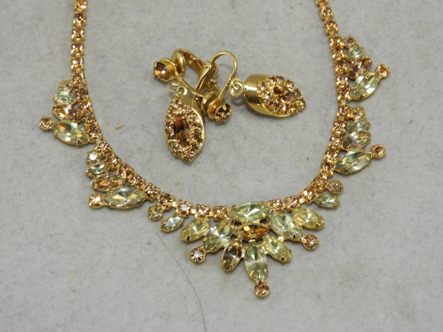 vintage rhinestone necklace and earrings