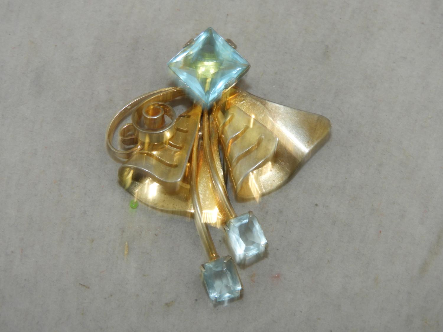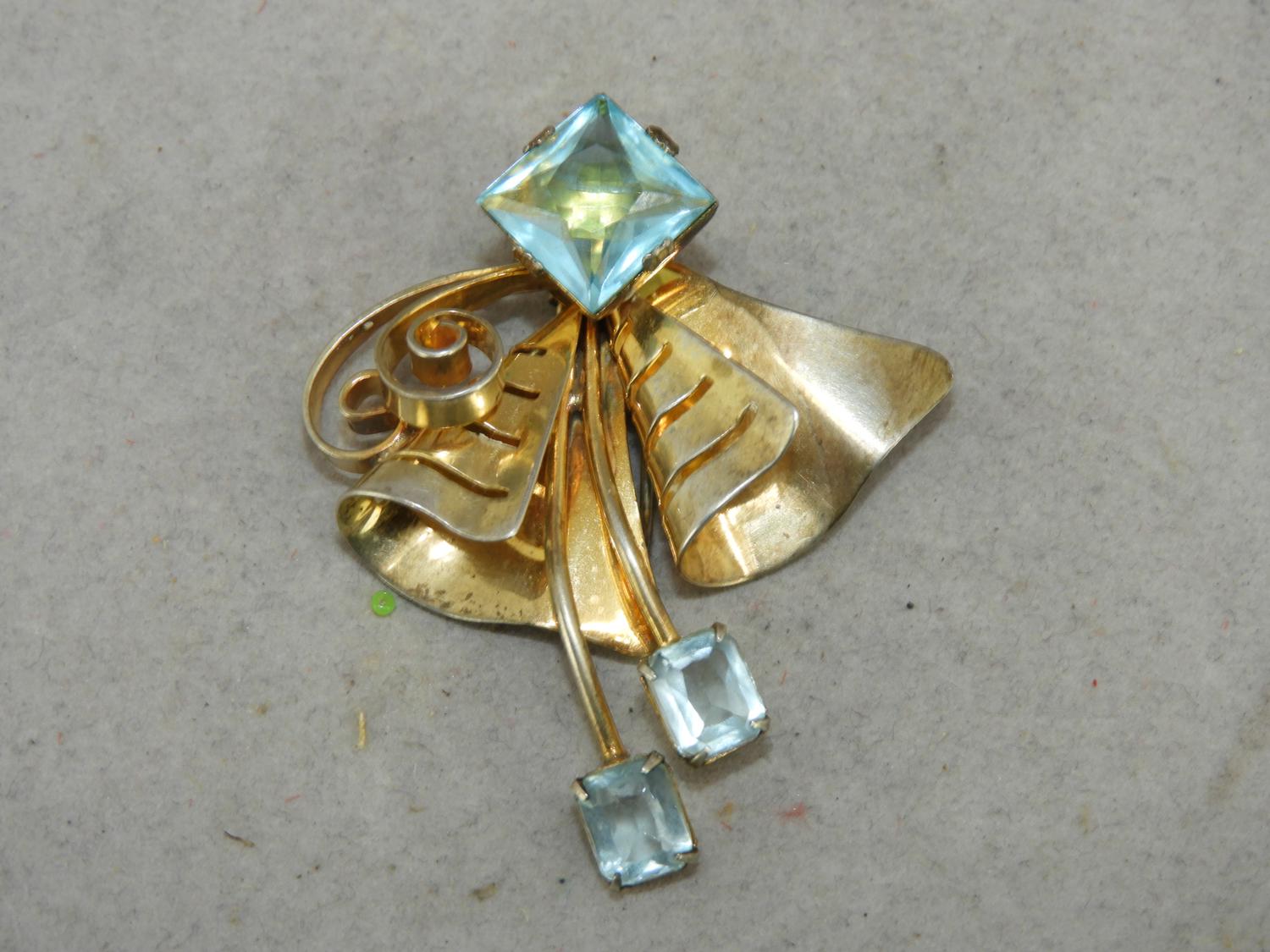 1940s silver vermeil clip brooch, 2 1/4"