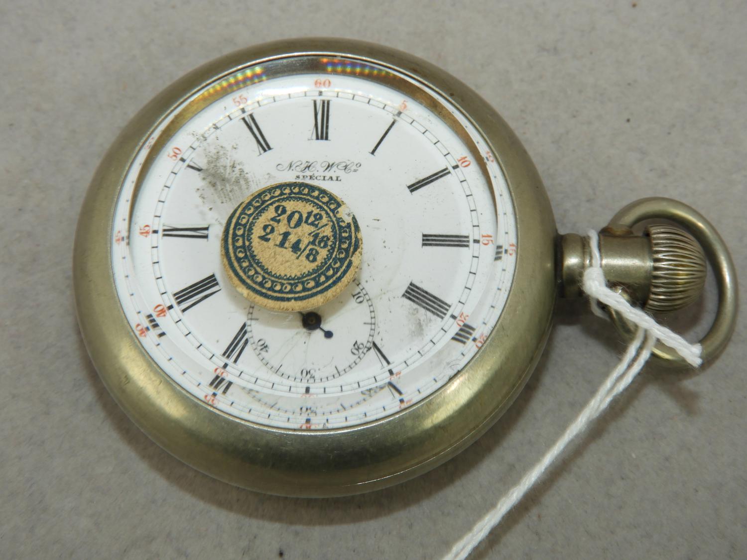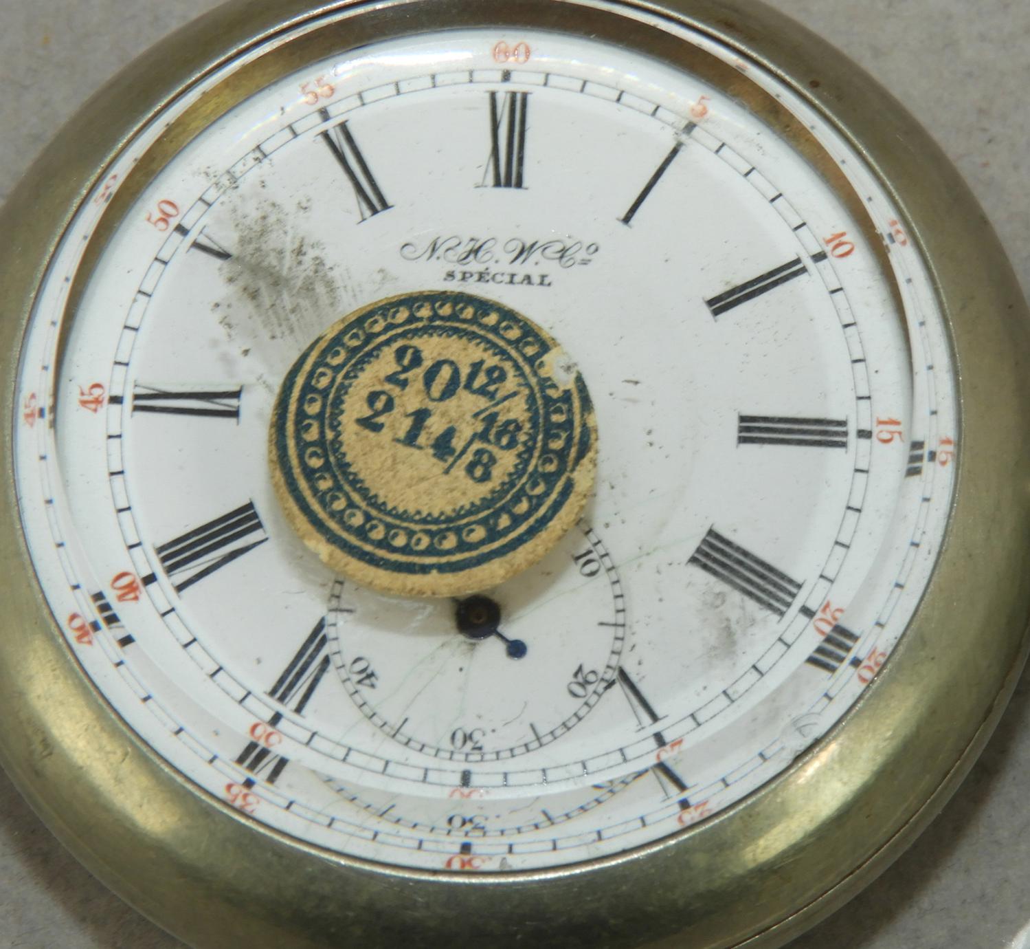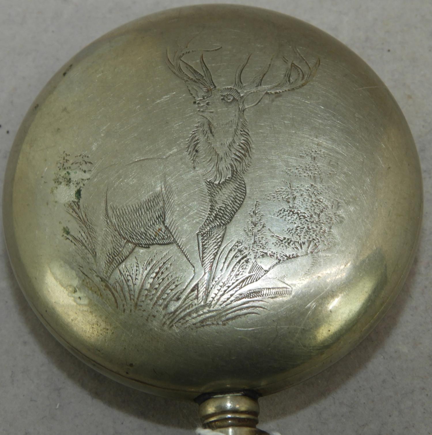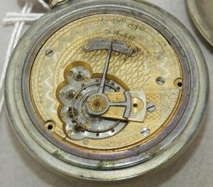 new hampshire watch co. hunting motif open face pocket watch, mvmt # 1742693