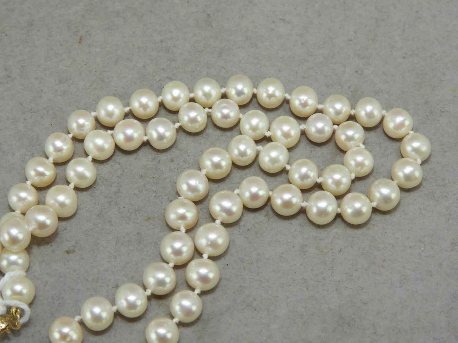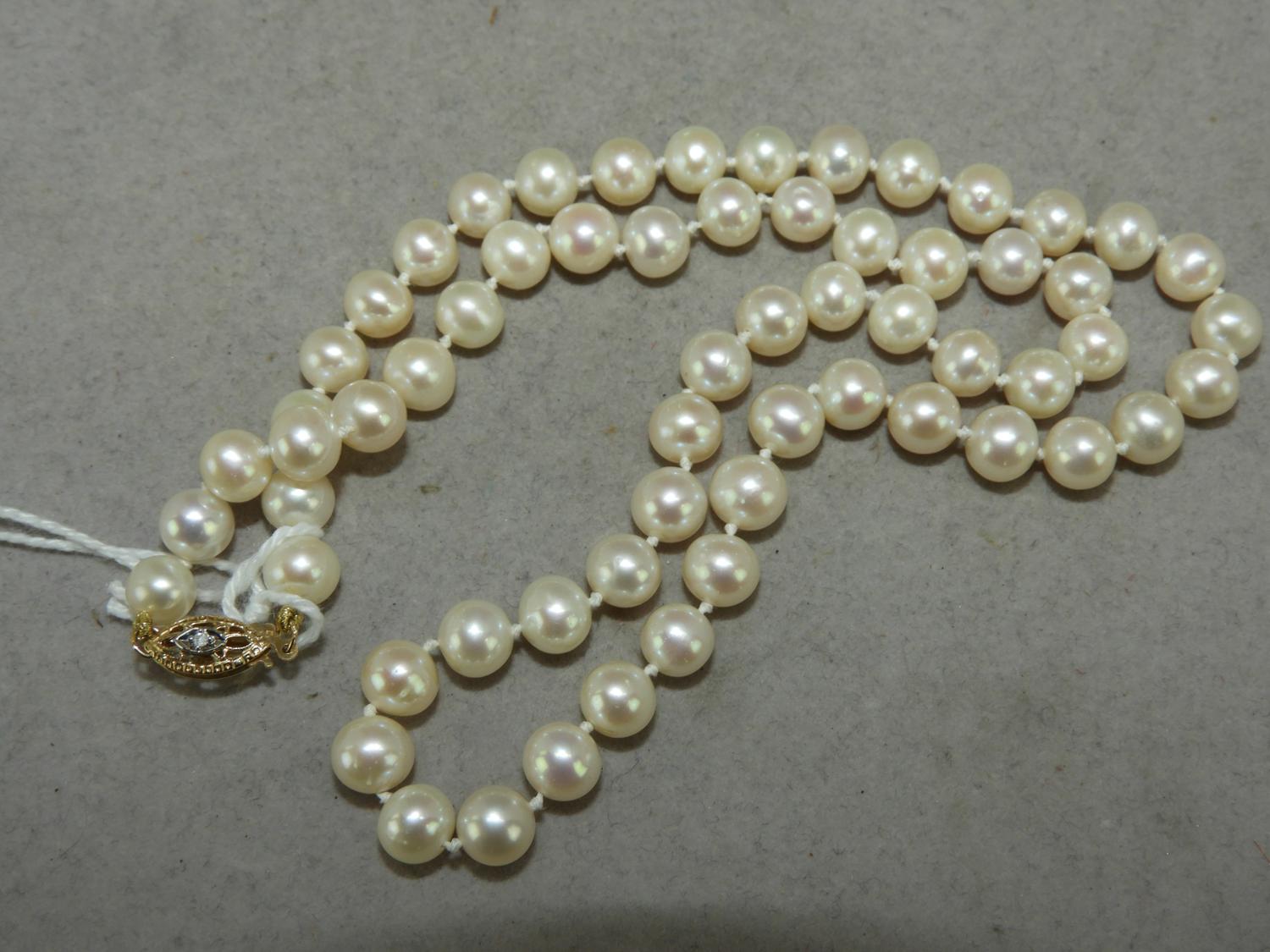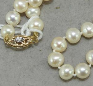 14k pink gold diamond clasp pearl necklace, 18", (6.5mm-6.8mm)