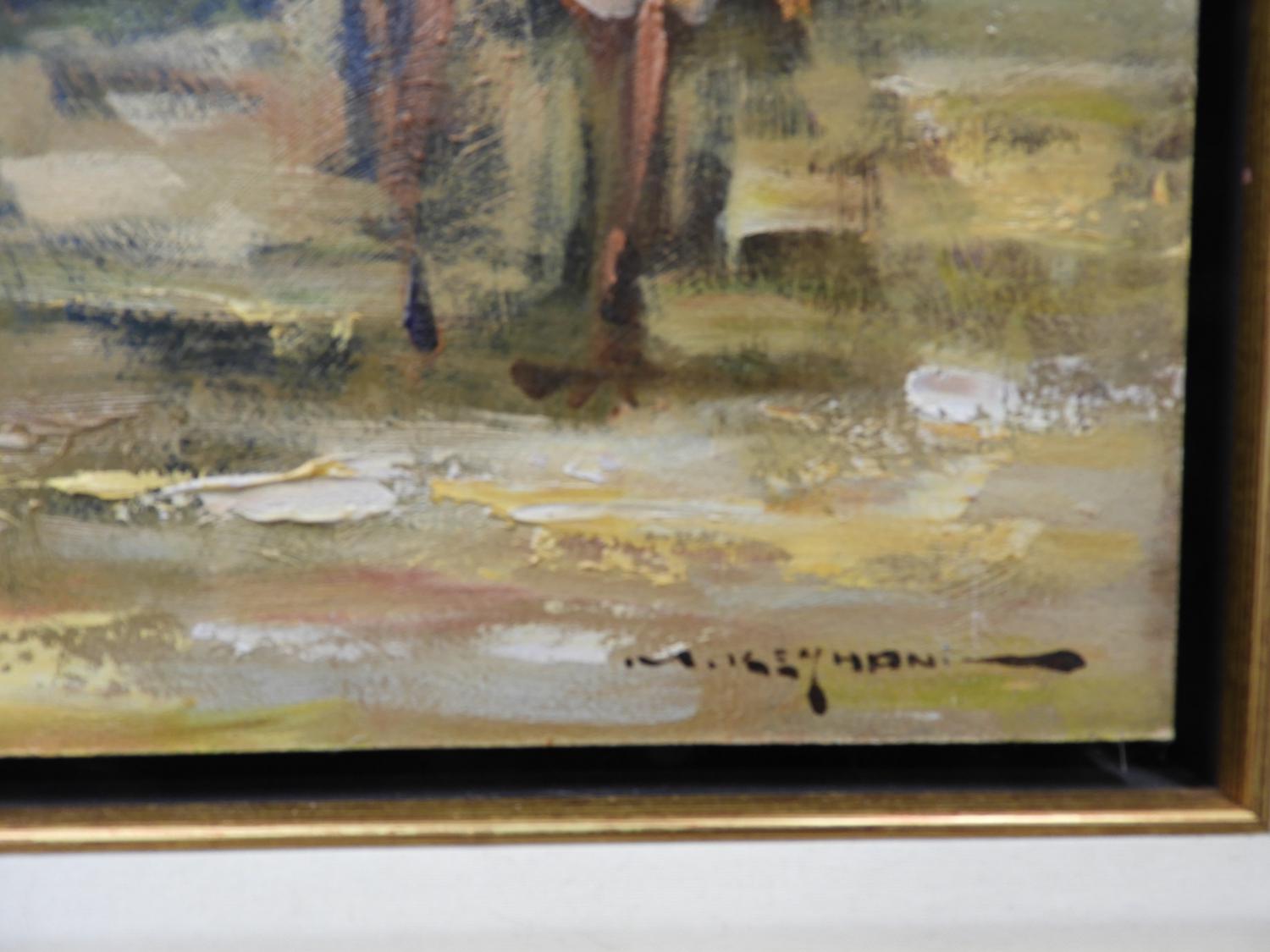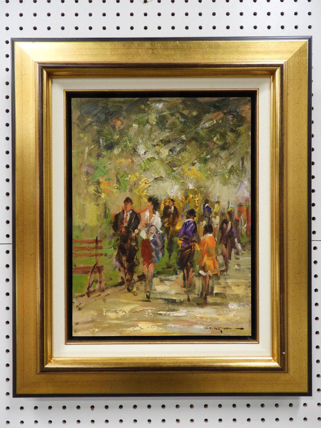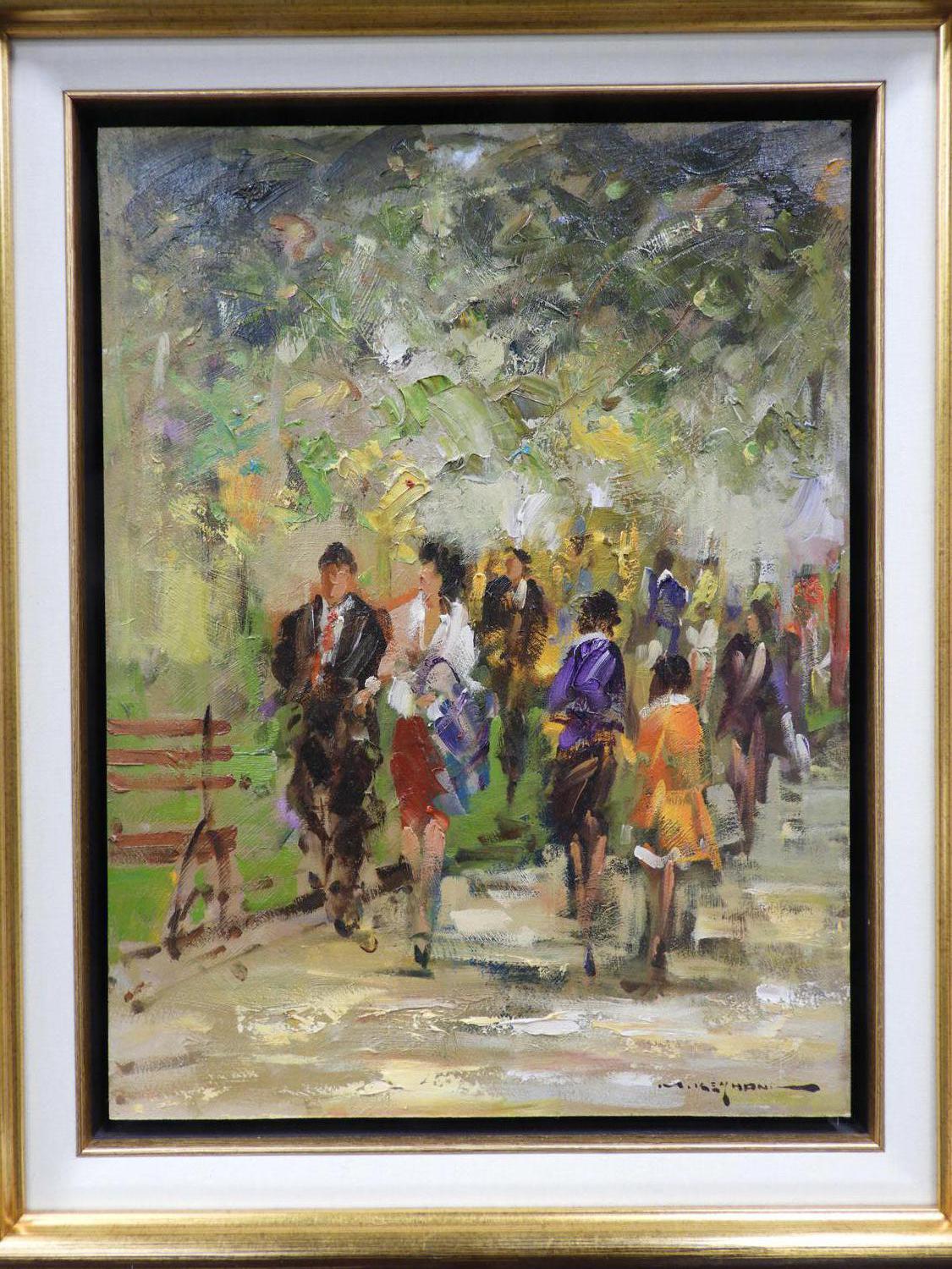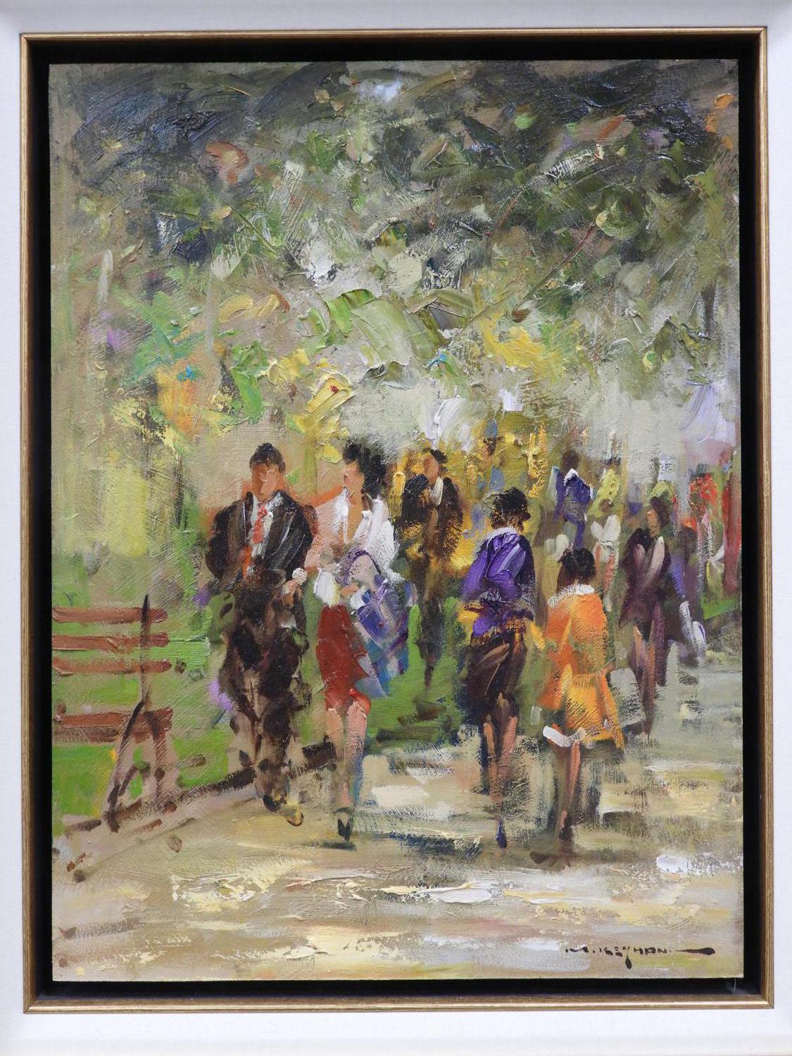 mostafa keyhani (b.1954), oil on board, 14" x 10", "park scene"