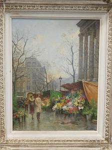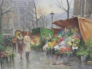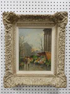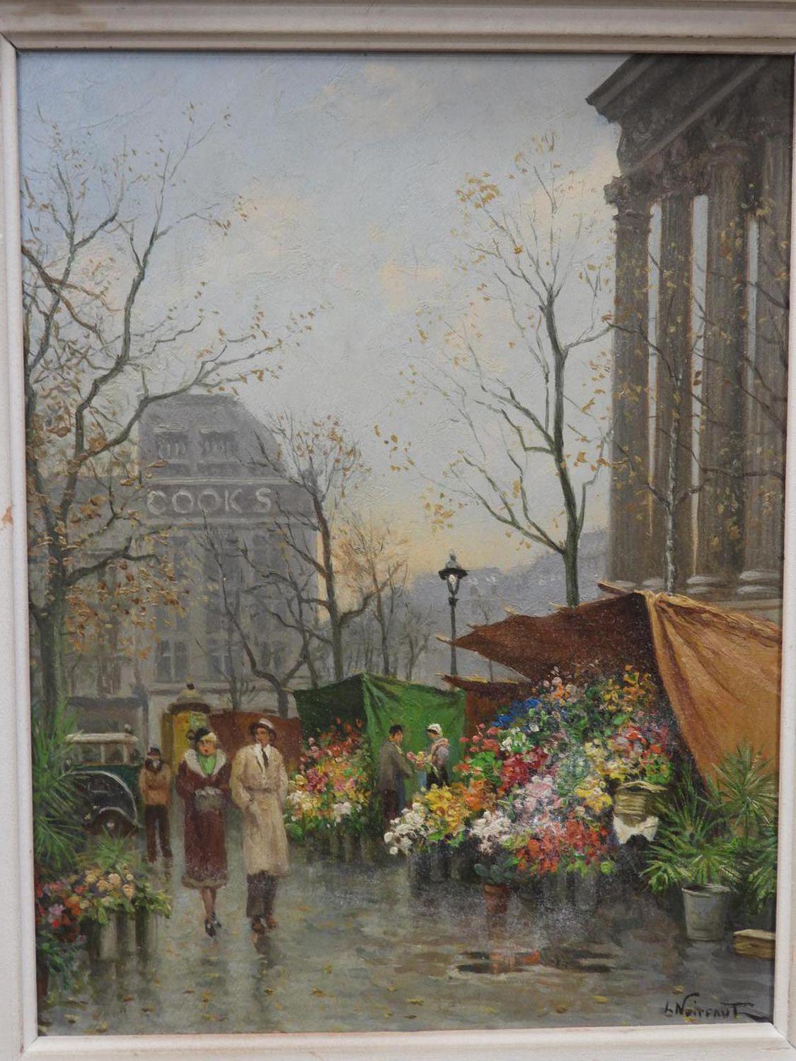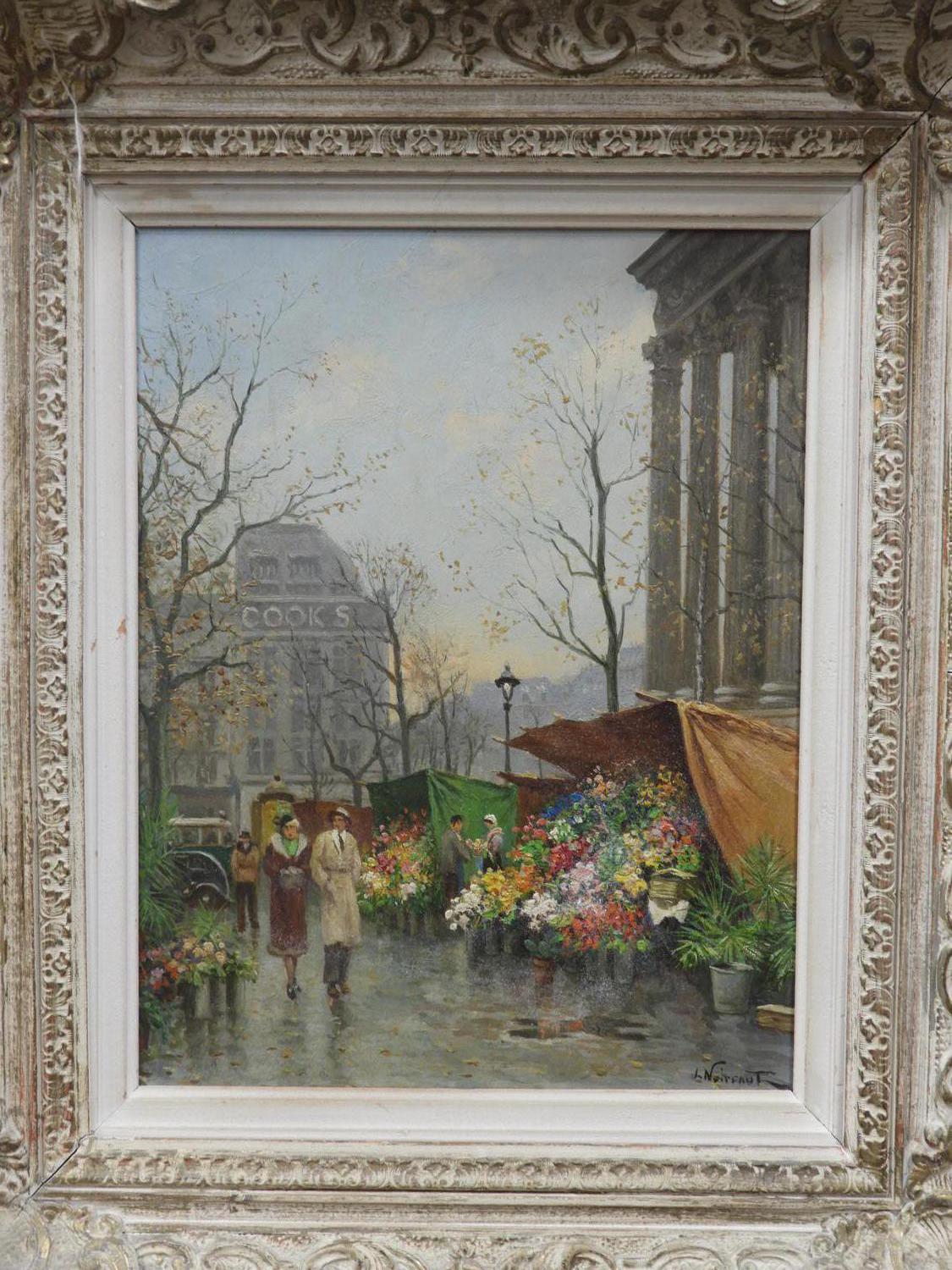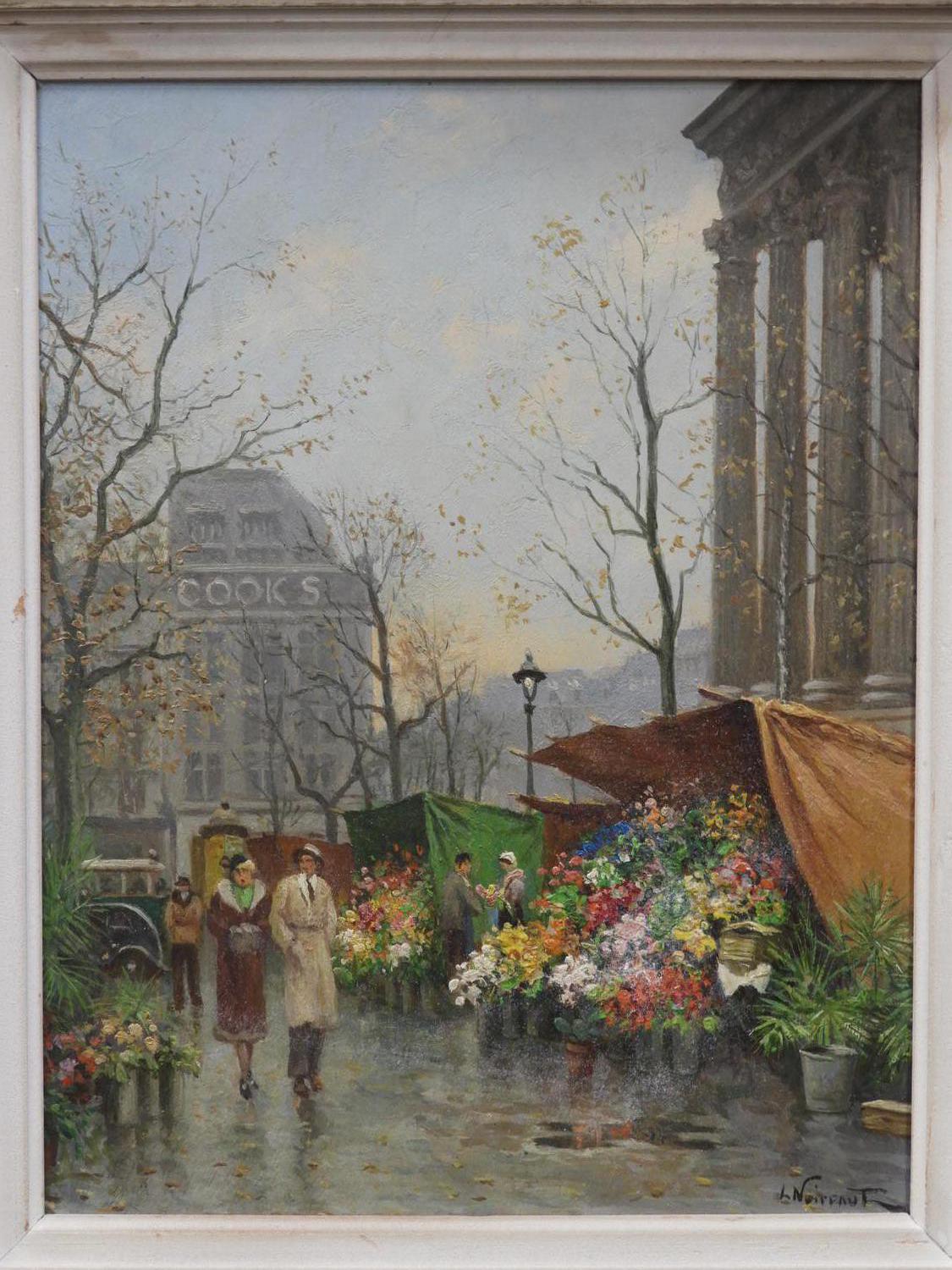 l. noireaut (1890-1960), oil on board, 14" x 11", "le marche aux fleurs place de la madeleine"