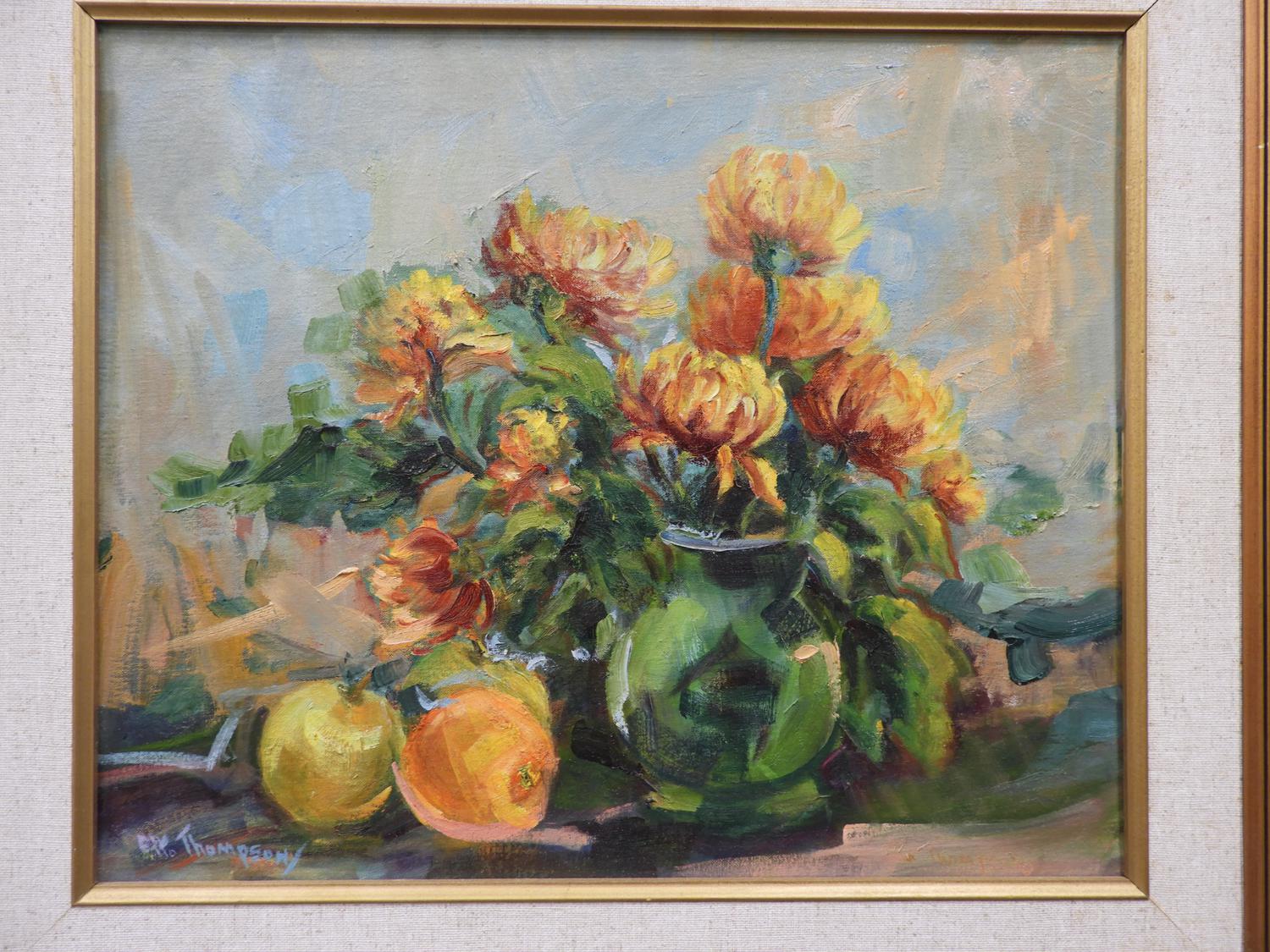 otto thompson, d.1976, oil on board, 20" x 24", "stillife"