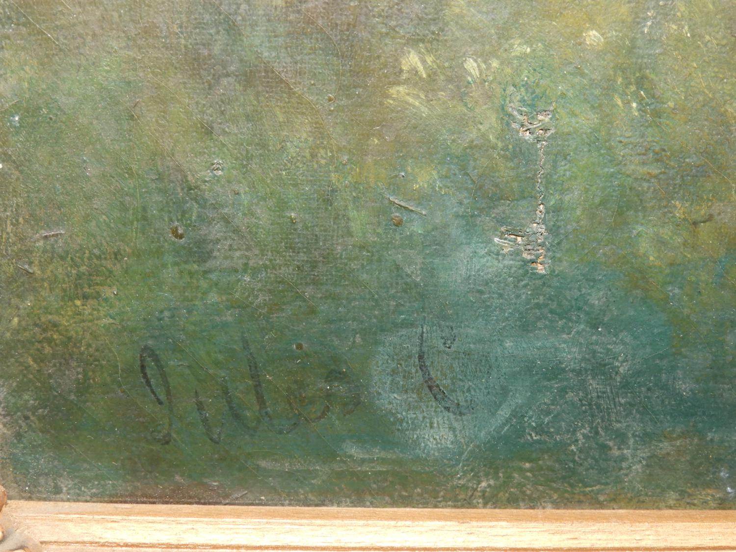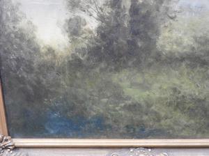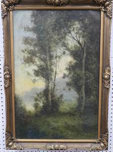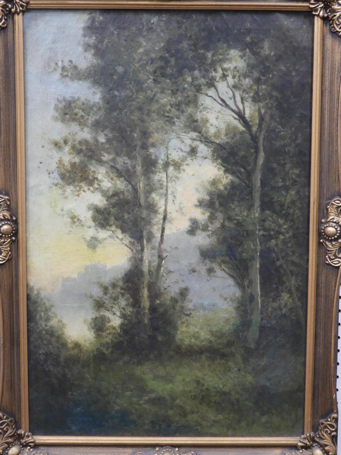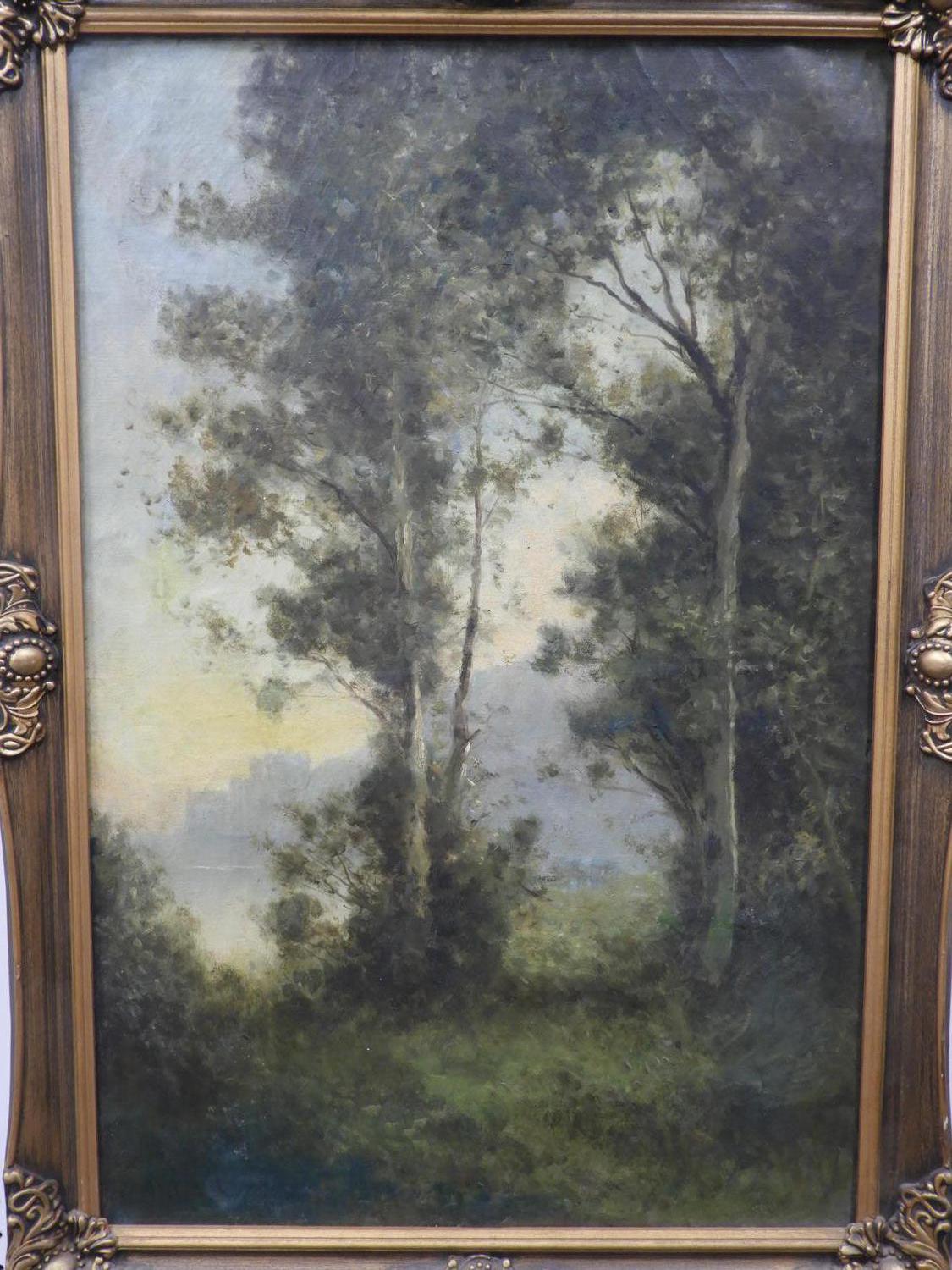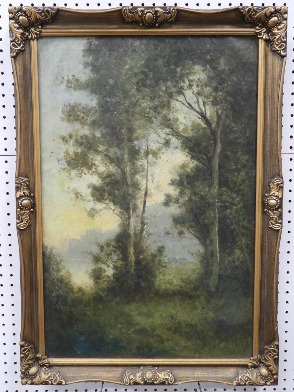 19th/20th century barbizon school, indistinctly signed jules c, oil on canvas, 30" x 20", "forrest scene"