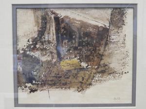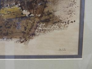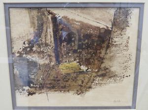 signed biro, painting on paper, 6 1/4" x 7 1/2", "untitled abstract"