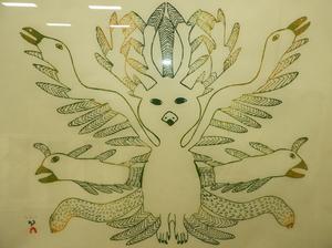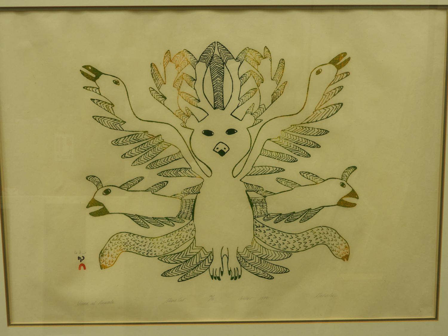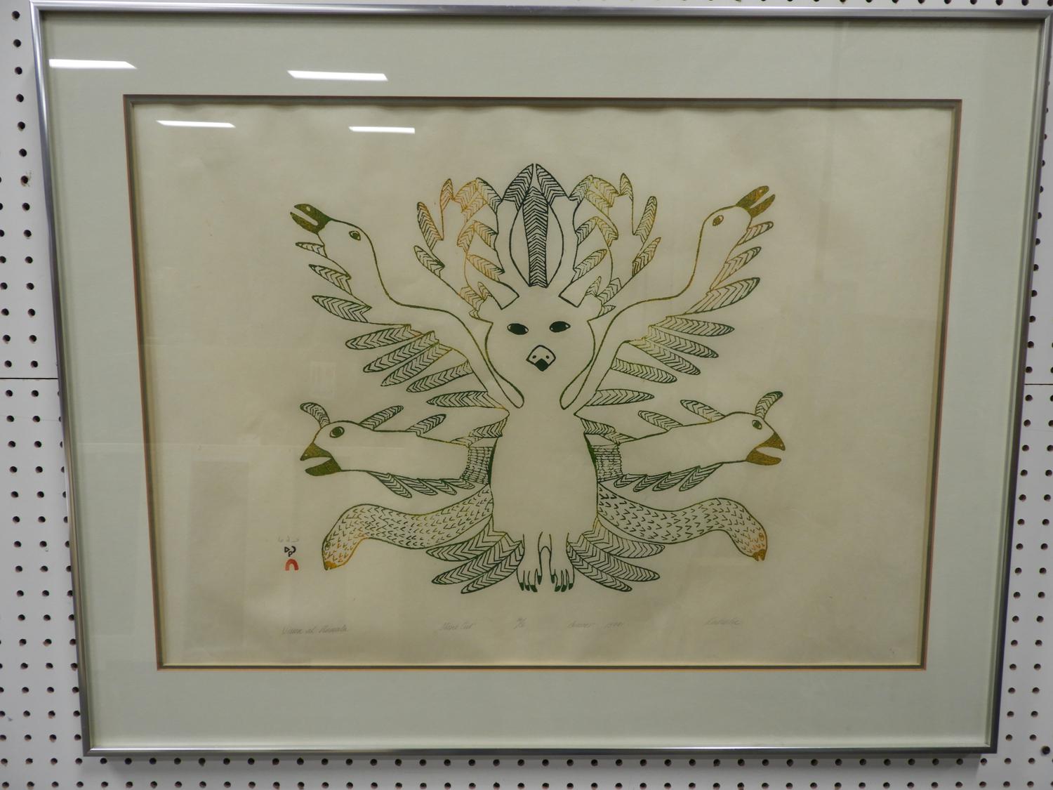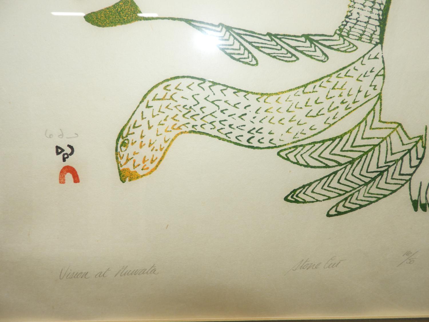kakulu sagiatuk (1940-20202), stonecut #16/50, d.1974, 22" x 30", "vision at nuwata"