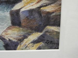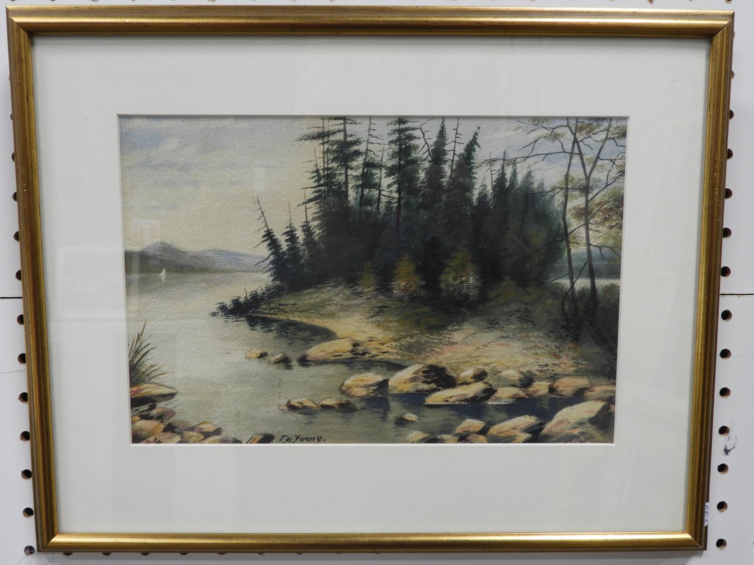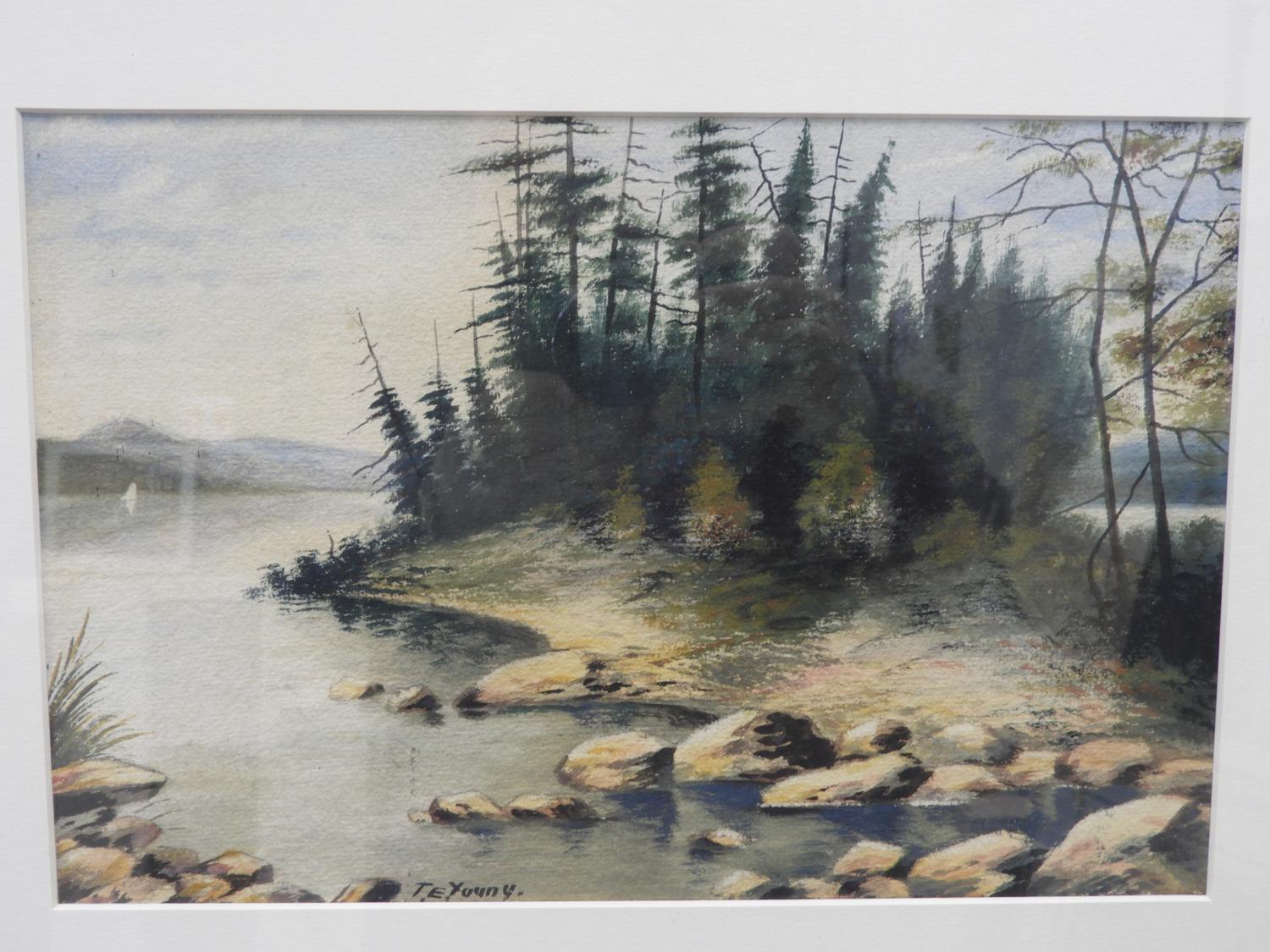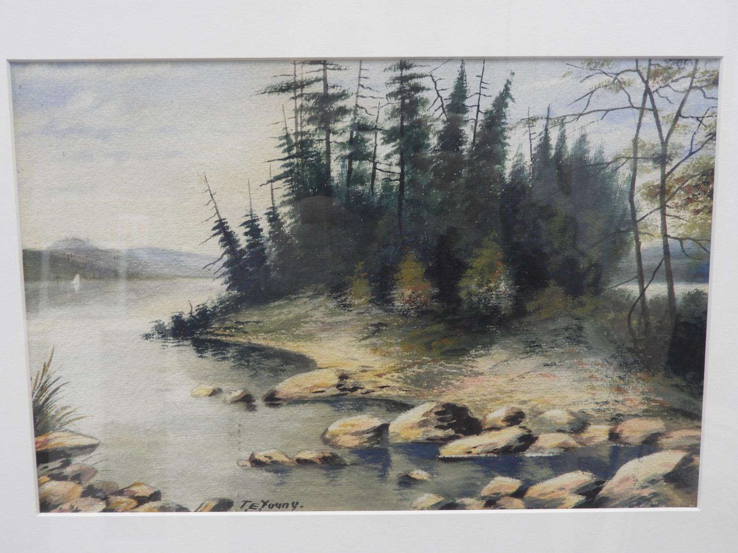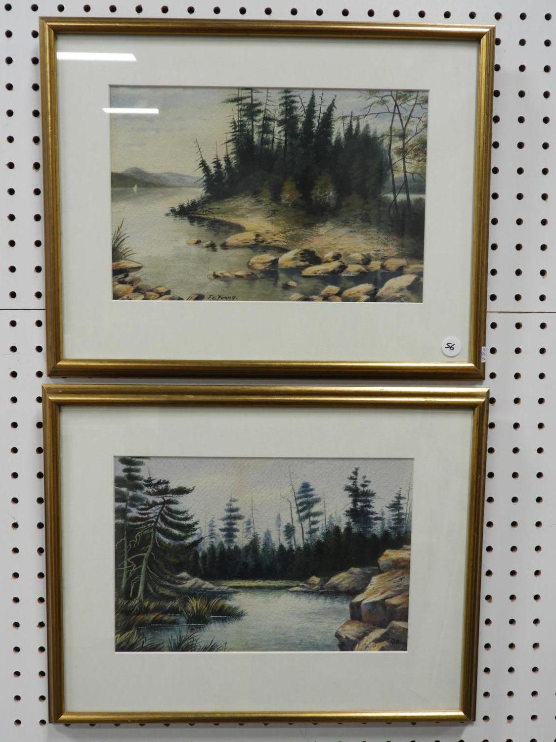t. e. young, two watercolours, 8" x 12", "shoreline landscapes"
