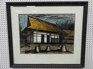 bernard buffet (1928-1999), lithograph in colours, 18 1/2" x 24 1/2", "from the book series - le voyage au japon"