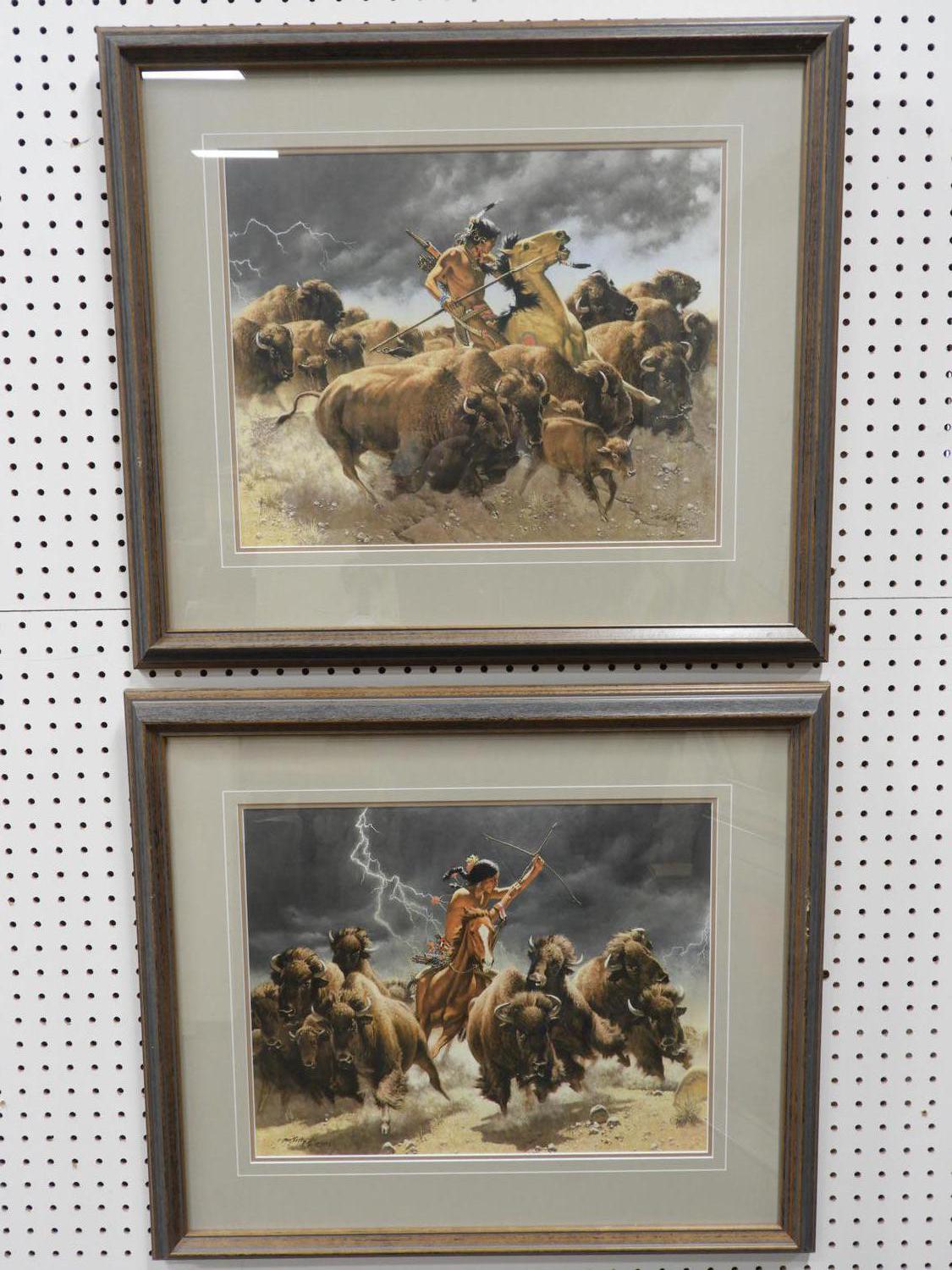 frank c. mccarthy (1924-2002), pair of signed prints, 14" x 18", "untitled - lightning & thunder"