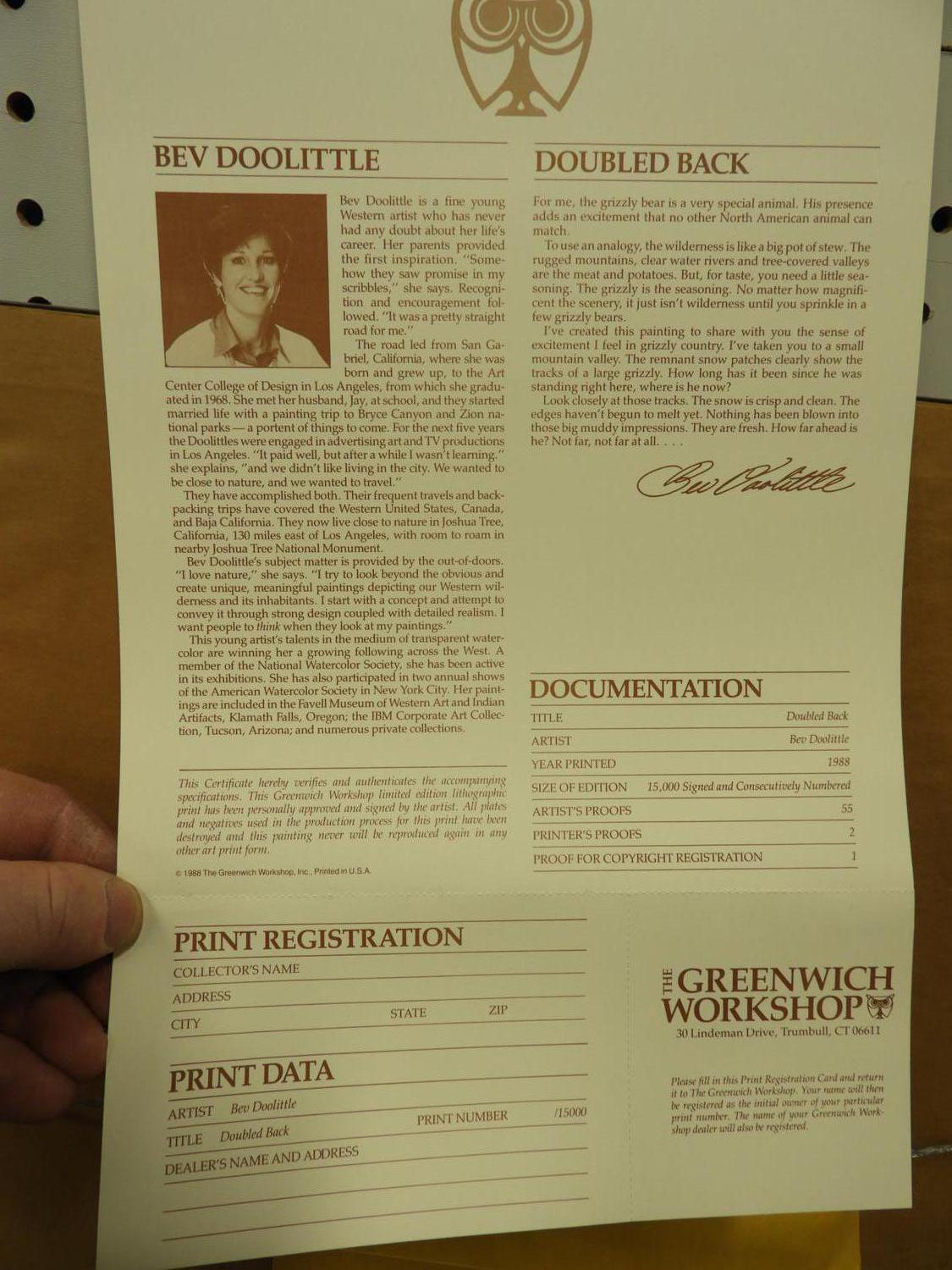 bev doolittle (b.1947), ltd. ed. print #1929/15000, 18" x 31", "doubled back"