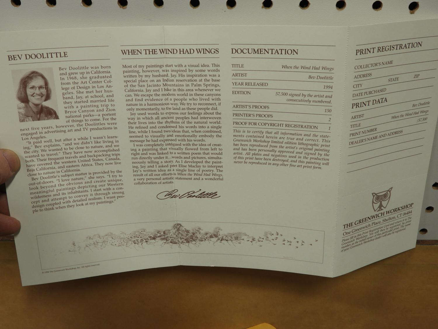 bev doolittle (b.1947), ltd. ed. print #2972/57500, 8 1/2" x 48", "when the wind had wings"