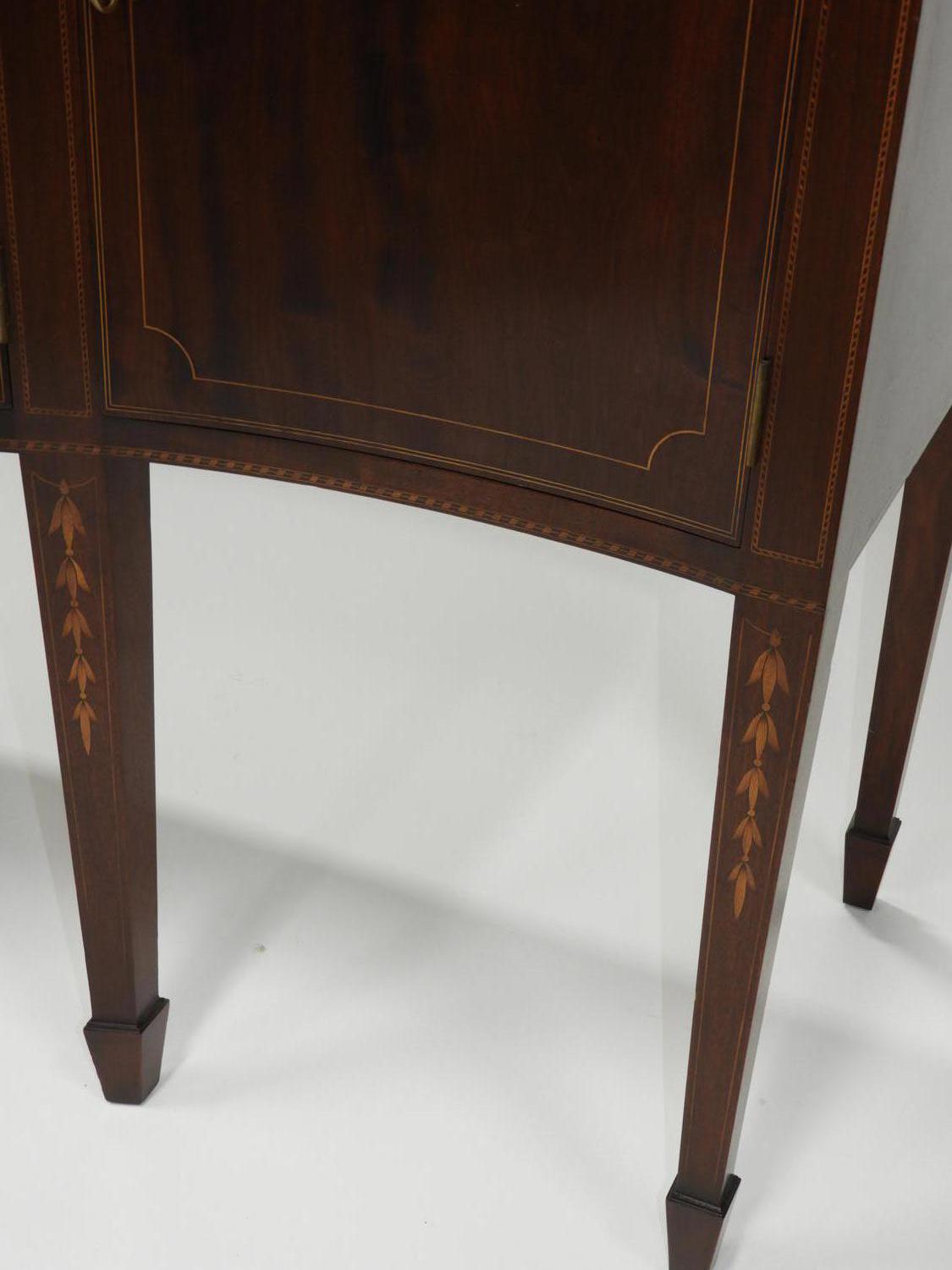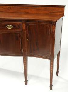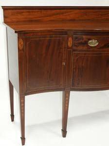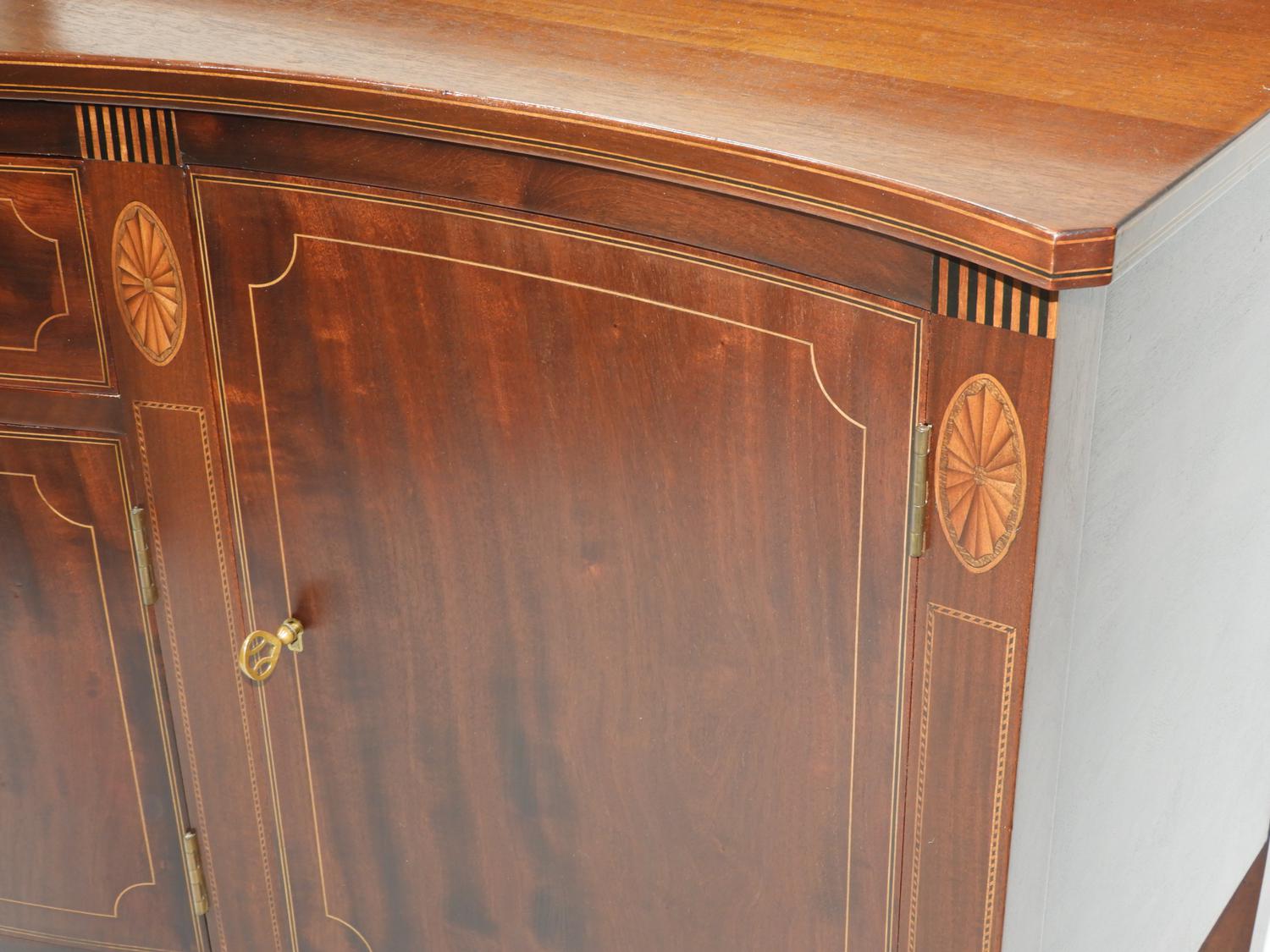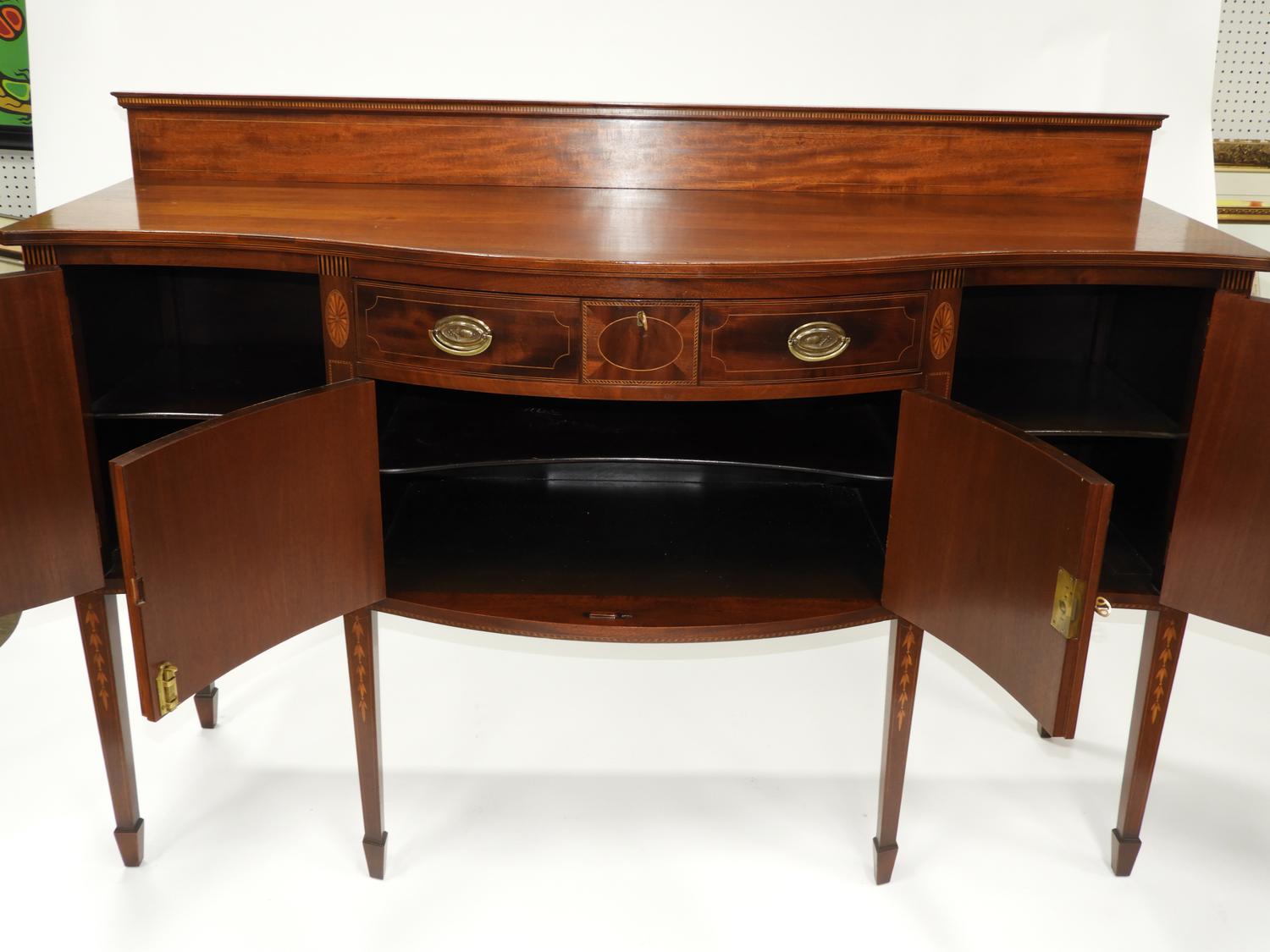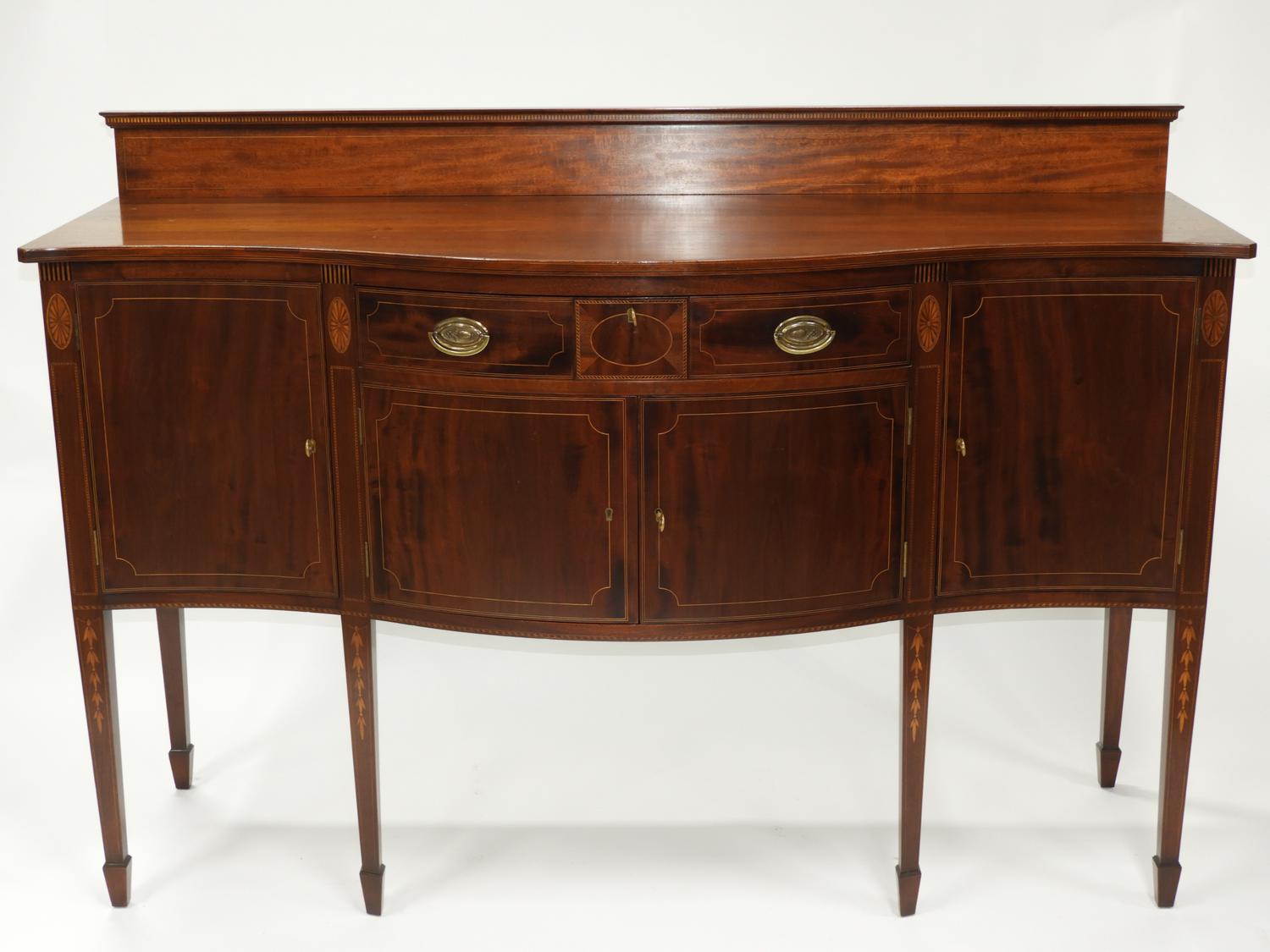 american federal-style inlaid mahogany serpentine front sideboard, made by potthast brothers, usa, 45 1/4" x 67" x 21"
