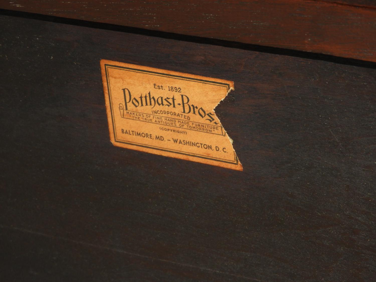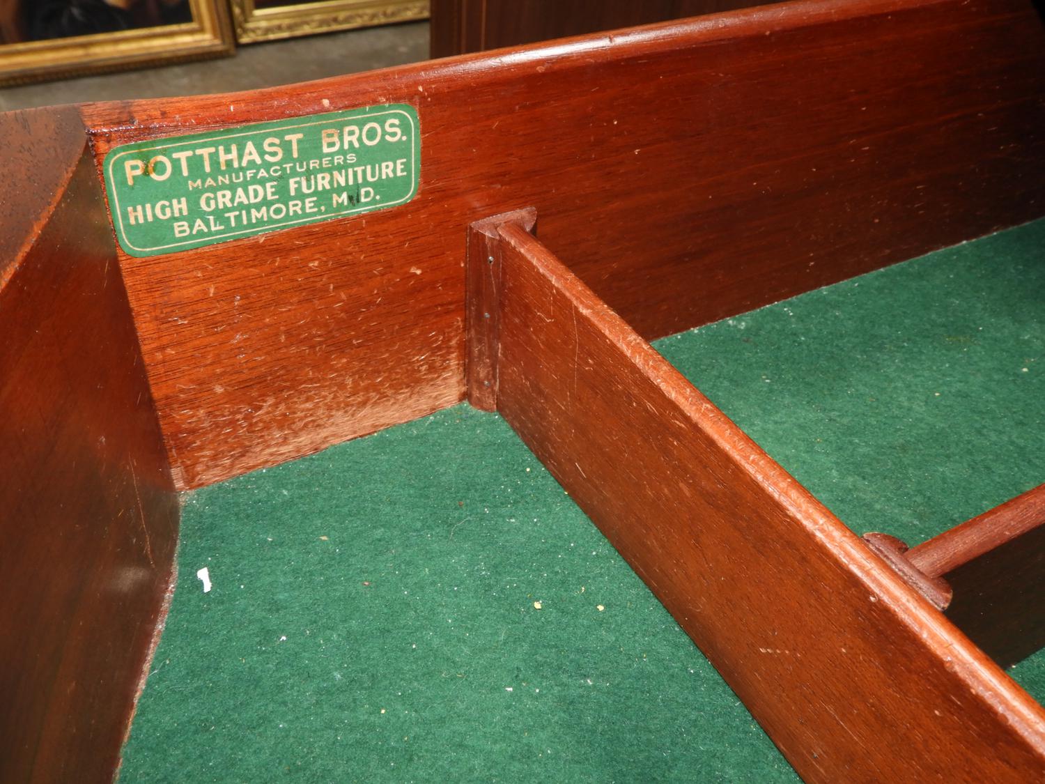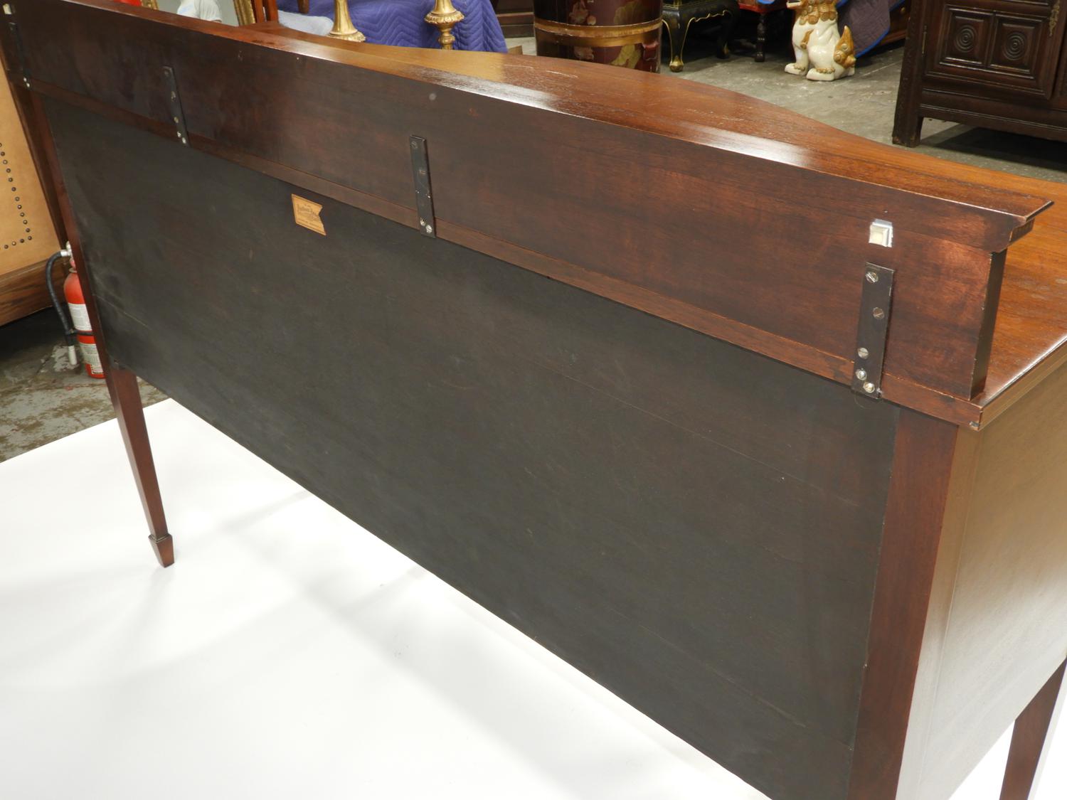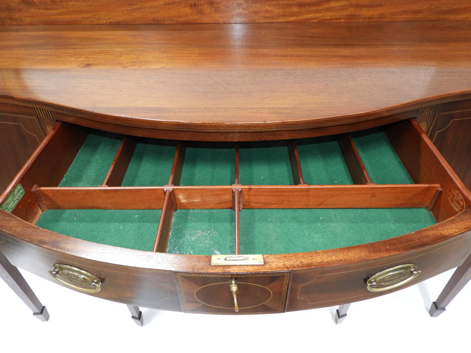 american federal-style inlaid mahogany serpentine front sideboard, made by potthast brothers, usa, 45 1/4" x 67" x 21"