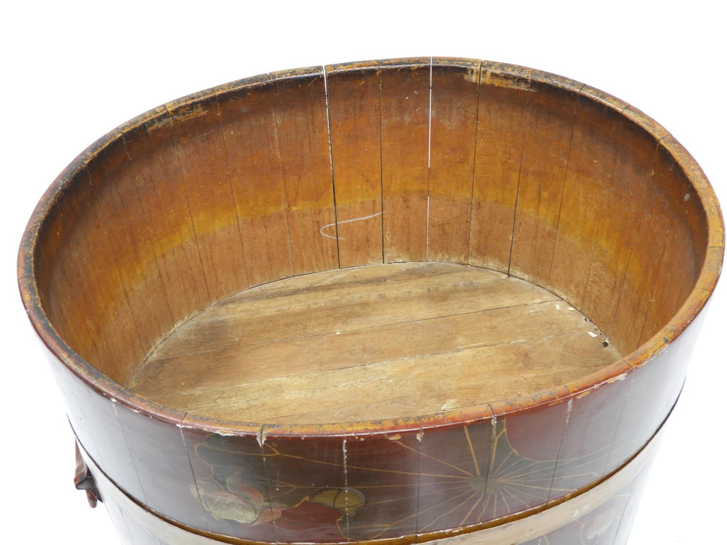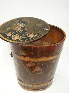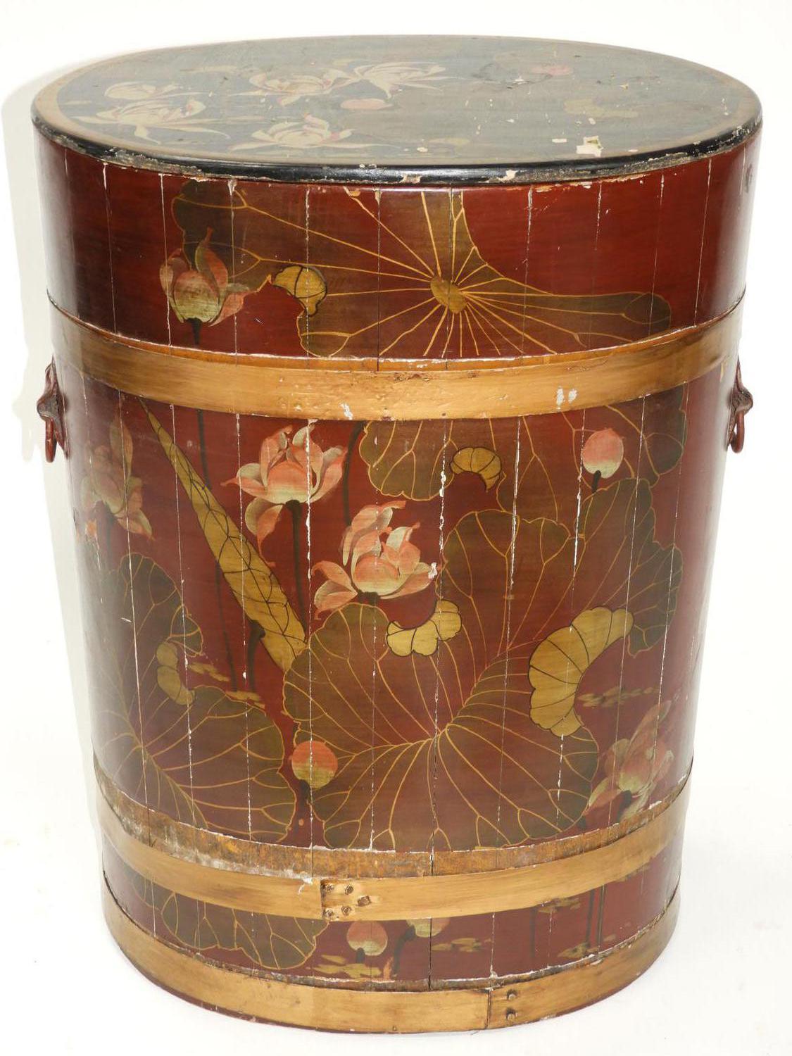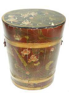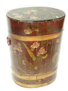 asian style lacquered covered bin, 28" x 22 1/2" x 18"