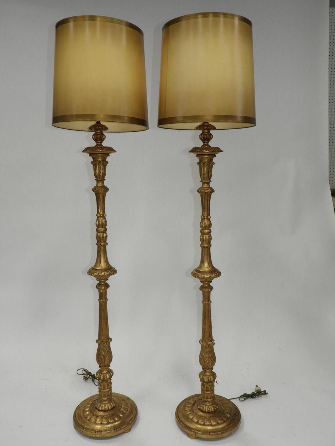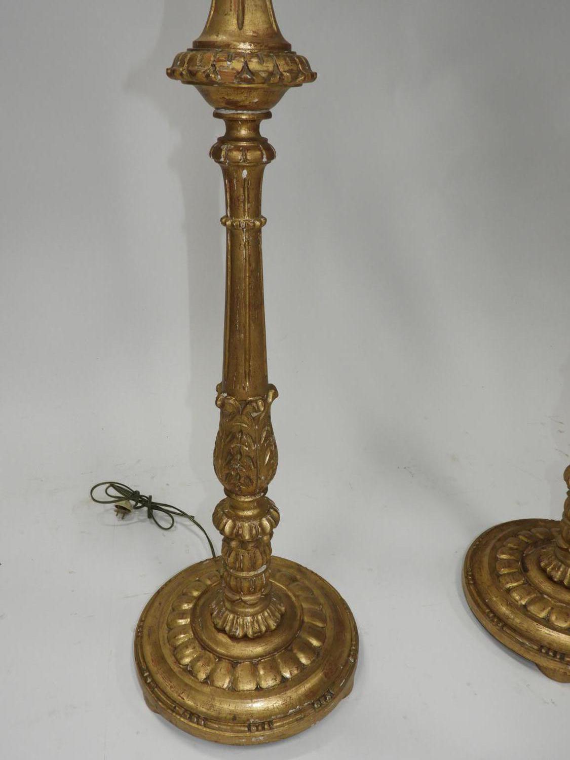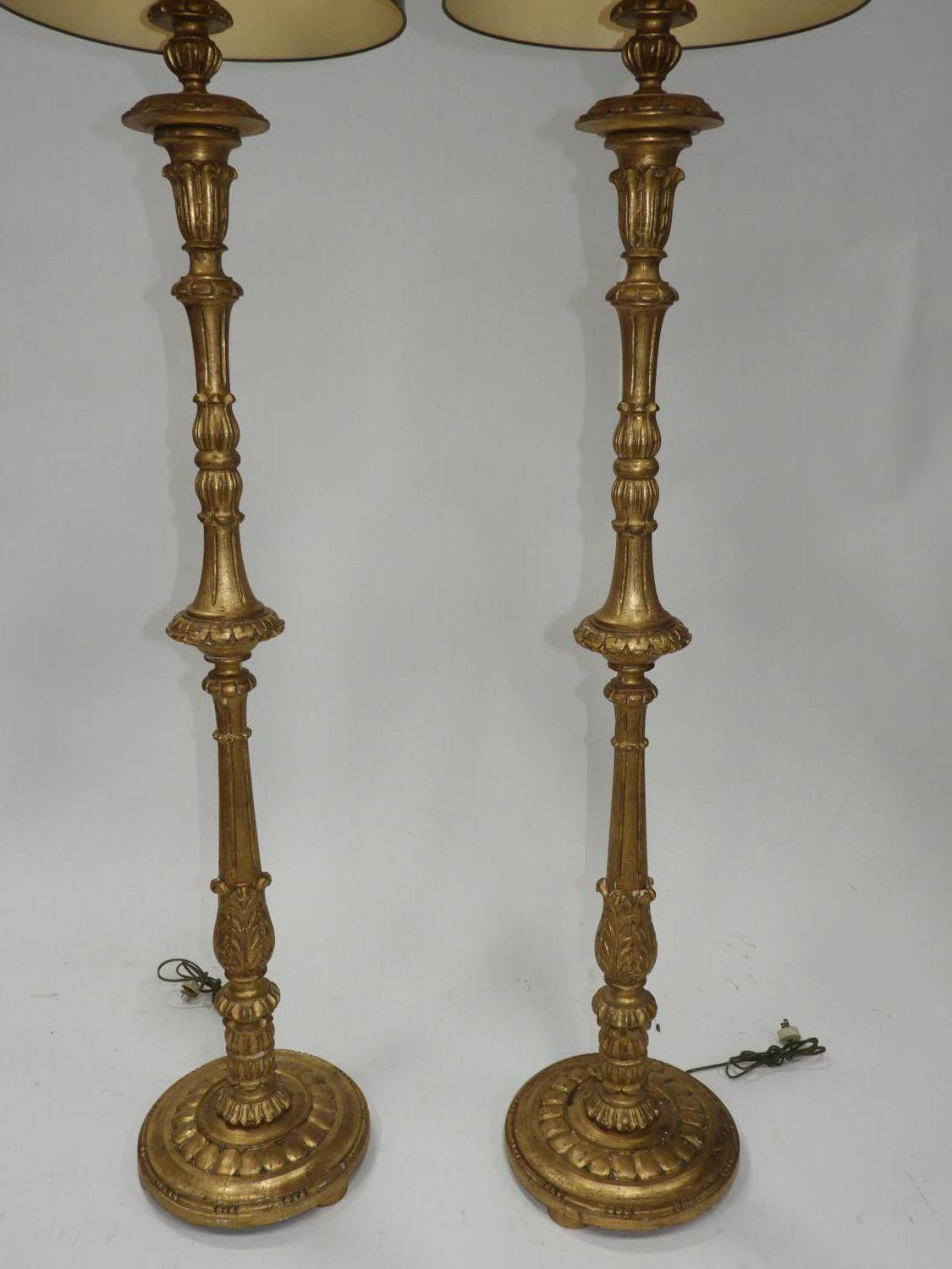 pair of carved gilt gesso floor lamps, italian 2nd half 20th century, ht. 68"