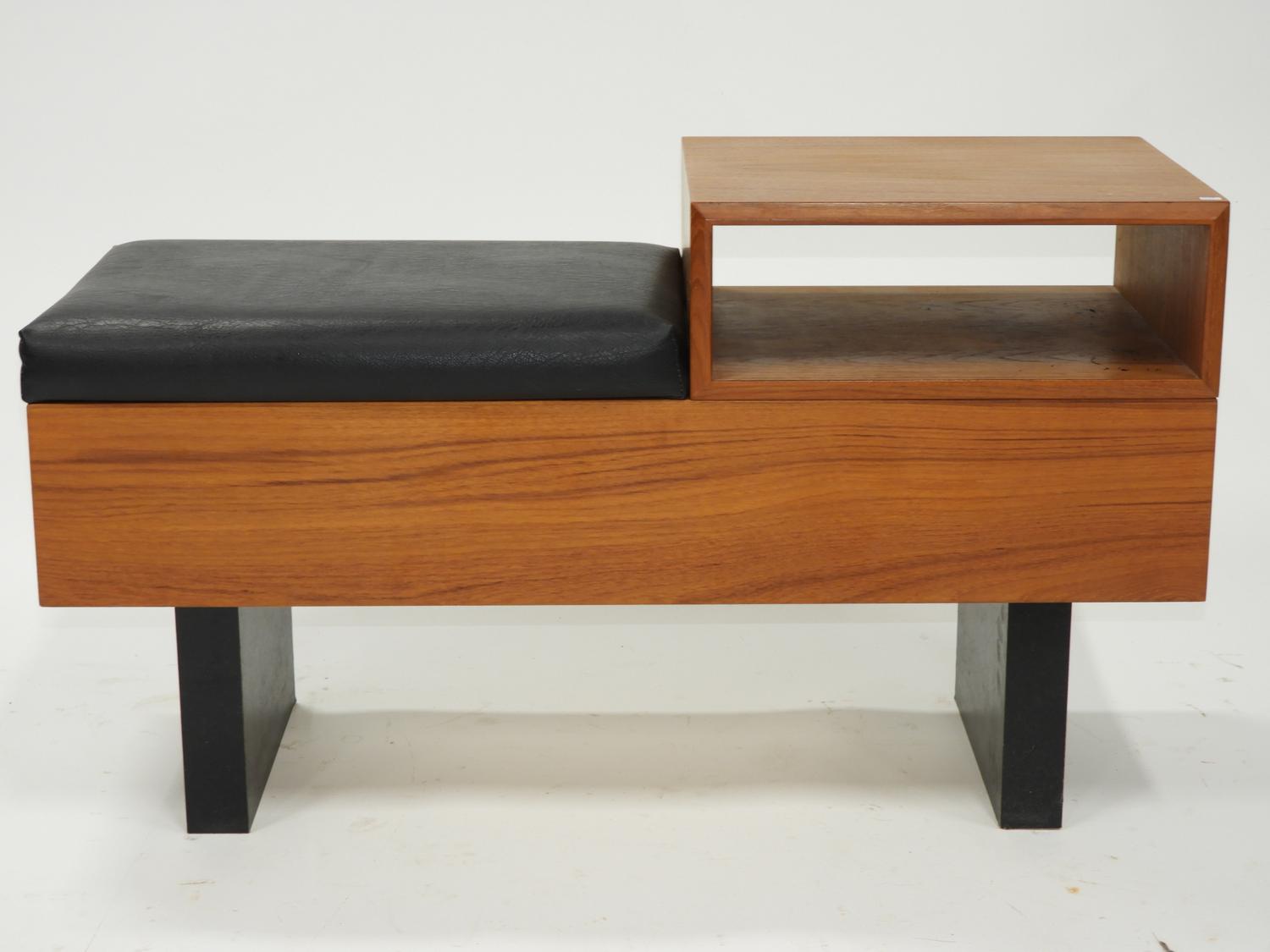 teak leather upholstered waiting/hall bench, 21" x 36" x 15"
