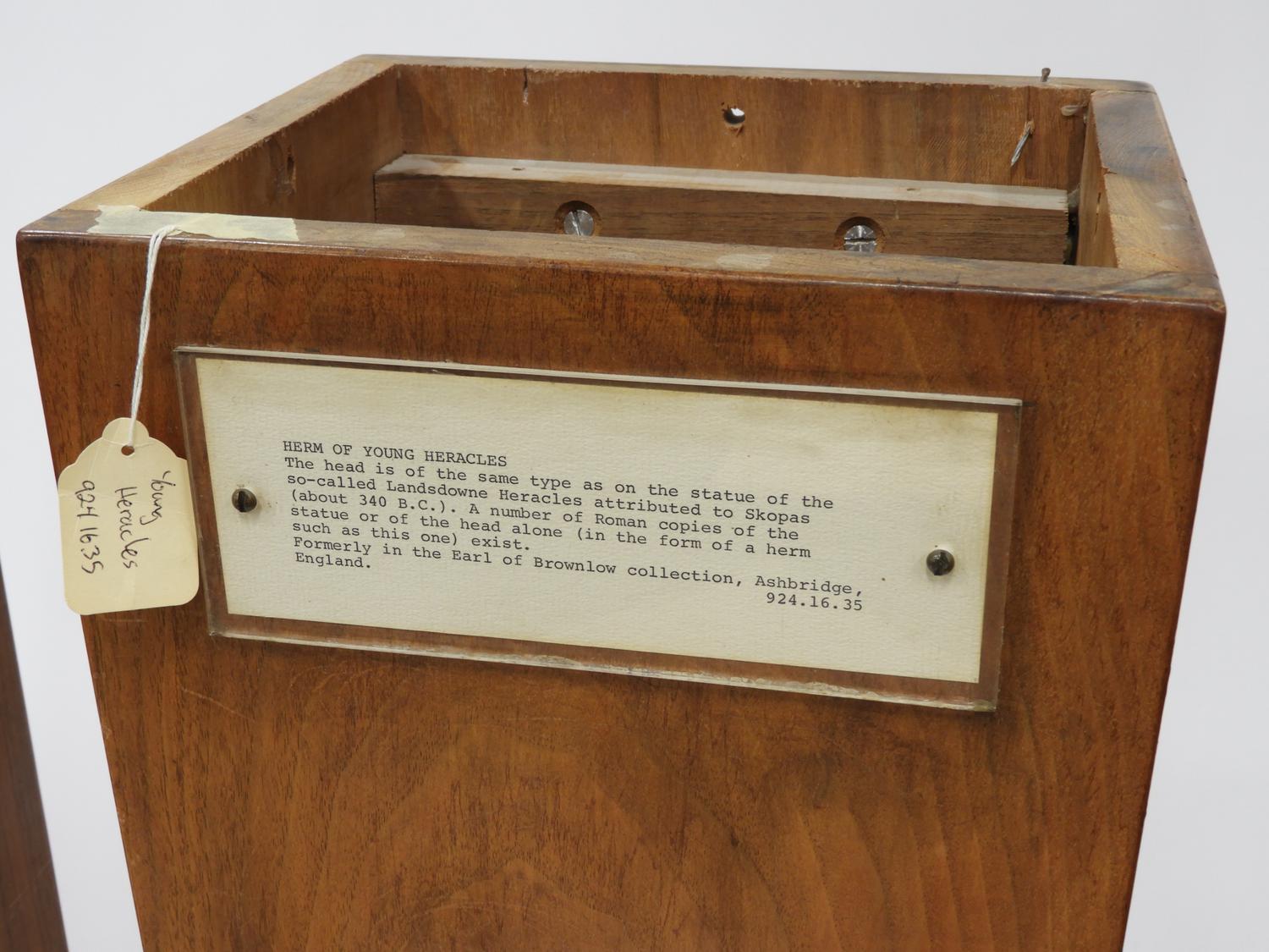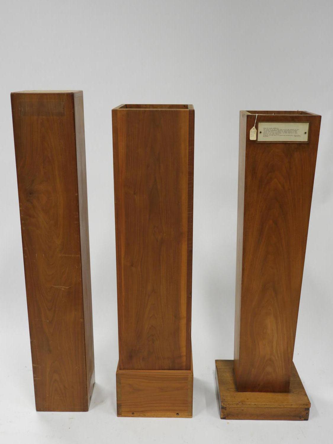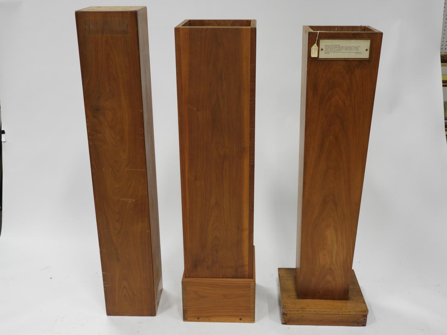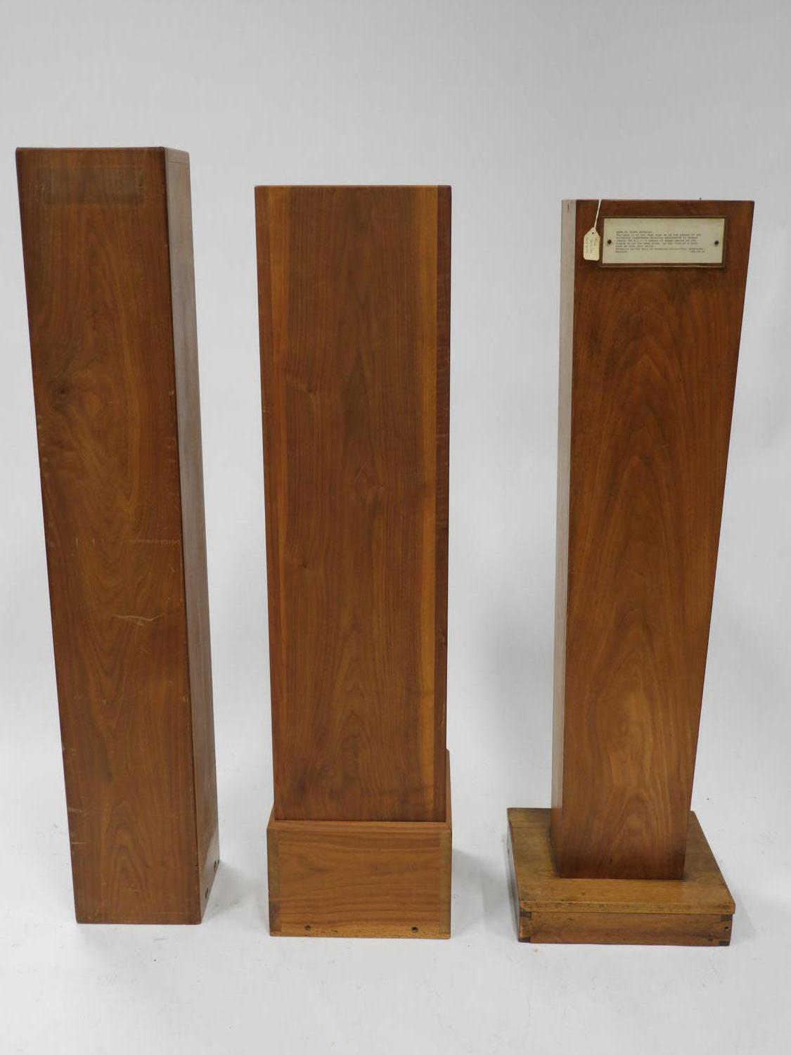 three royal ontario museum walnut display pedestals, c.1930, ht. 54 1/2" and smaller