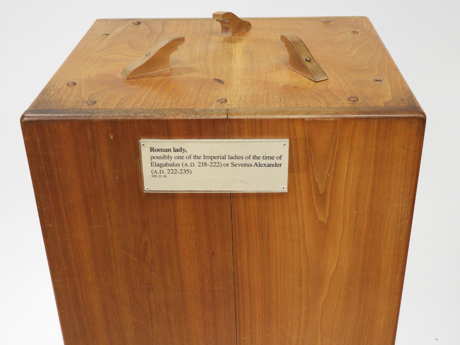 royal ontario museum walnut display pedestal, c.1930, 44" x 19" x 17"