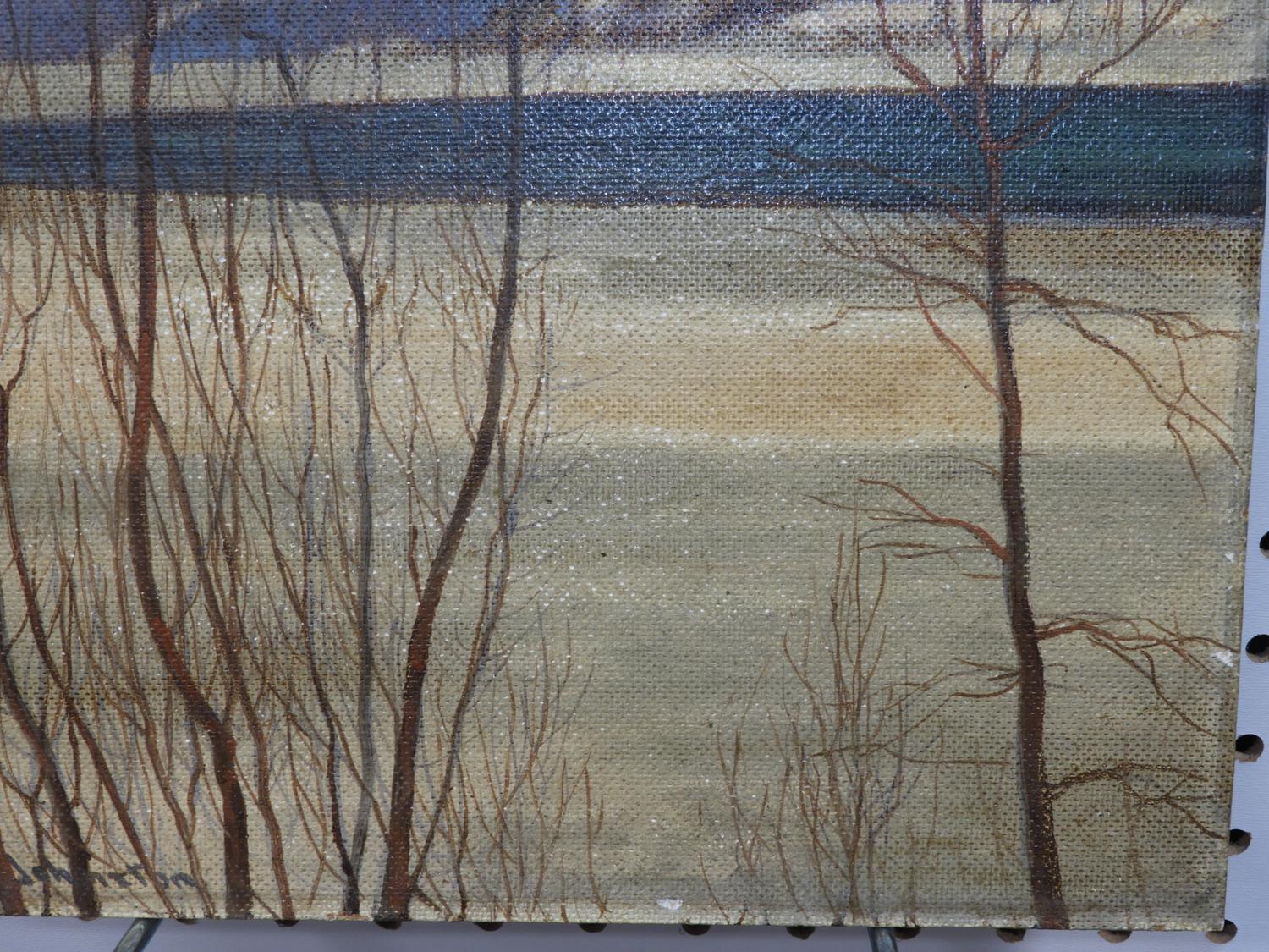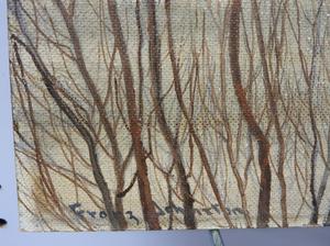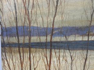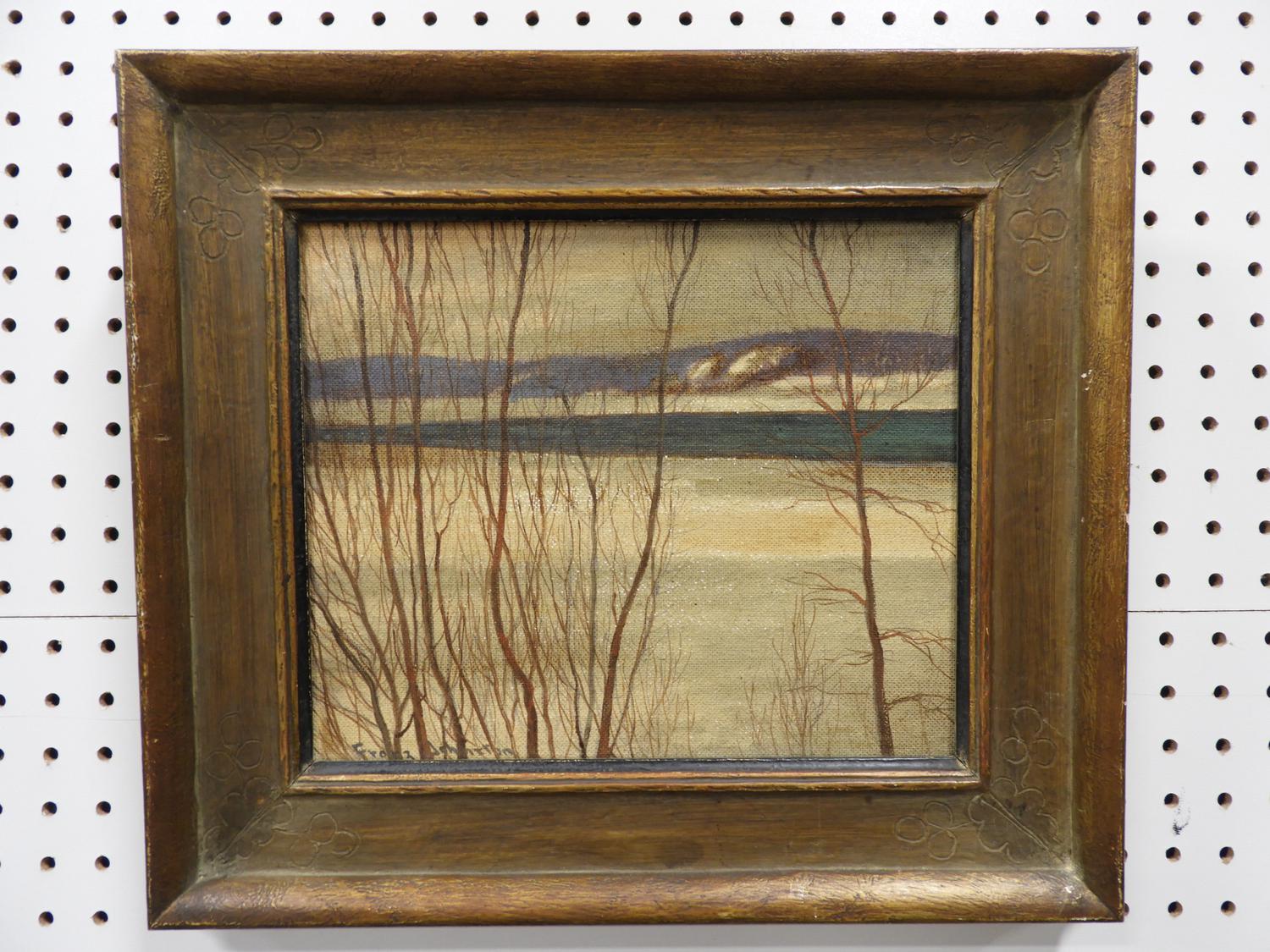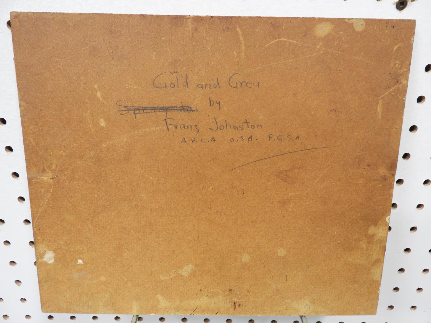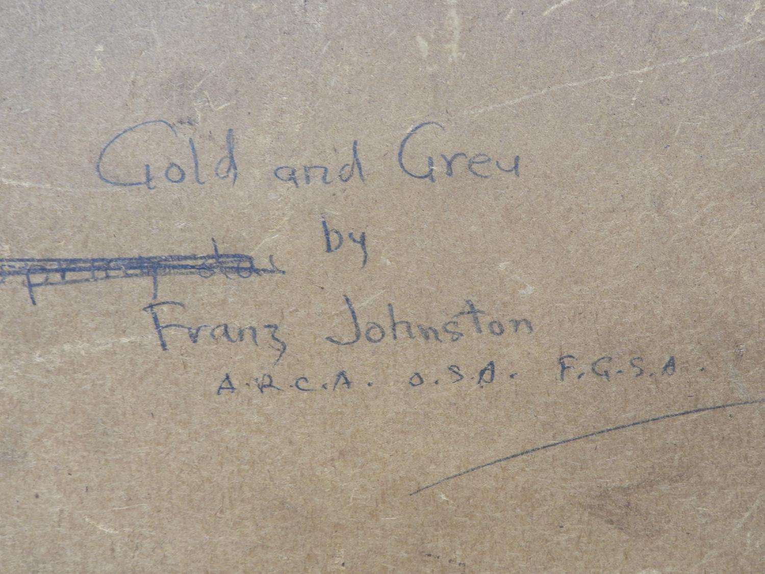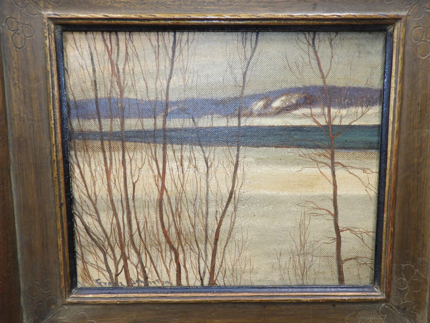 Frank Hans (Franz) Johnston1888 - 1949, CanadianGold and Grey, c. 1937Oil on board10 x 12 in., 25.4 x 30.5 cmInscription verso: in graphite: Gold and Grey/ by / Franz Johnston/ A.R.C.A., O.S.A., F.G.S.A. / Spring [[crossed out]] …[[illegible]]The viewer looks through the bush in the foreground to ice and snow, a narrow section of free-flowing water and in the distance, more snow. There even is snow piled on the distant blue hills. It`s a grey day but holds the promise of spring in the lightening sky.Franz Johnston loved painting the spring break-up of lakes and rivers. It was a view he studied often and he had seen the composition used in this straight-forward way by Tom Thomson, his friend from his days at Grip Limited in Toronto, and the Group of Seven of which he was a member in 1920. As the spring progressed, he doubtless came back to the same place to record the site but now under more favourable weather conditions, perhaps on a bright day and with the water flowing more freely.He may have painted the sketch in the Longlac District of Ontario, now amalgamated with other townships and districts to form an area called Greenstone, Ontario. He painted a sketch there titled “Advancing Spring - Melting Shows in Late March in the Longlac District” (1937), sold at Waddington`s Auction in May 2017. It too is oil on board and of the same size. In it, he recorded the banks of snow, blue where they sloped down to the river.As a result of his trip, Johnston seems to have gone back to the studio and created the major canvas “Advancing Spring”, sold on two occasions by Joyner/Waddington`s (2009 and again in 2112), utilizing the carefully delineated bushes from “Gold and Grey”, especially in the foreground, and the steep banks of snow from the second sketch. He seems to have had his former membership in the Group of Seven on his mind because on the back of “Gold and Grey” he wrote “Franz Johnston, A.R.C.A., O.S.A., F.G.S.A.”. The last abbreviation stands for “Former Group of Seven Artist”. He wrote the same inscription on the back of the second sketch he painted in March in the Longlac District.“Gold and Grey” has its own quiet charm as an indication of Franz Johnston`s visit to what was for him a handsome new painting area. That he rose to its beauty is seen in his major painting on the subject. But even as he sketched, he must have realized its potential. There are many gaps in the history of Franz Johnston, as enunciated by art historians. “Gold and Grey” helps to fill one of these gaps and it fills it with style. A Johnston sketch of such quality only appears rarely on the market.Joan Murray