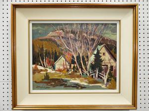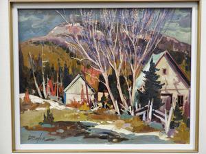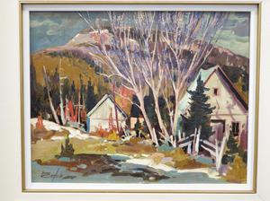 bruno cote (1940-2010), d.1986, oil on masonite, 16" x 20", "cap aux oies"