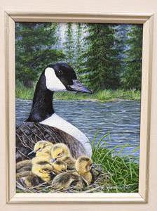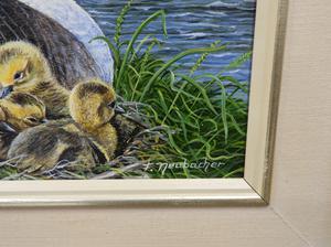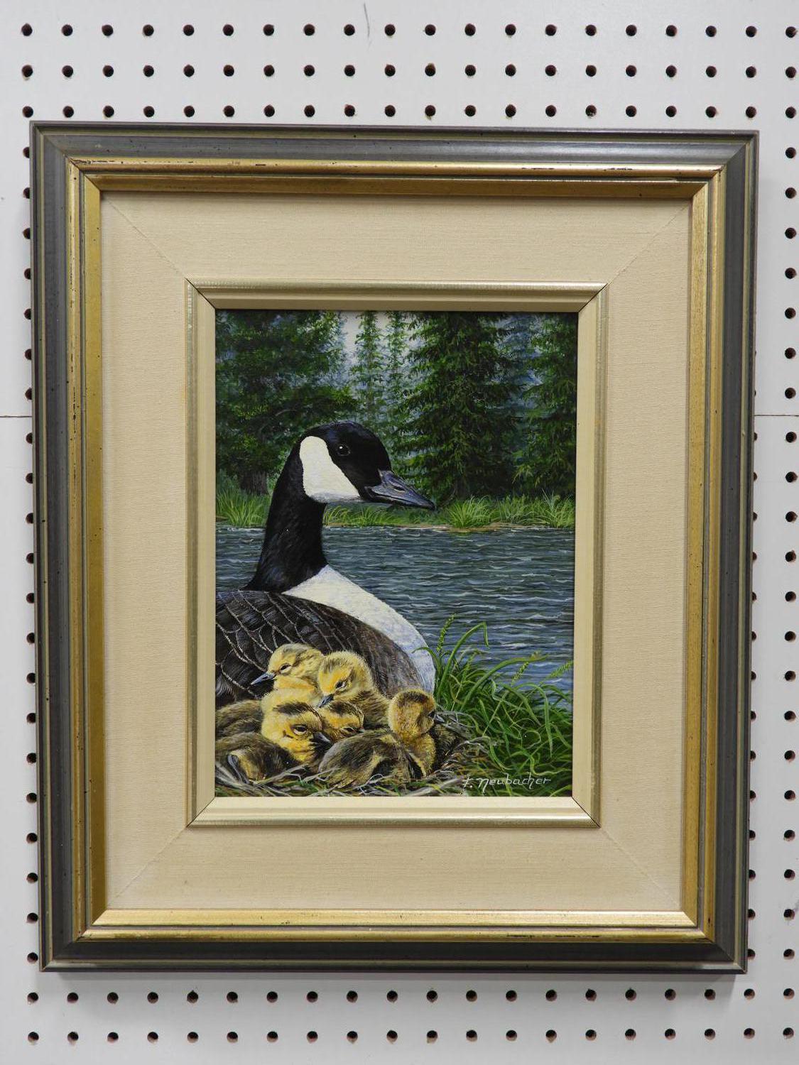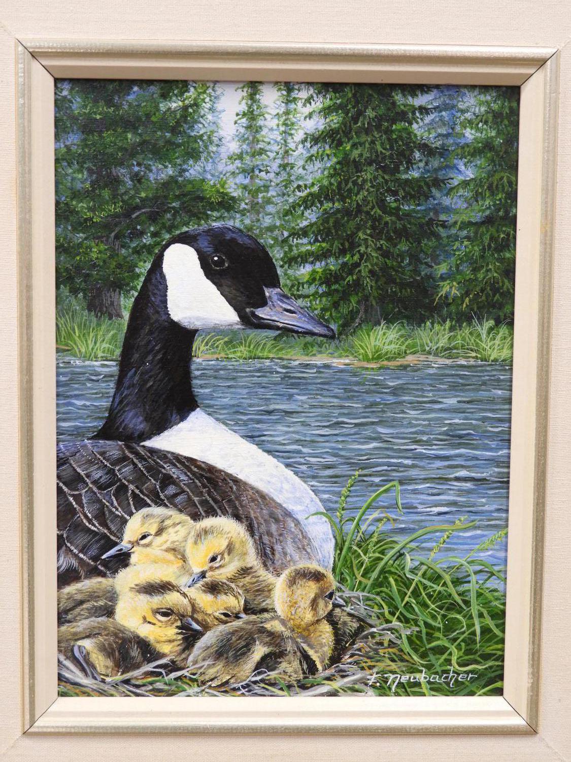 fred neubacher, d.1987, oil on board, 9" x 12", "canada geese"
