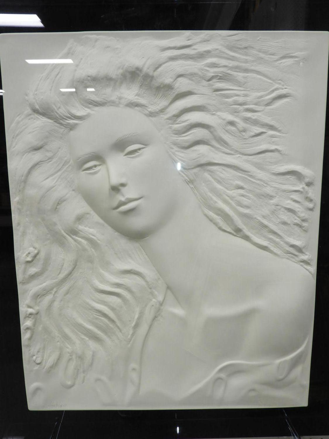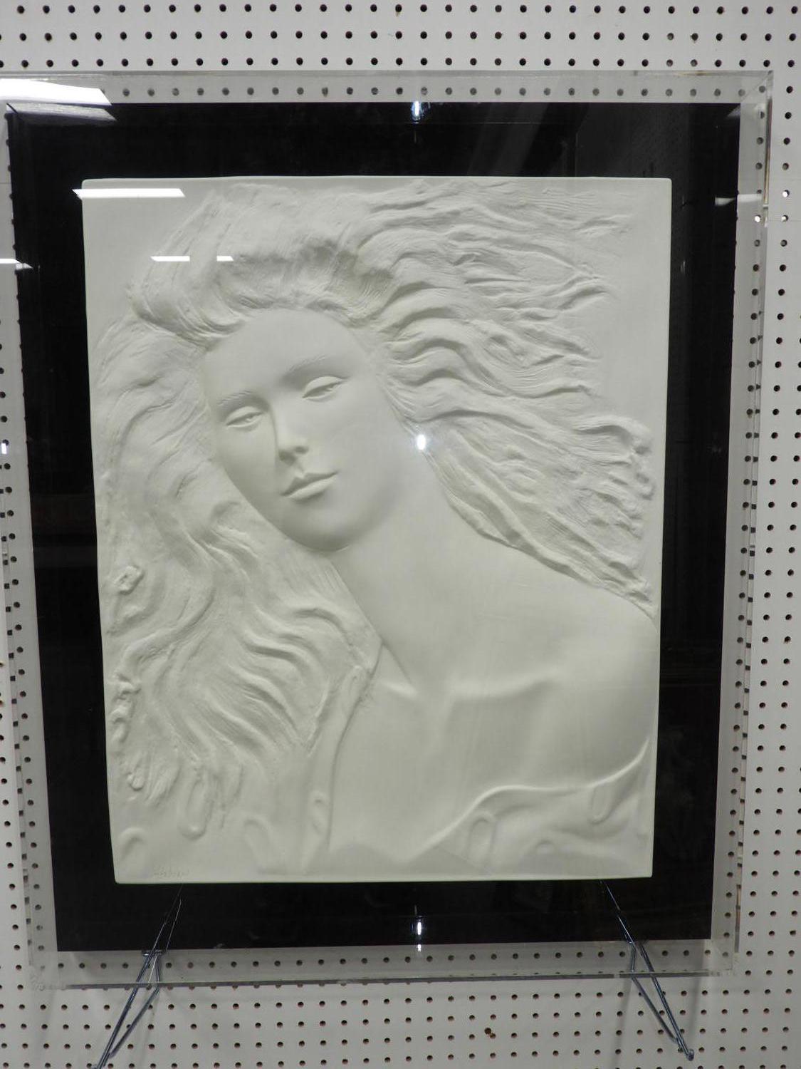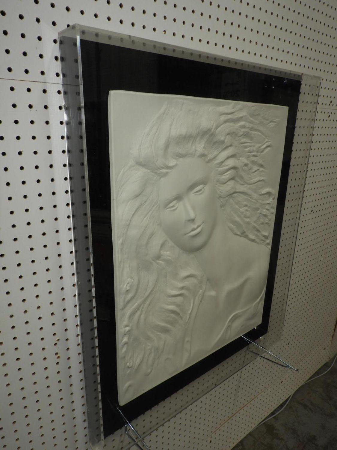 modern shadow box framed relief of a woman, signed, 36" x 30"