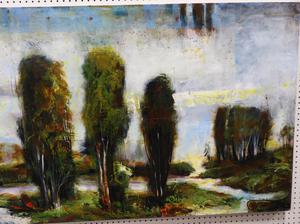 liana pica birt, (b.1964), acrylic on canvas, 36" x 72", "landscape"