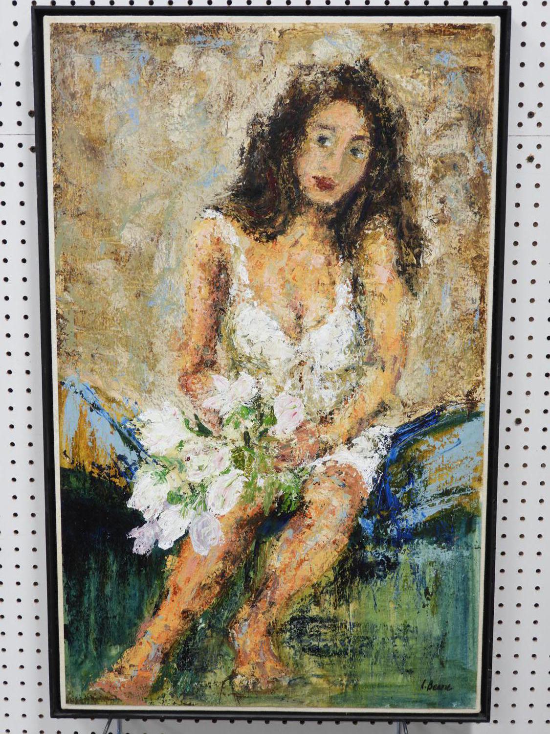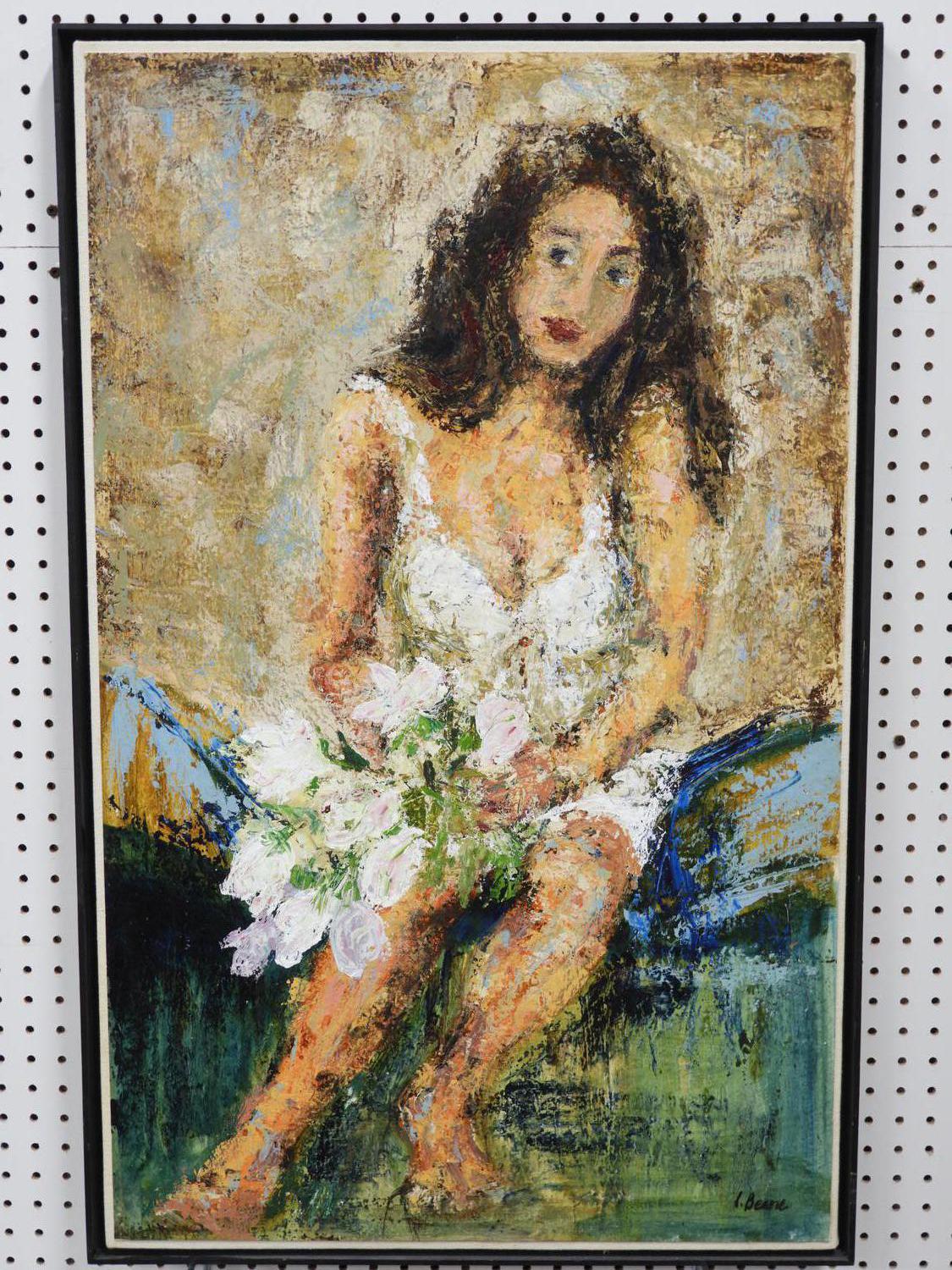 indistinctly signed beane?, acrylic on canvas, 36" x 23", "portrait of a woman"