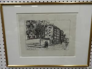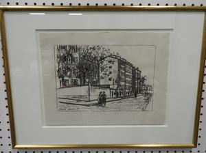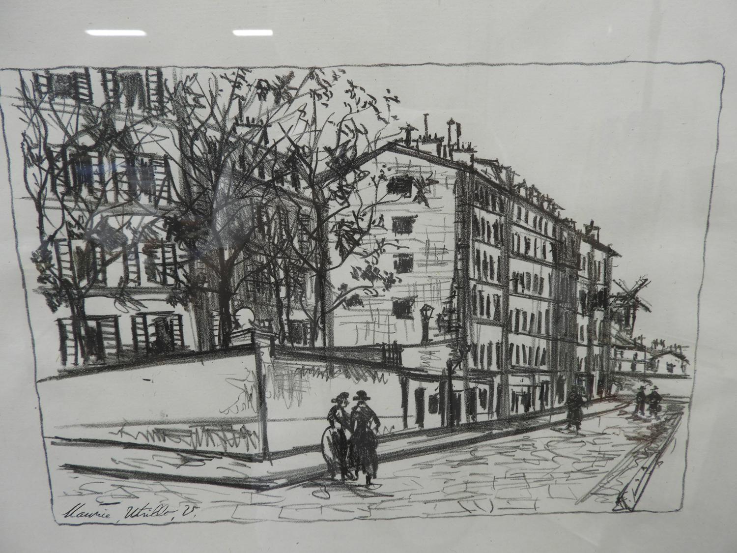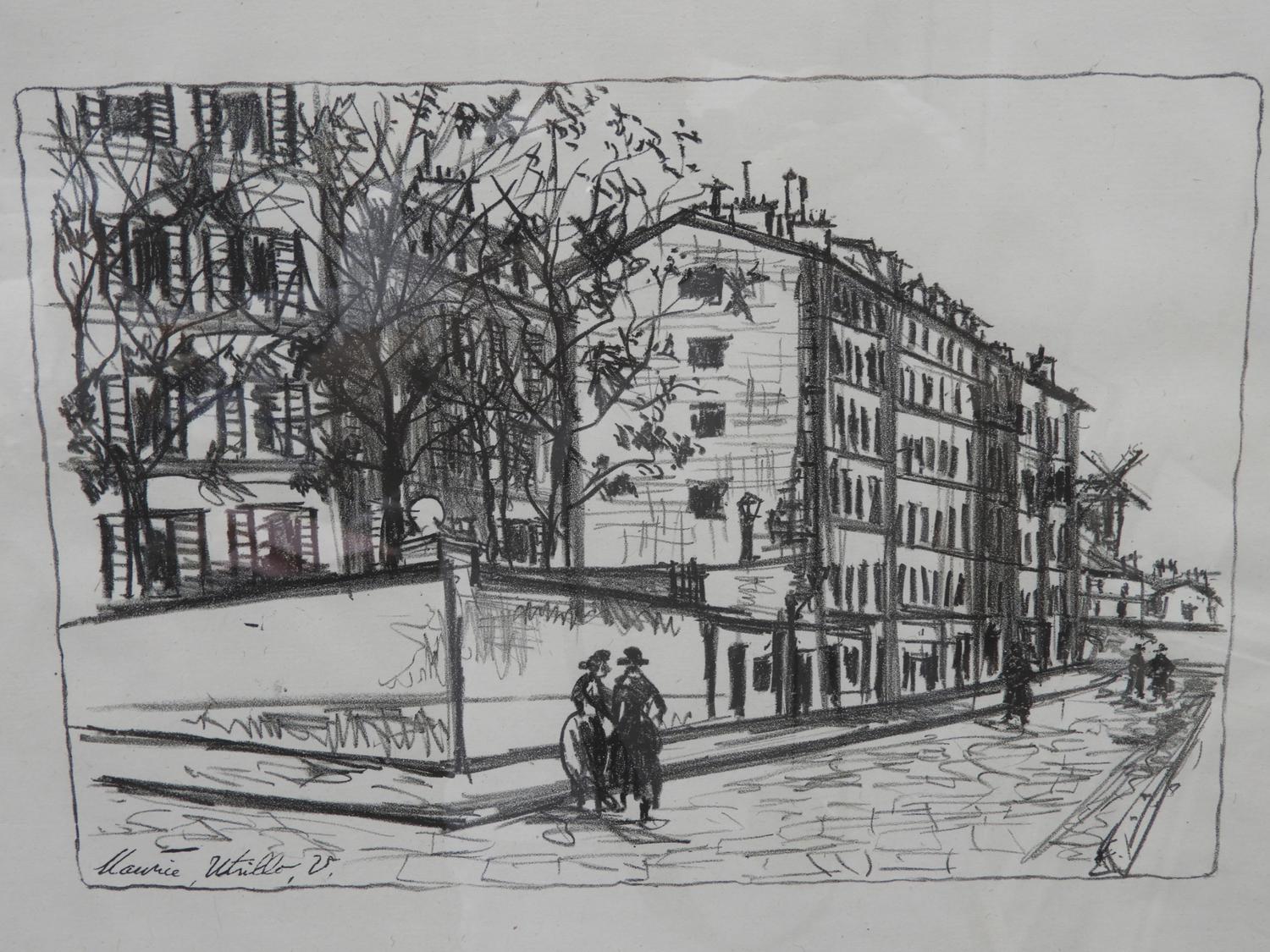 maurice utrillo (1883-1955), print signed in plate, 11" x 14 1/2", "la rue d'orchampt, montmartre, paris"