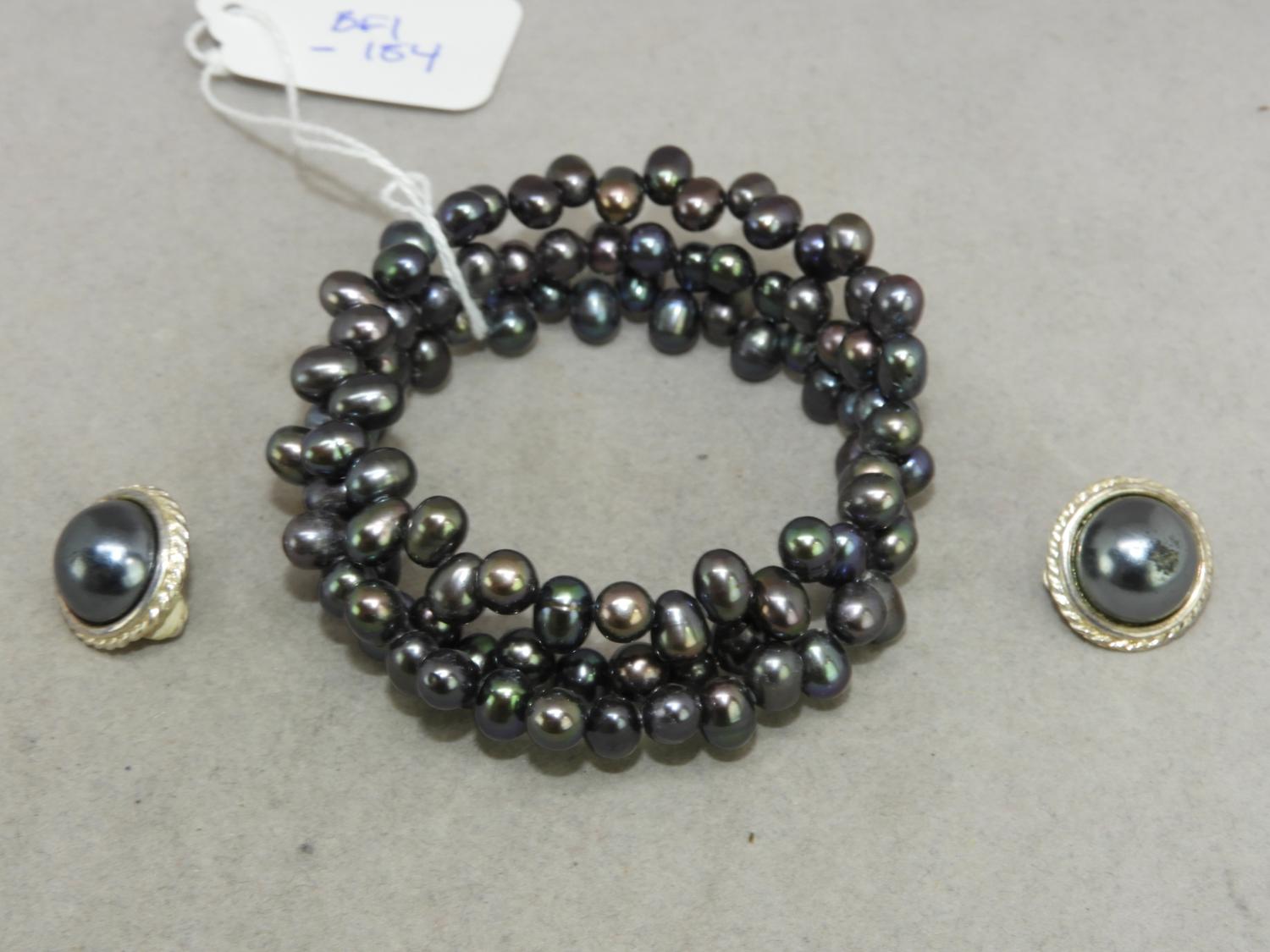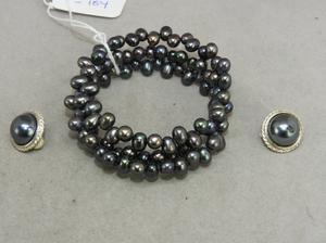 grey freshwater pearl bracelet, and costume carol lee earrings