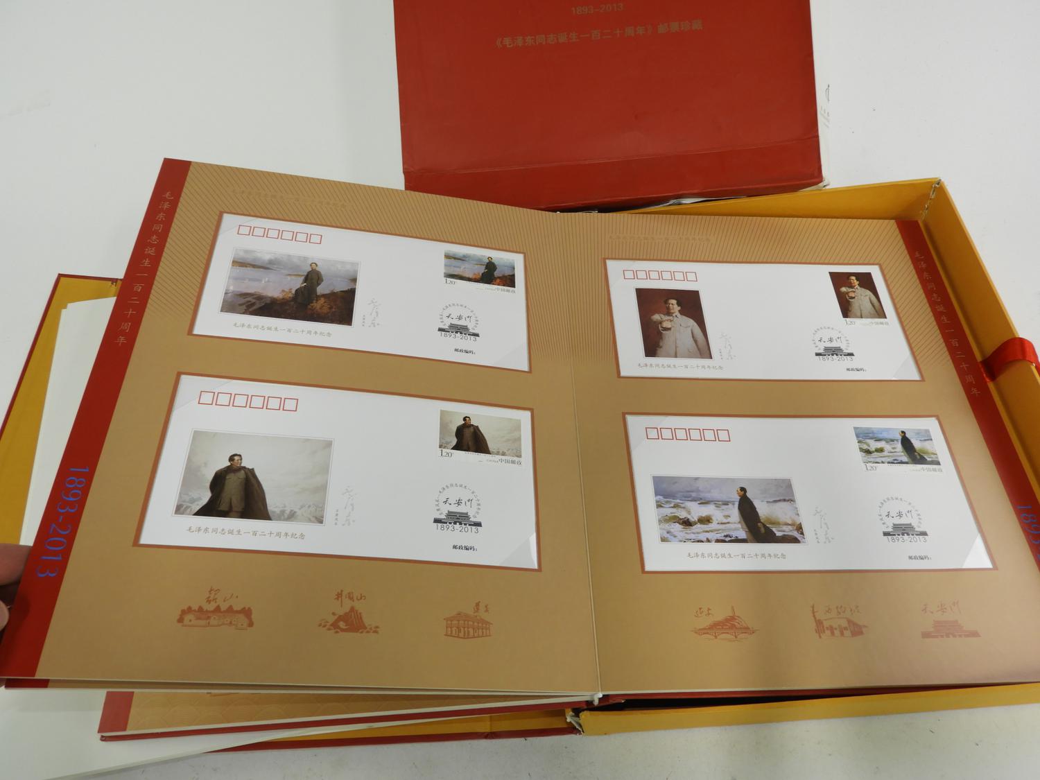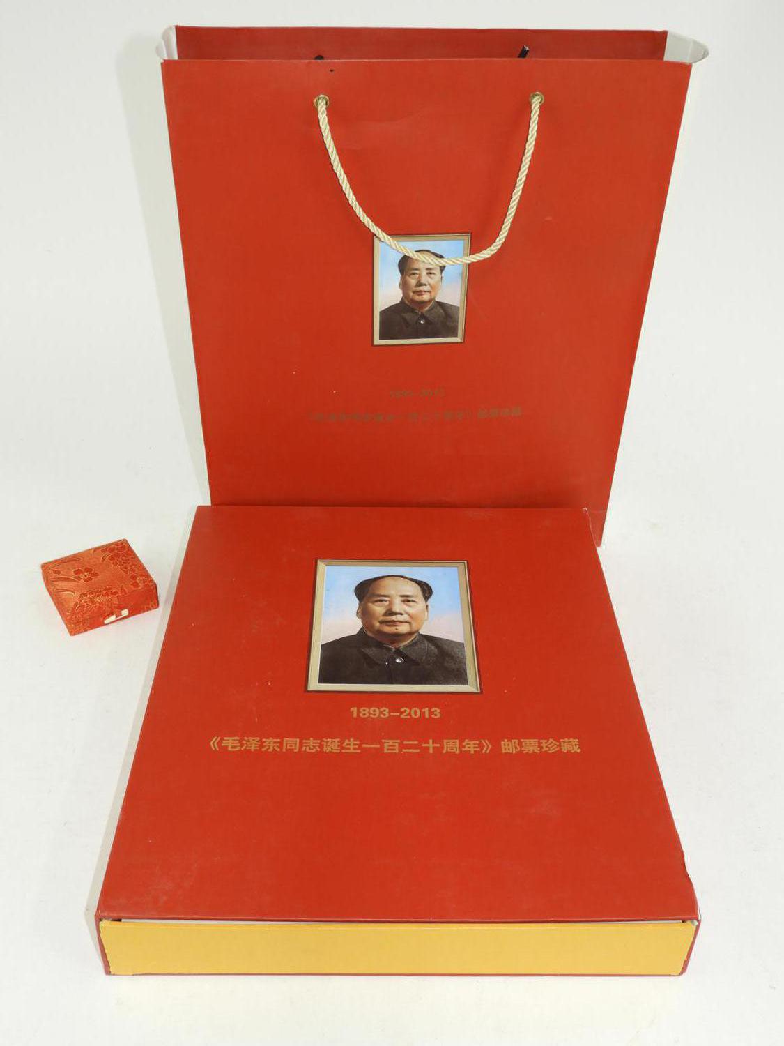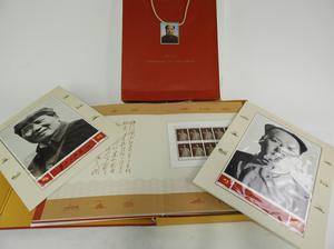 chinese commemorative issue chairman mao book of stamps, with original bag and small medallion