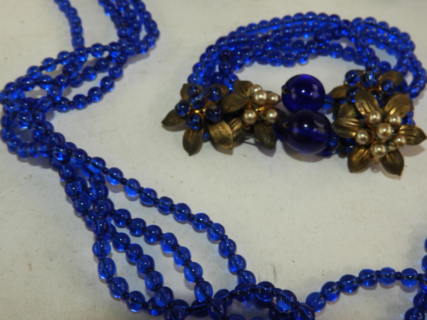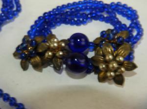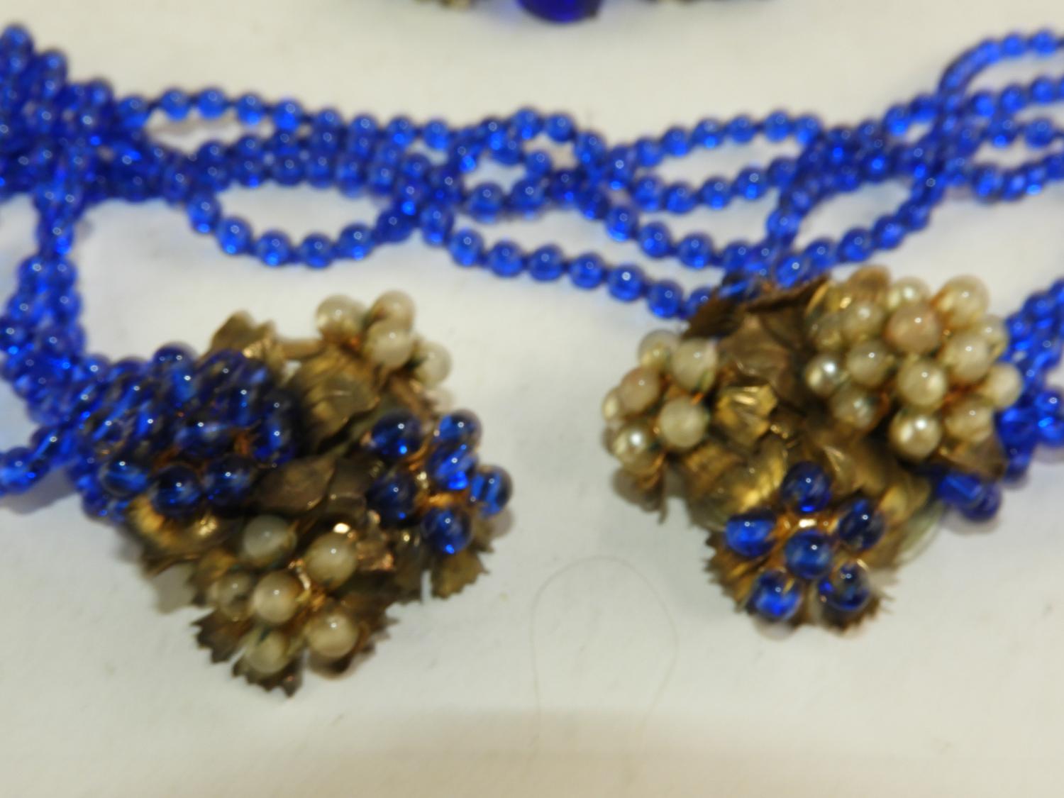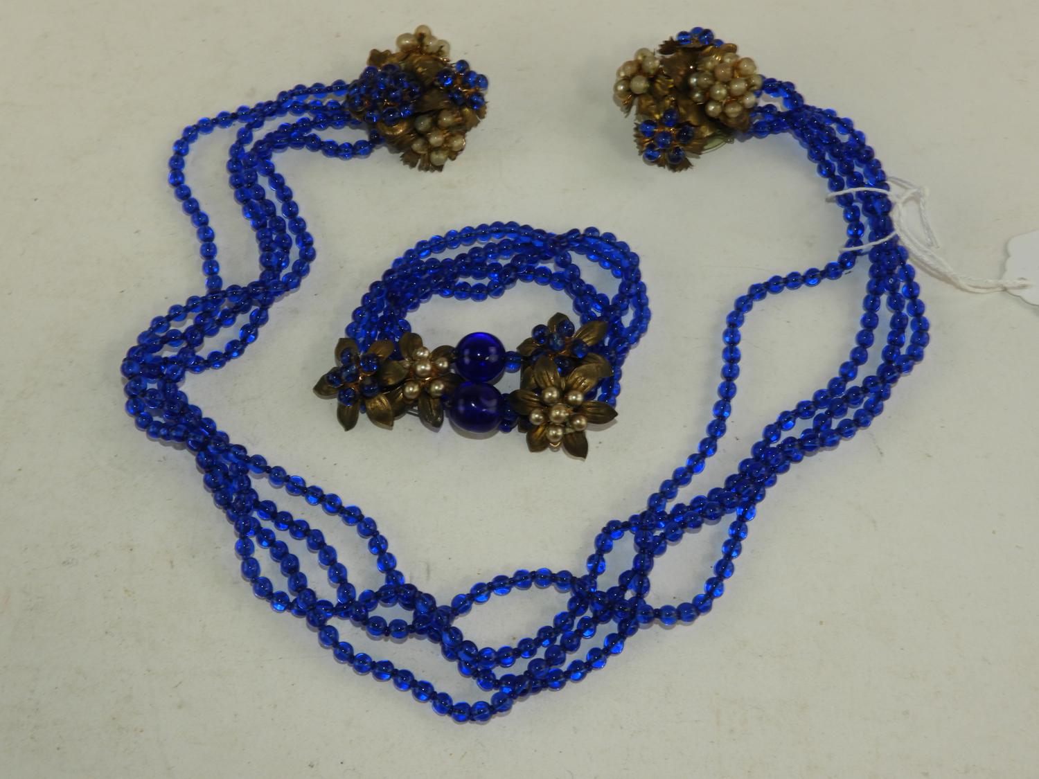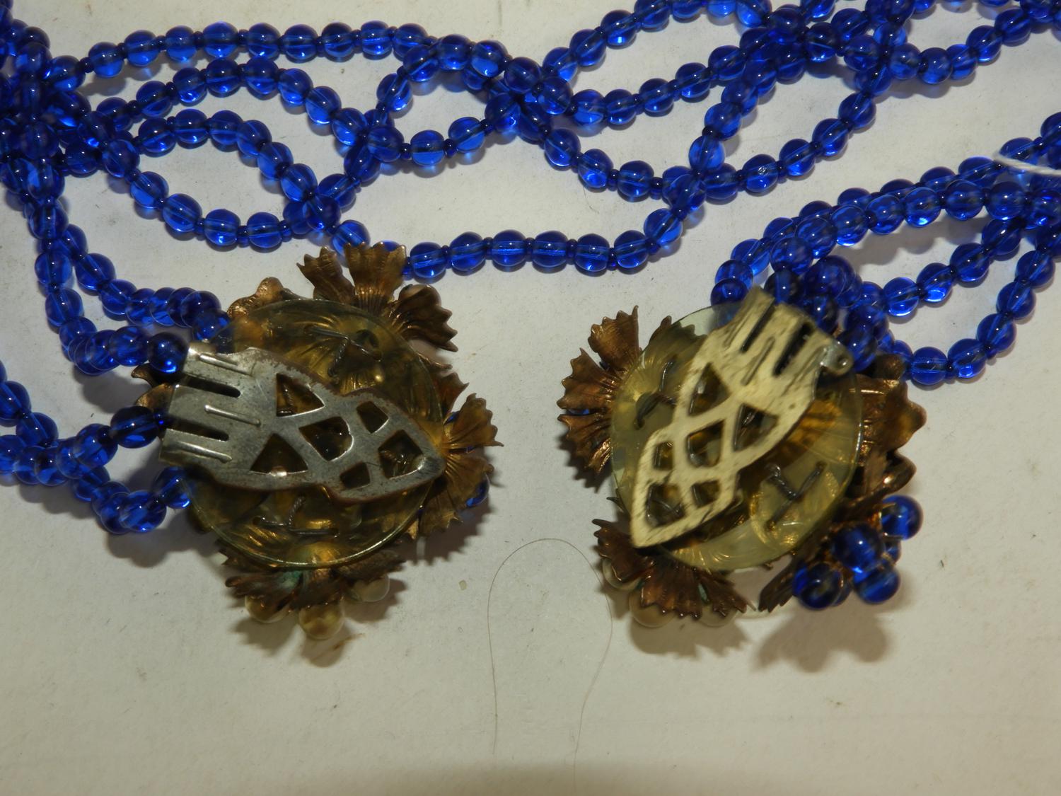 earlly unsigned miriam haskell cobalt blue brooches and earrings, circa 1930s