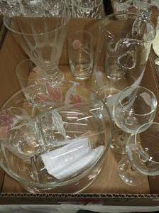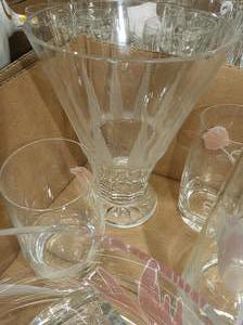 lot of matching glassware and a crystal vase