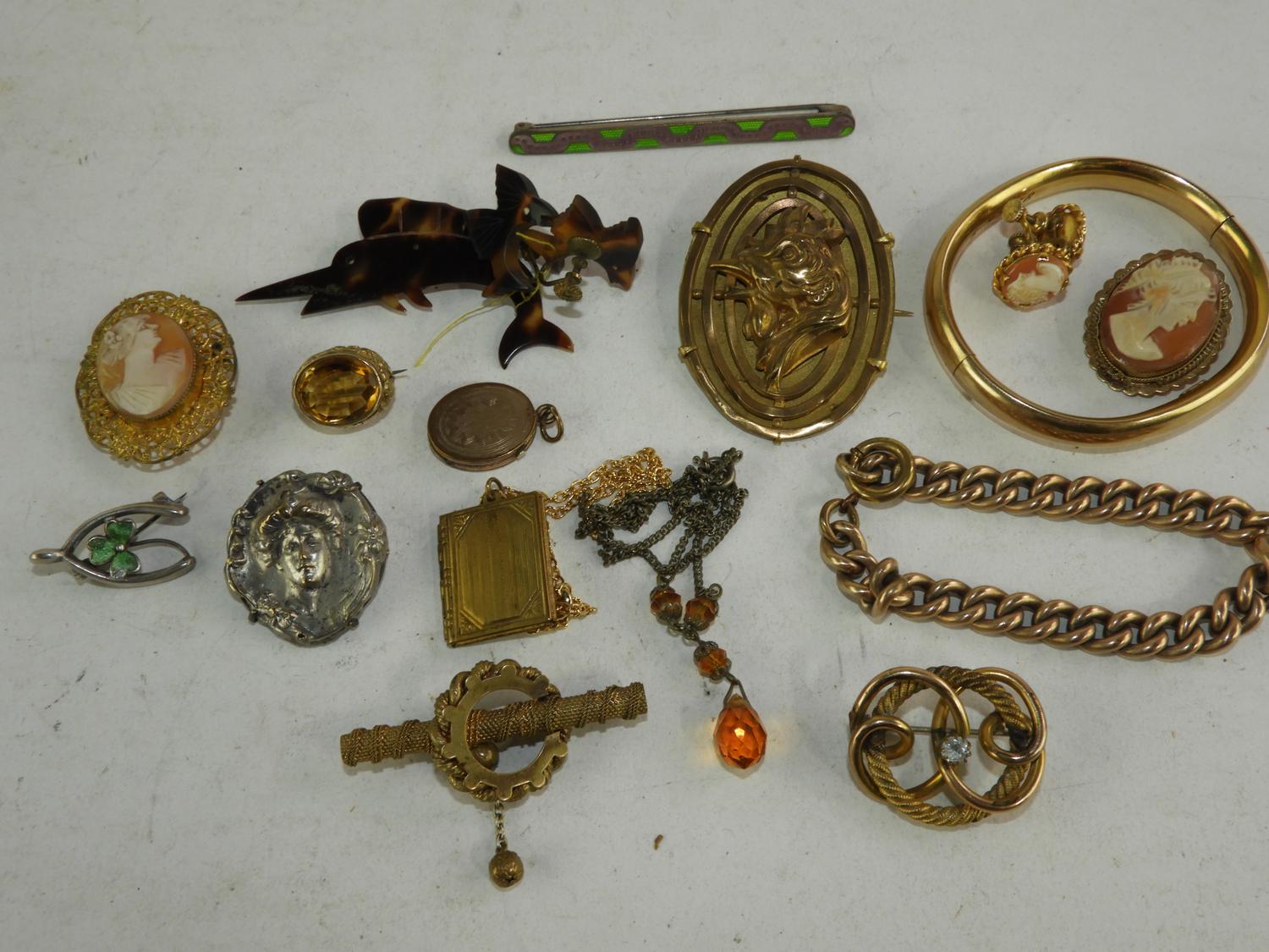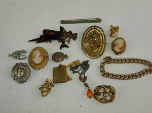 lot of victorian gold filled cameos etc