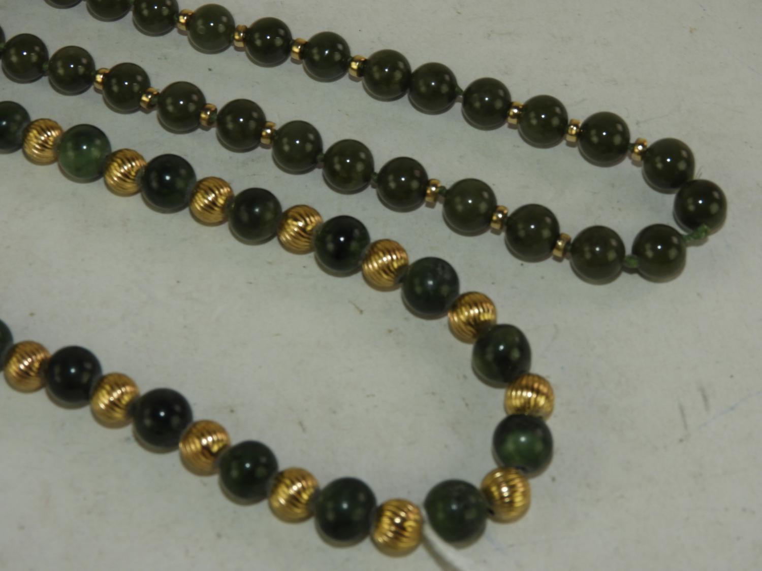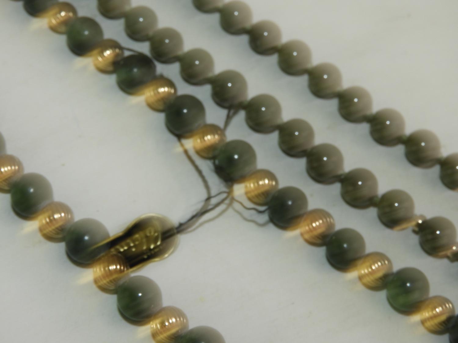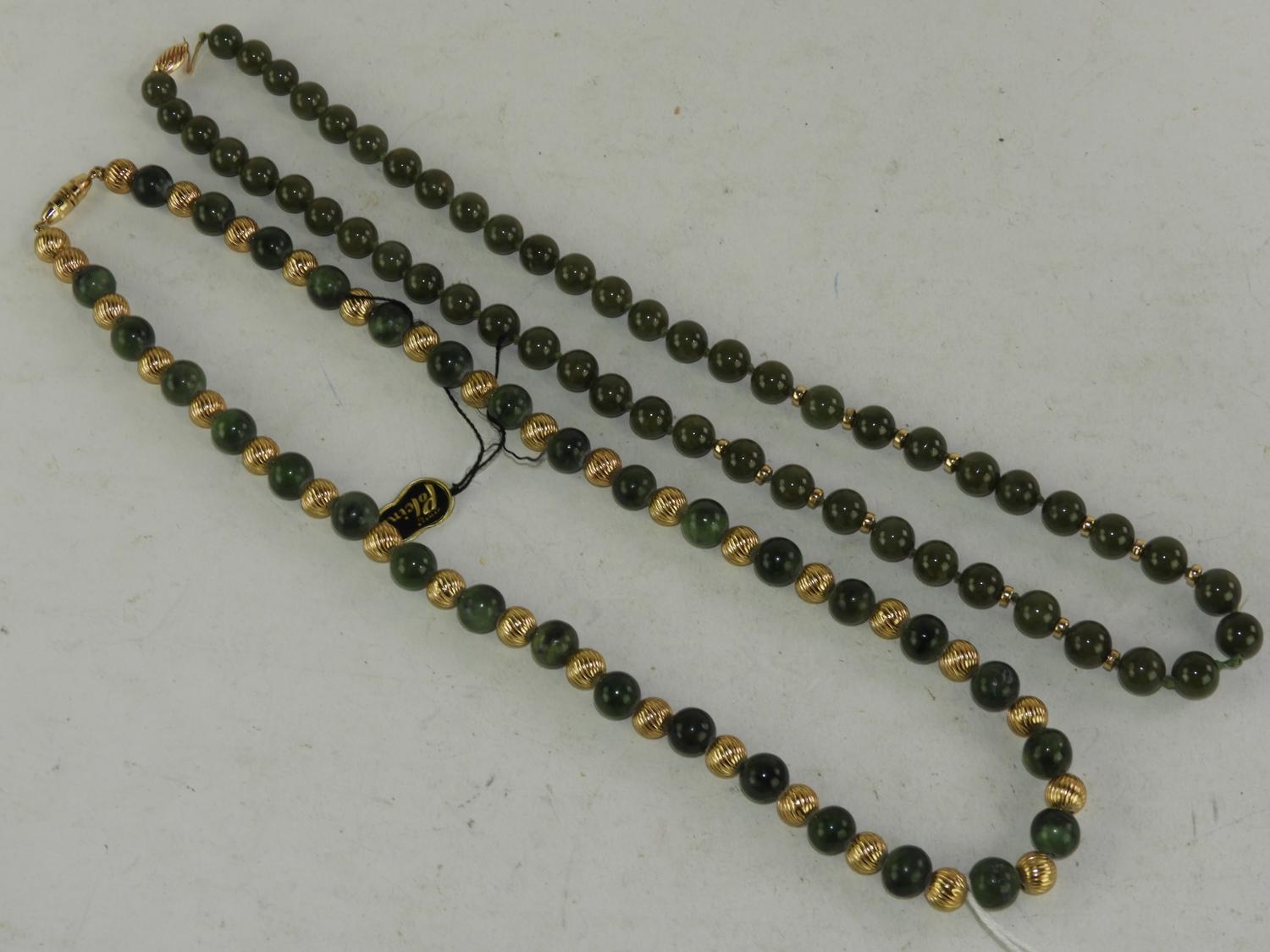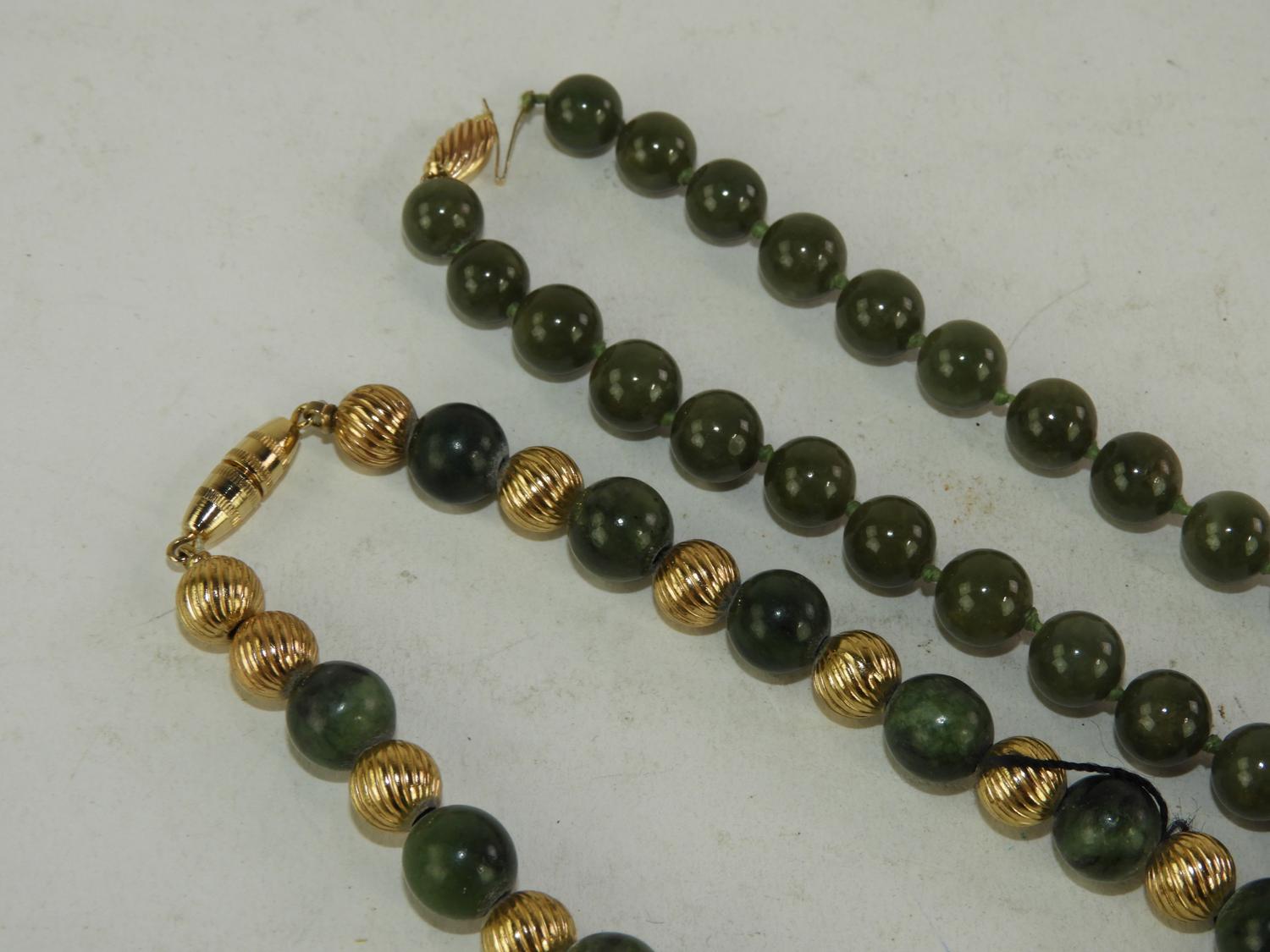 2 nephrite necklaces, one 14k gold clasp, 20"
