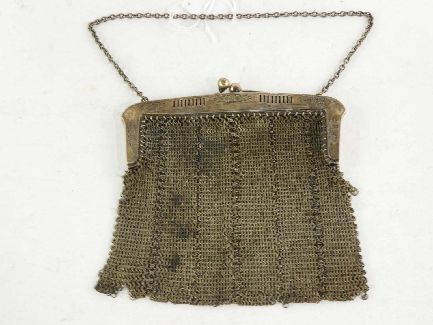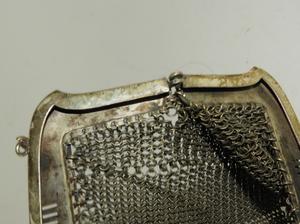german silver plate mesh evening bag, 6 1/2" x 7", as is