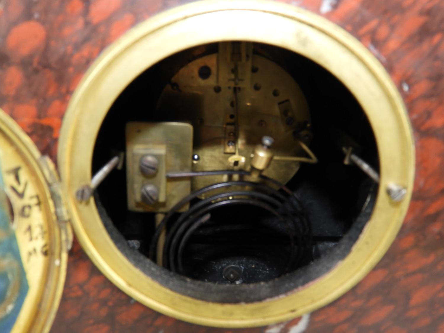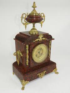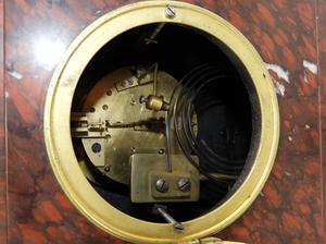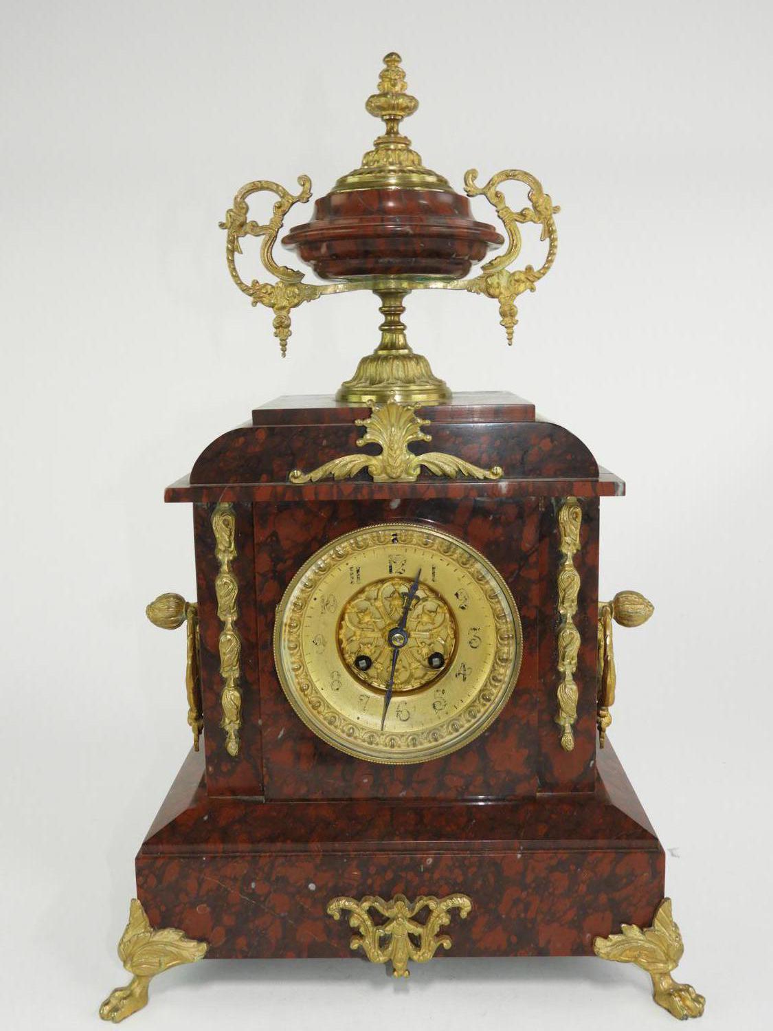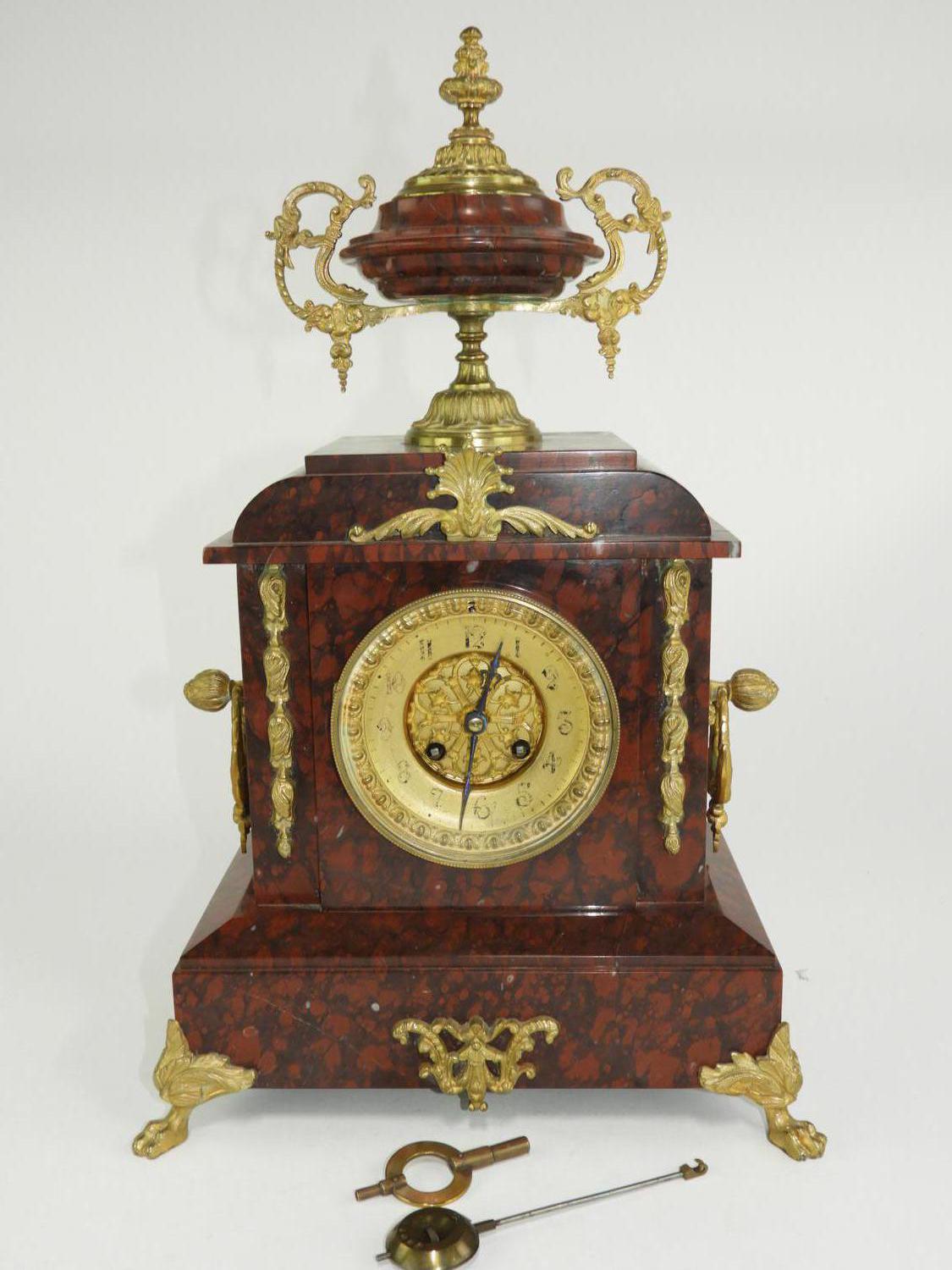19th century french rouge royal marble mantle clock, japy freres movement,