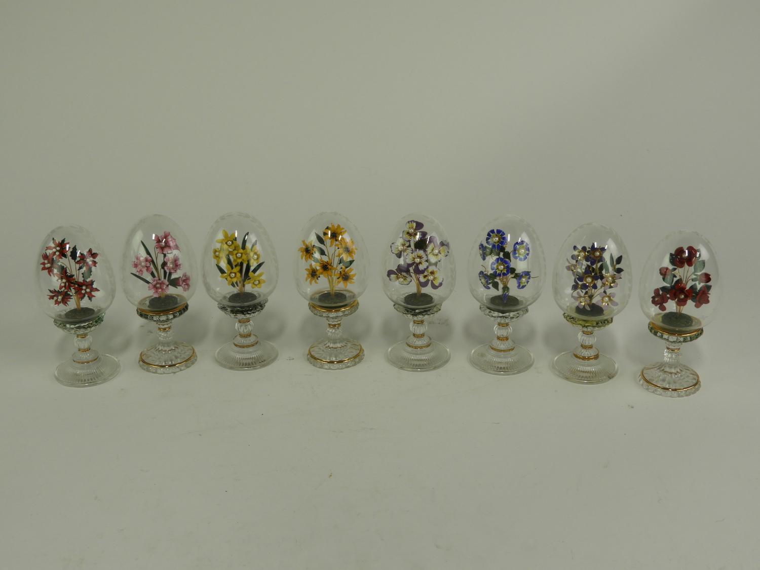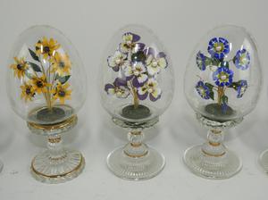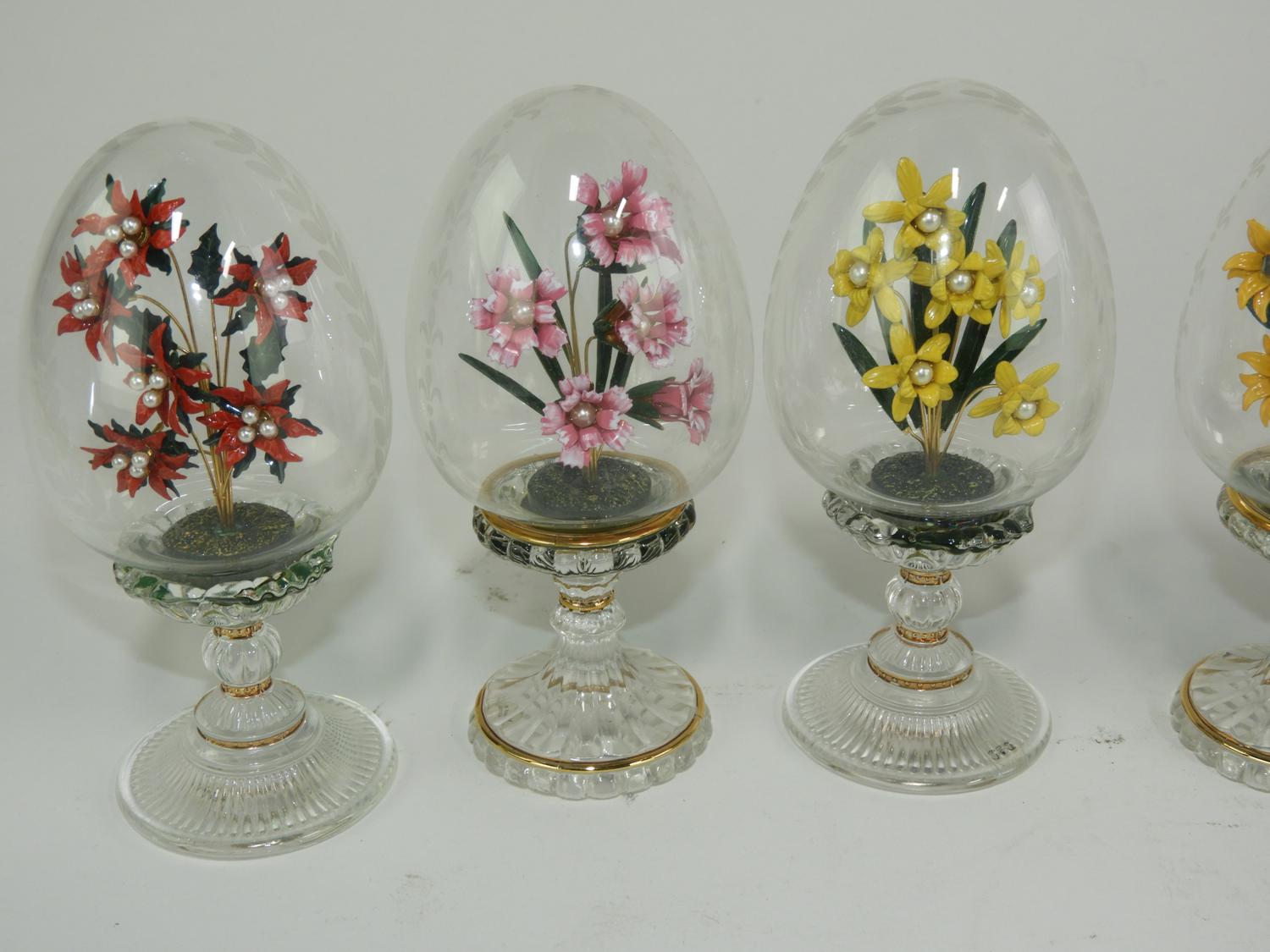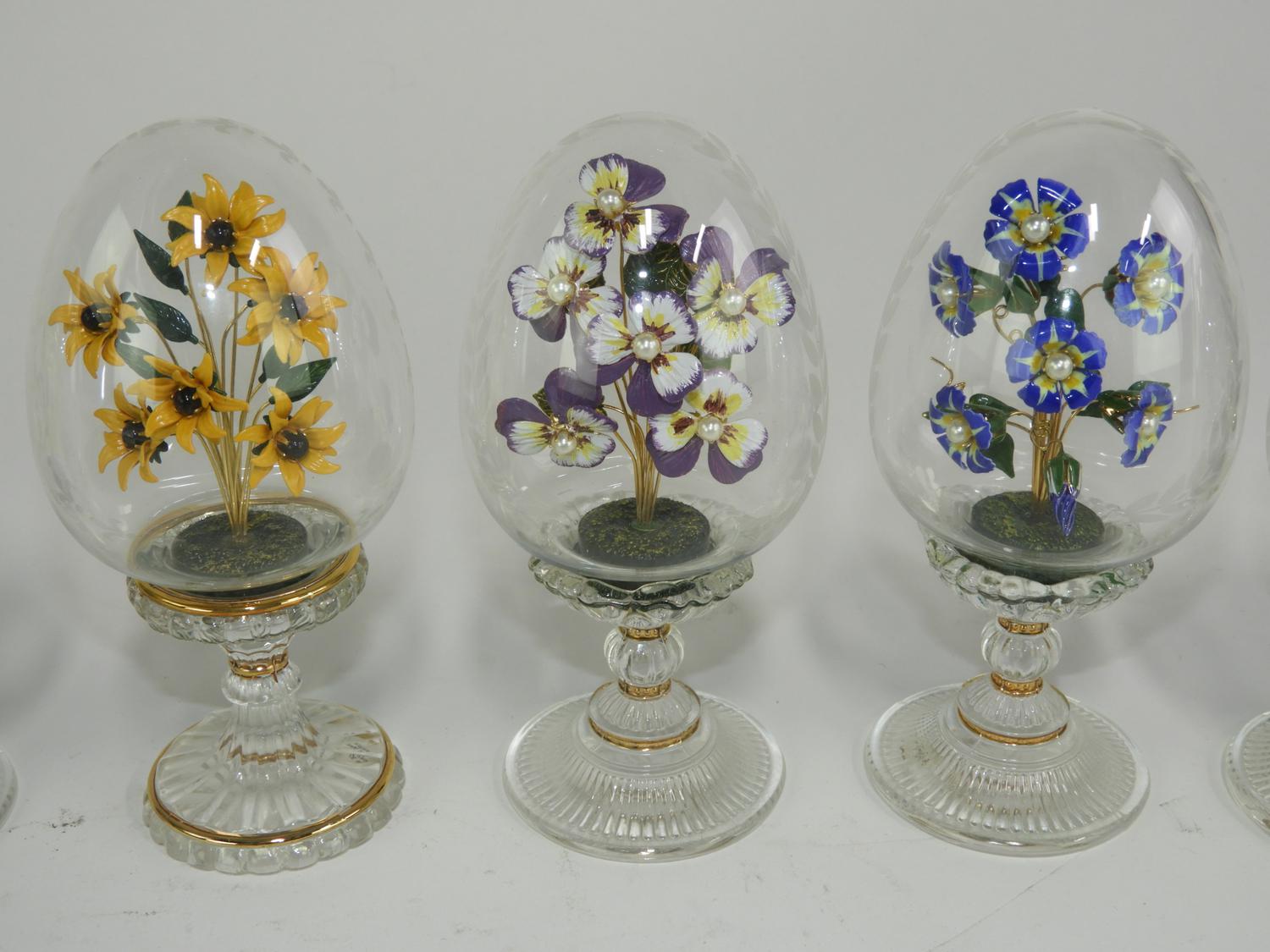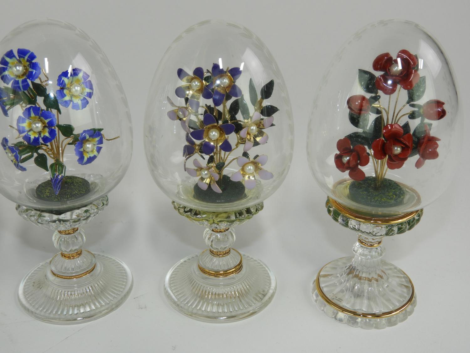 lot of austrian hand painted pearl mounted gilt floral etched glass eggs by the franklin mint