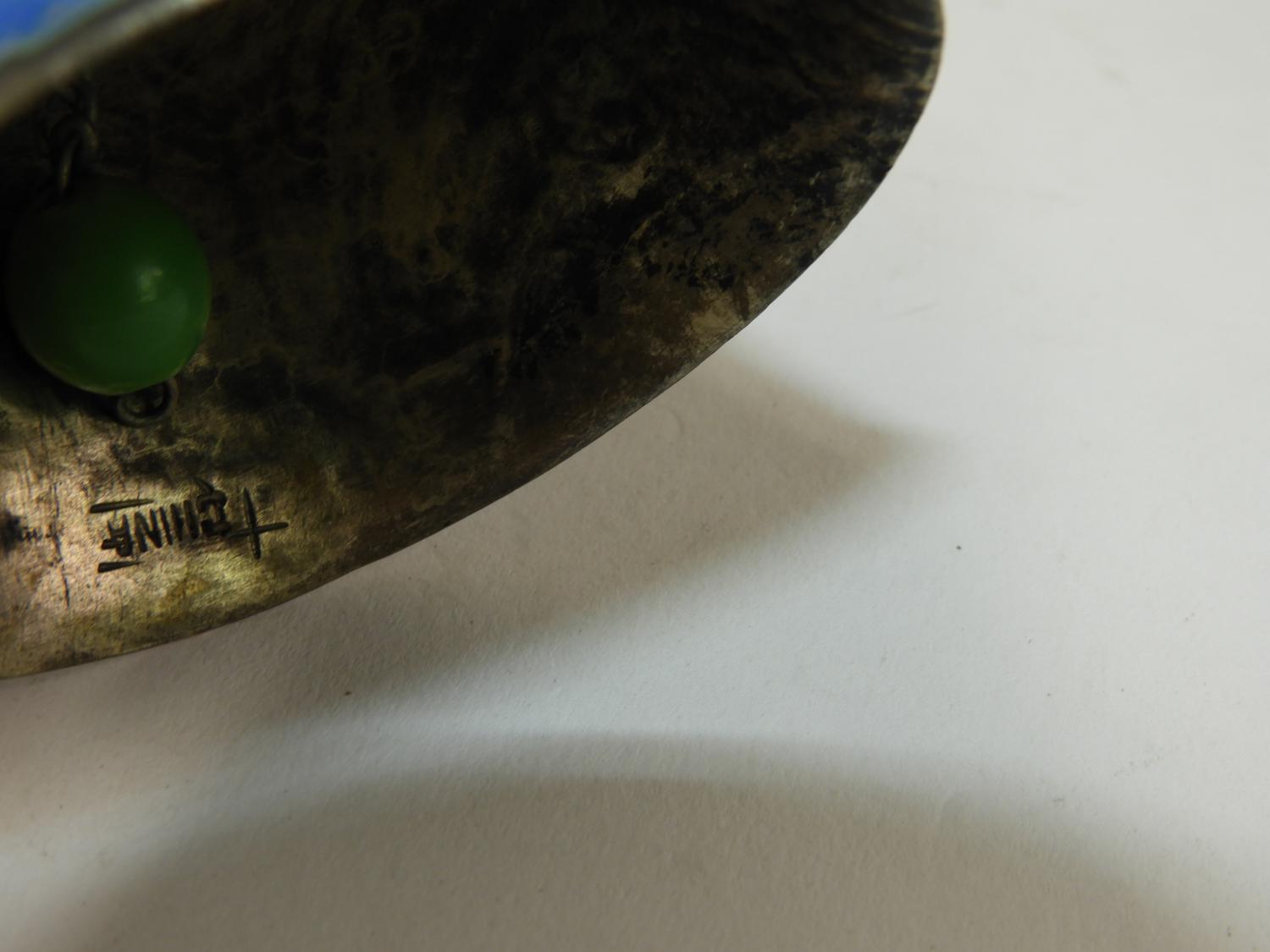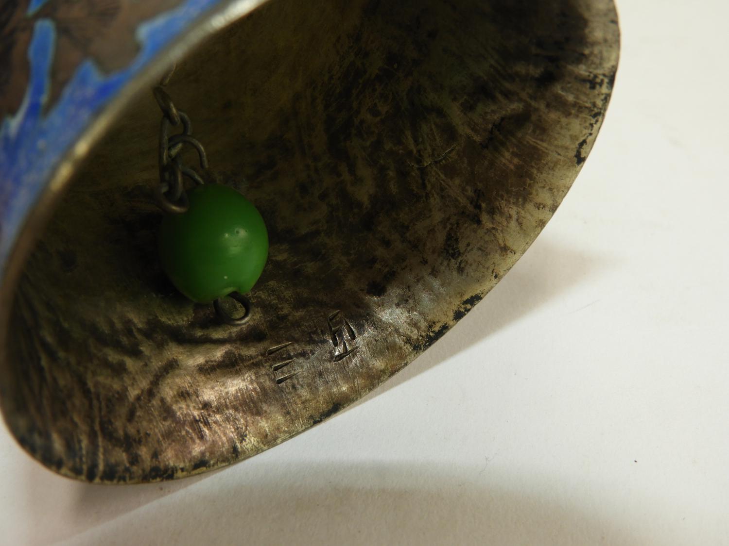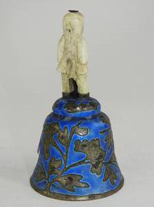 chinese blue enamel silver bell with figural handle, ht. 4 1/4"