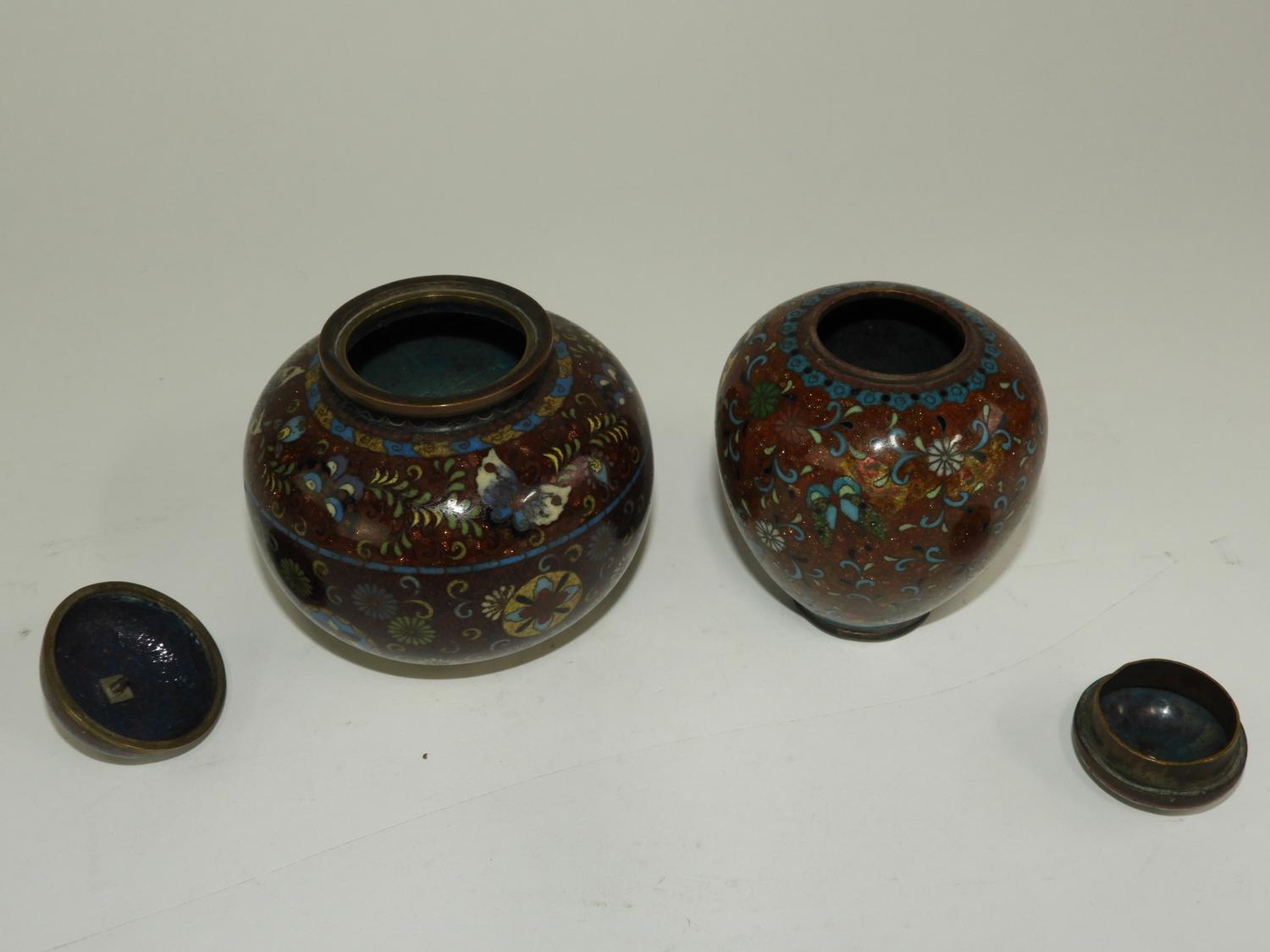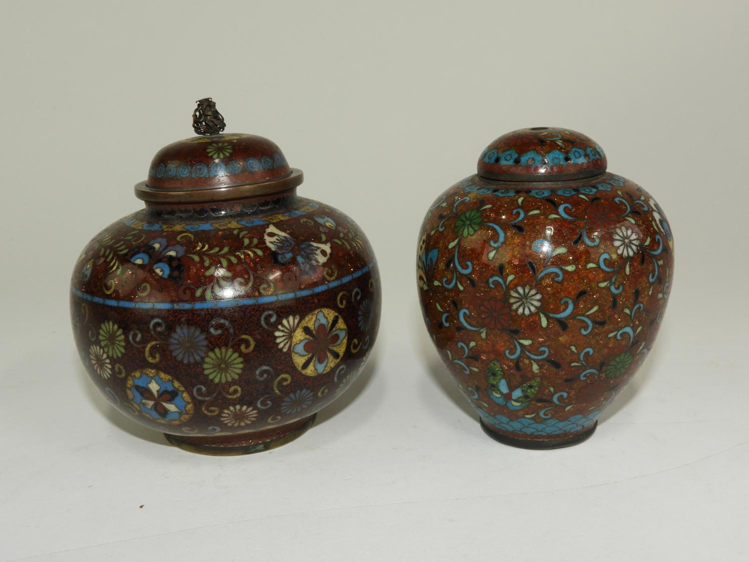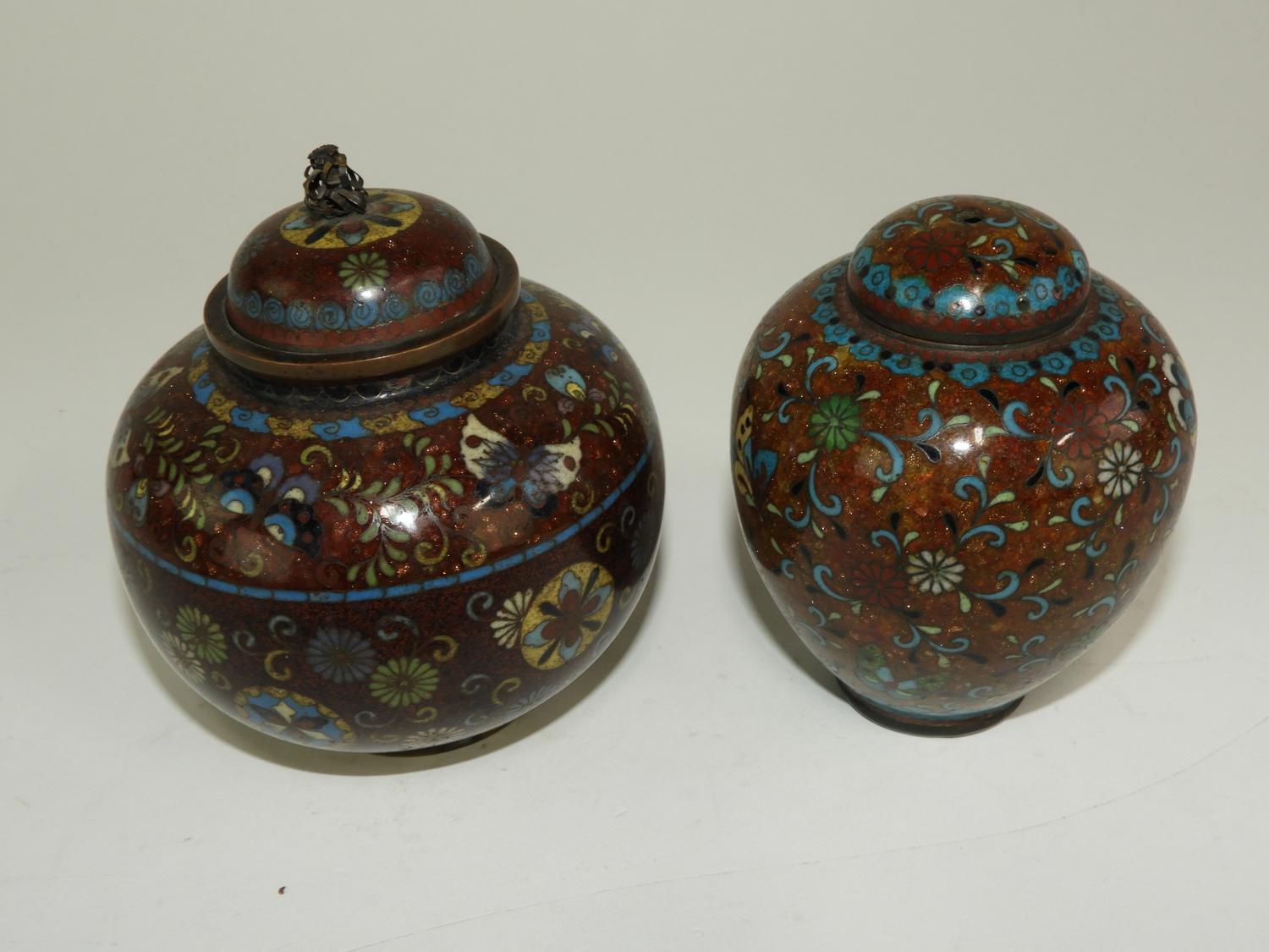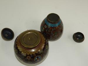 cloisonne enamel covered vase, ht. 4 1/2" with another
